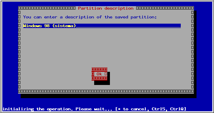 Partition Image nos pide ahora que escribamos una corta descripción de la partición. Sirve por si tenemos varios archivos con copias de seguridad, para distinguir mejor unos de otros.