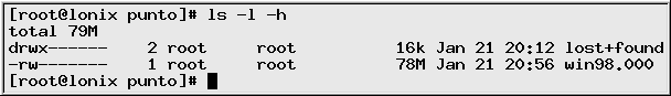 archivo win98.000 con un tamaño de 78 MB. Es decir, una partición