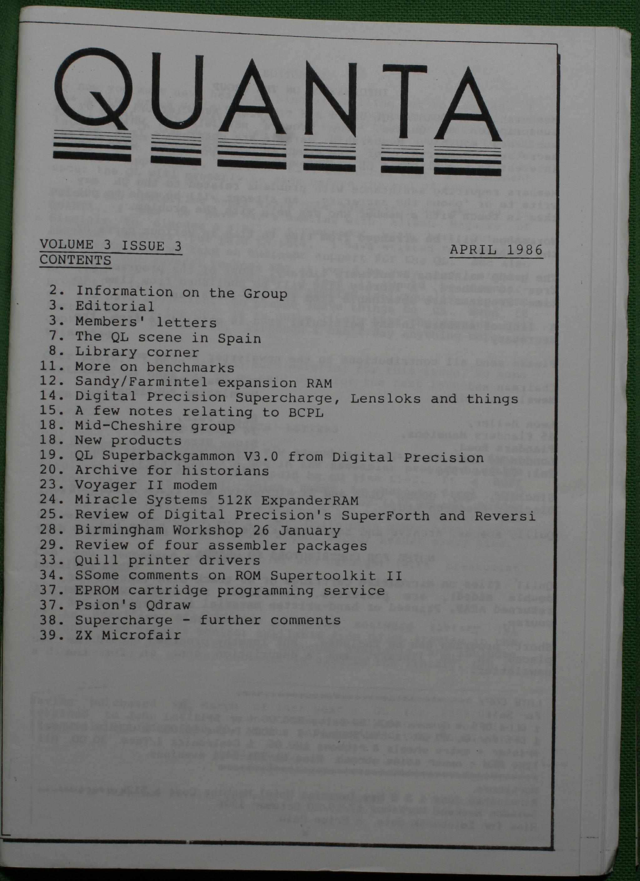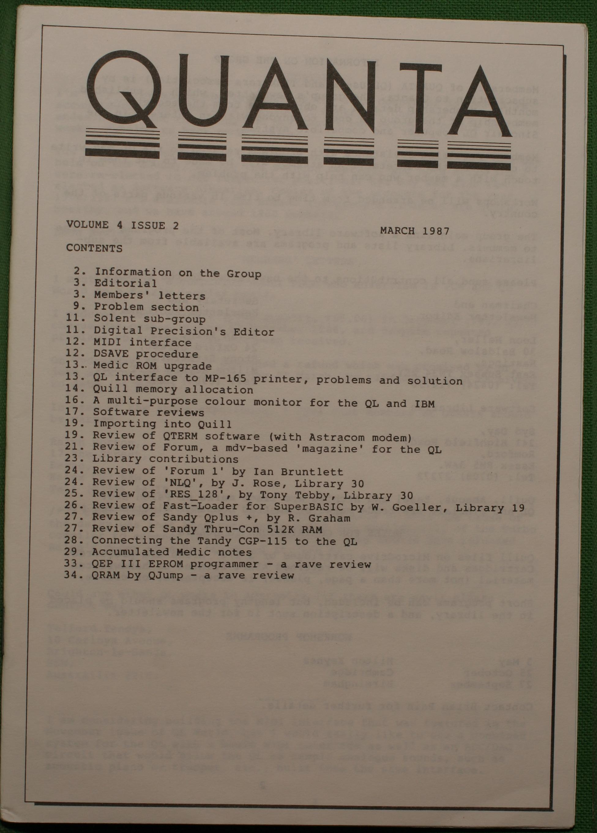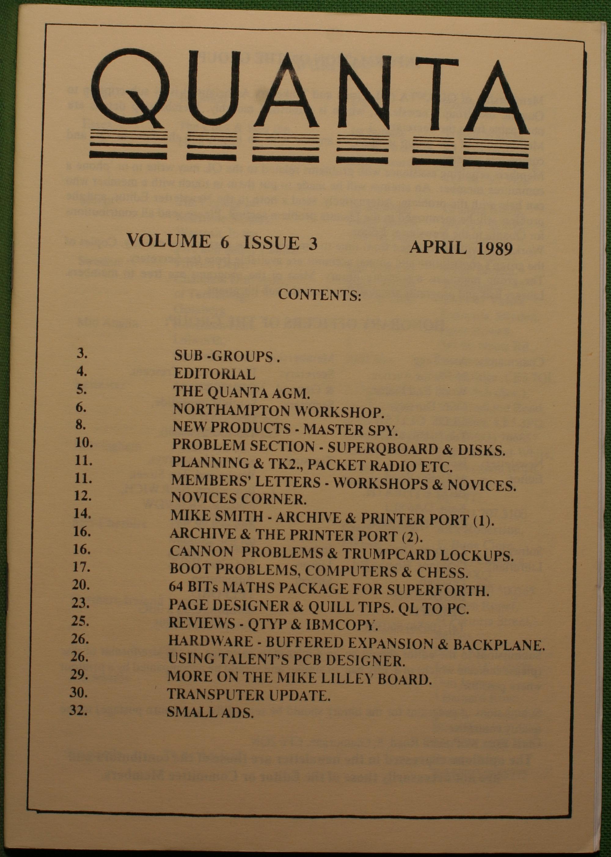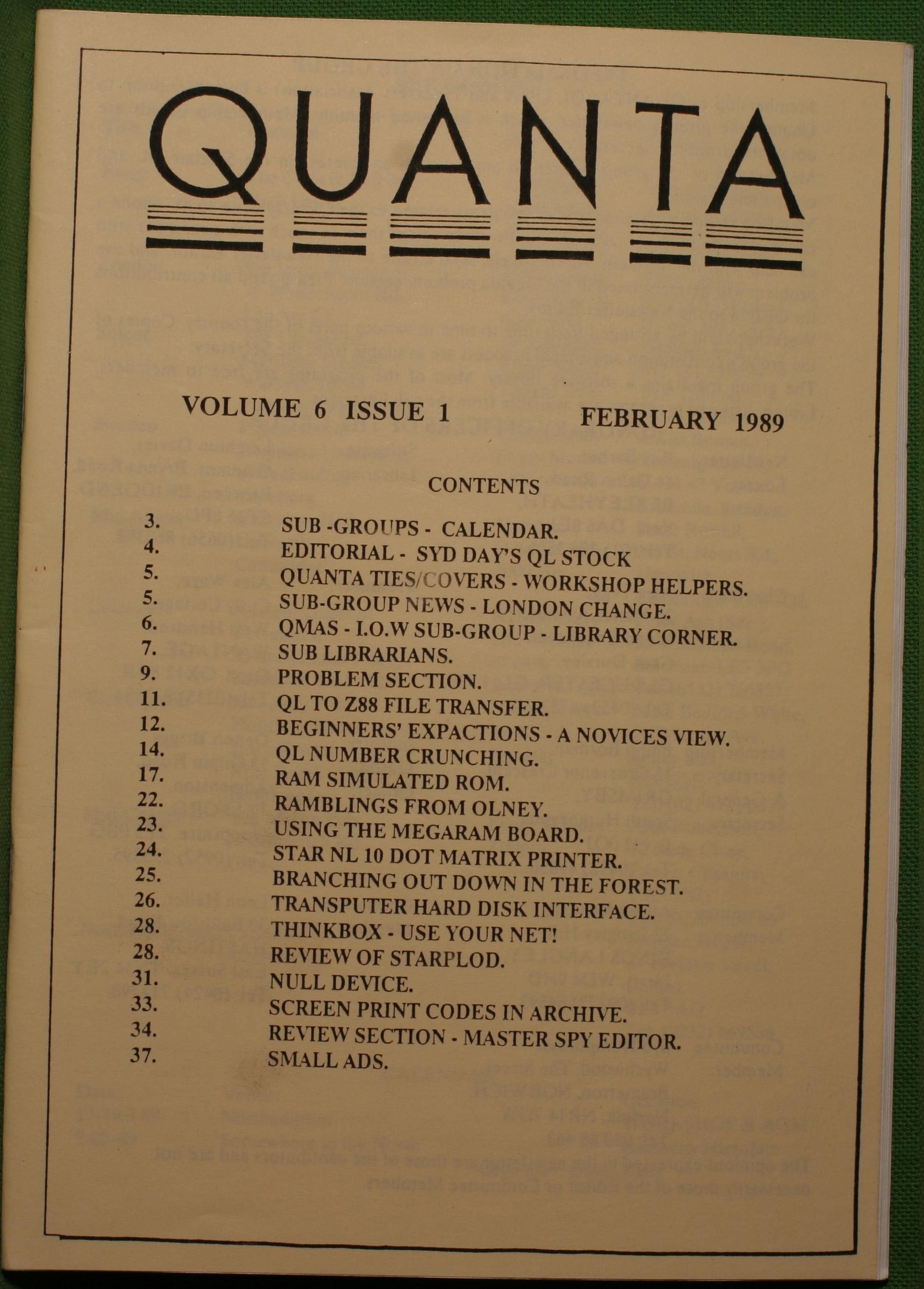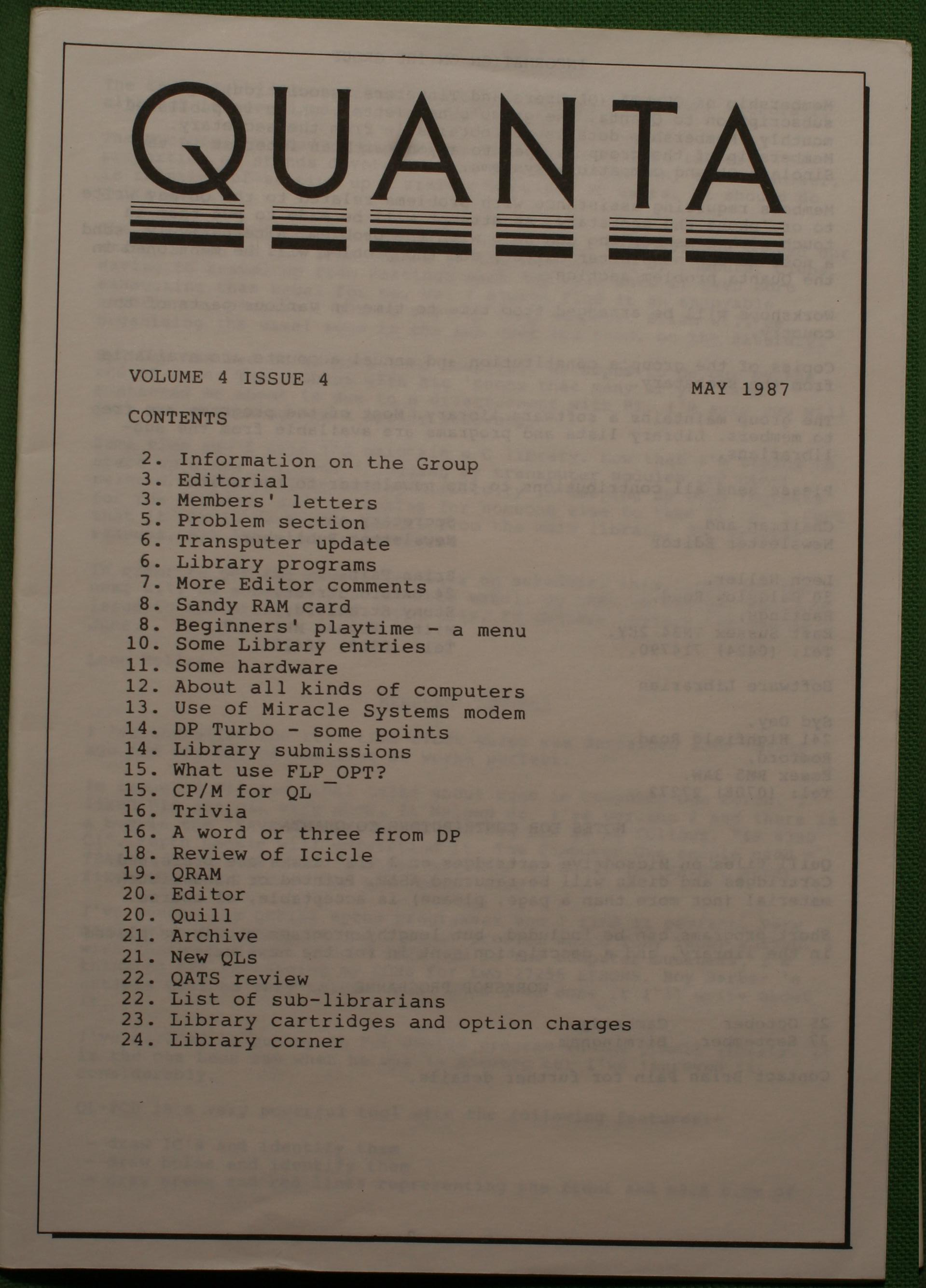 Quanta es el club de usuarios del ordenador Sinclair QL más importante del mundo. Se fundó más o menos al mismo tiempo que se comercializaba el ordenador. Tardé varios años en dicidirme en hacerme socio, pero cuando lo hice pedí todos los números atrasados de la revista. Dejé de ser socio cuando vi que mis pricipales intereses informáticos ya se habían desplazado hacia otros derroteros.