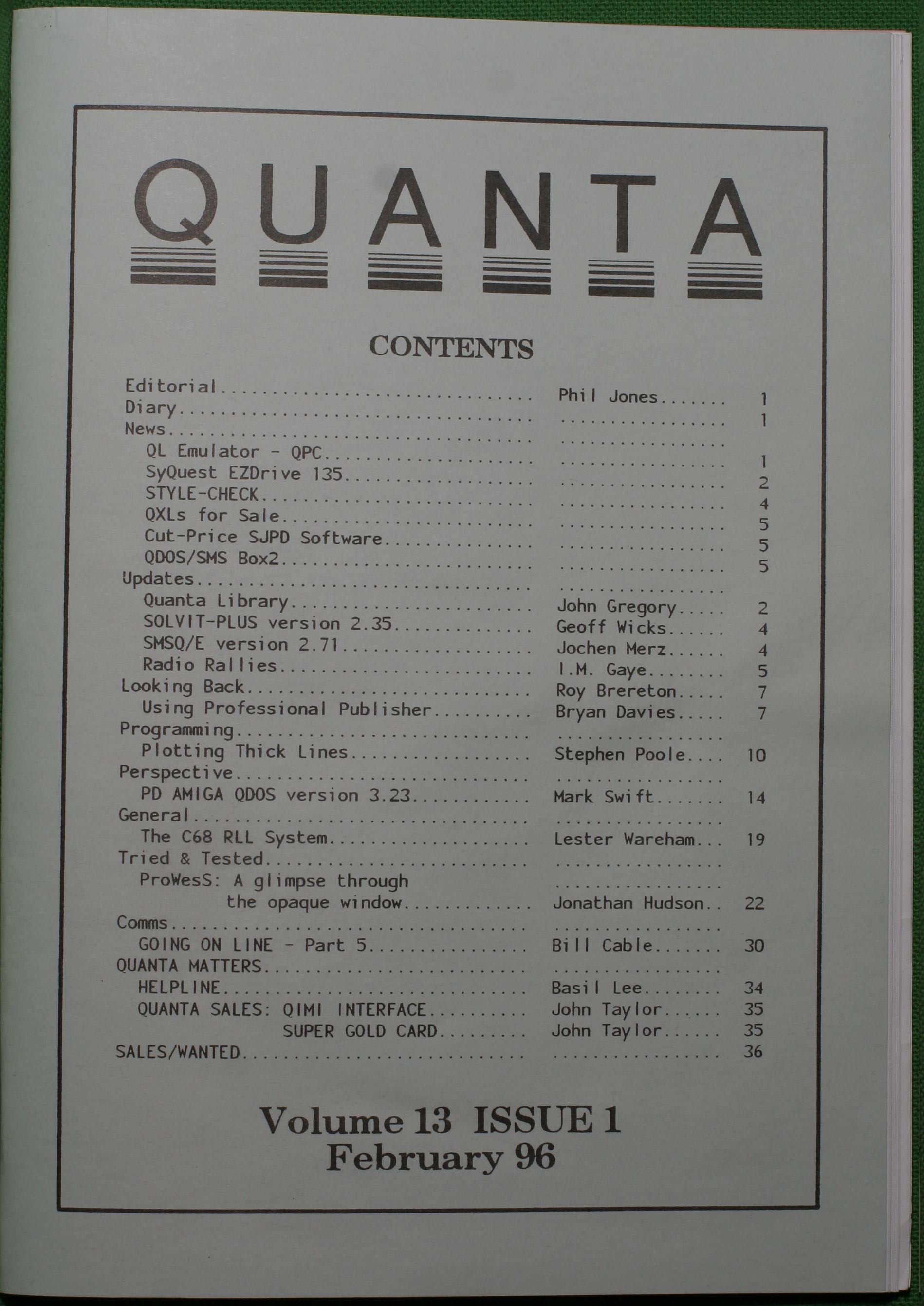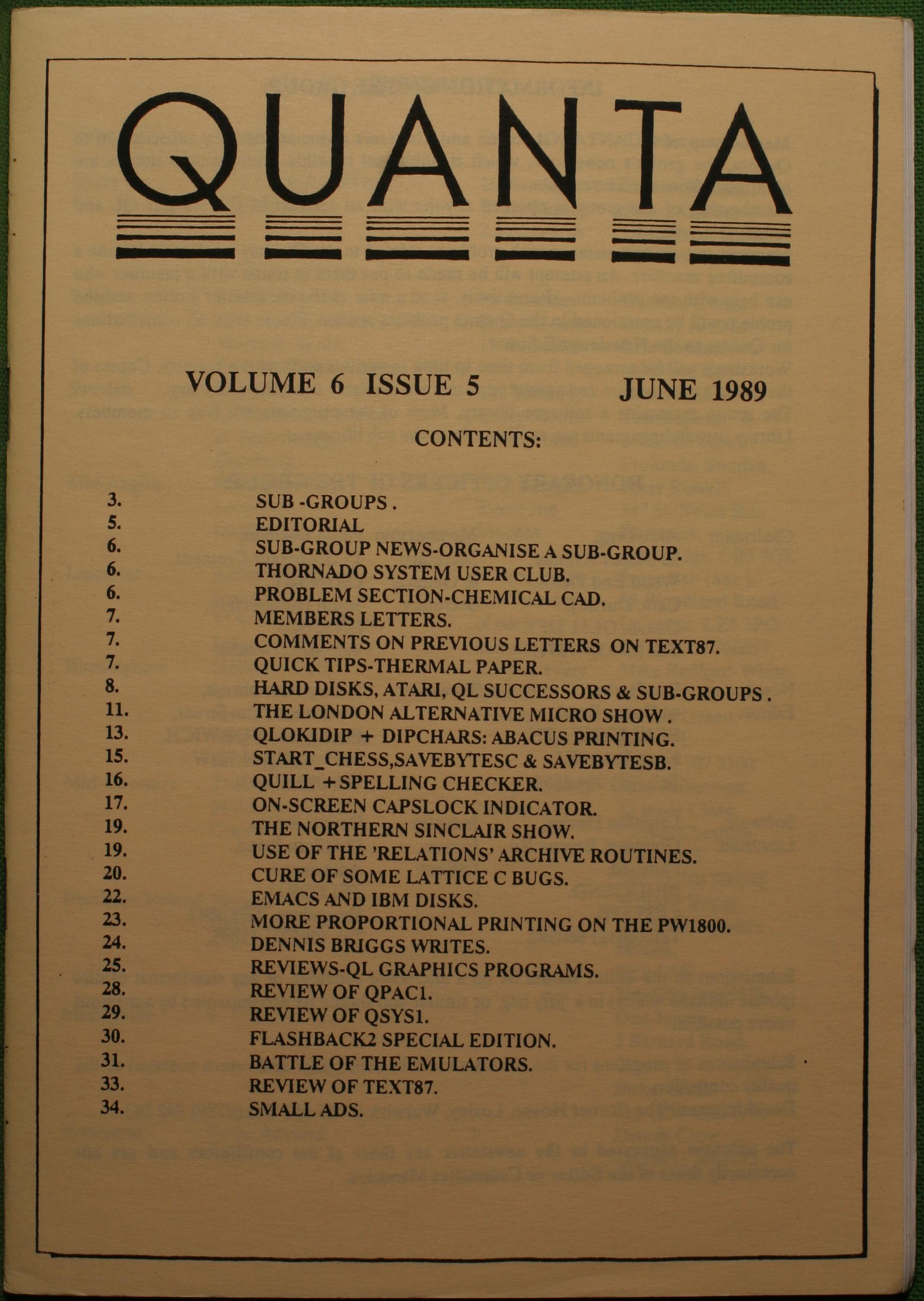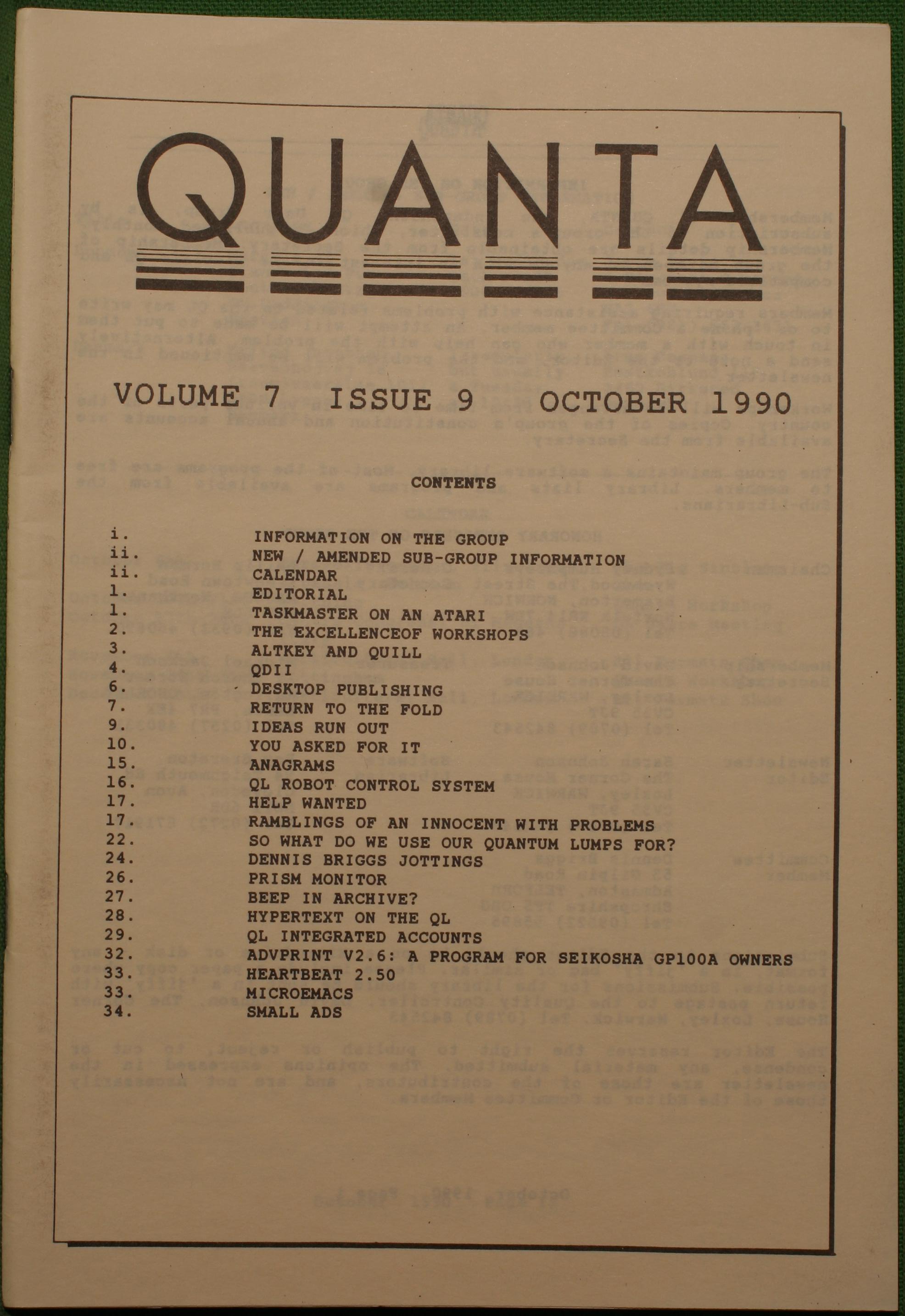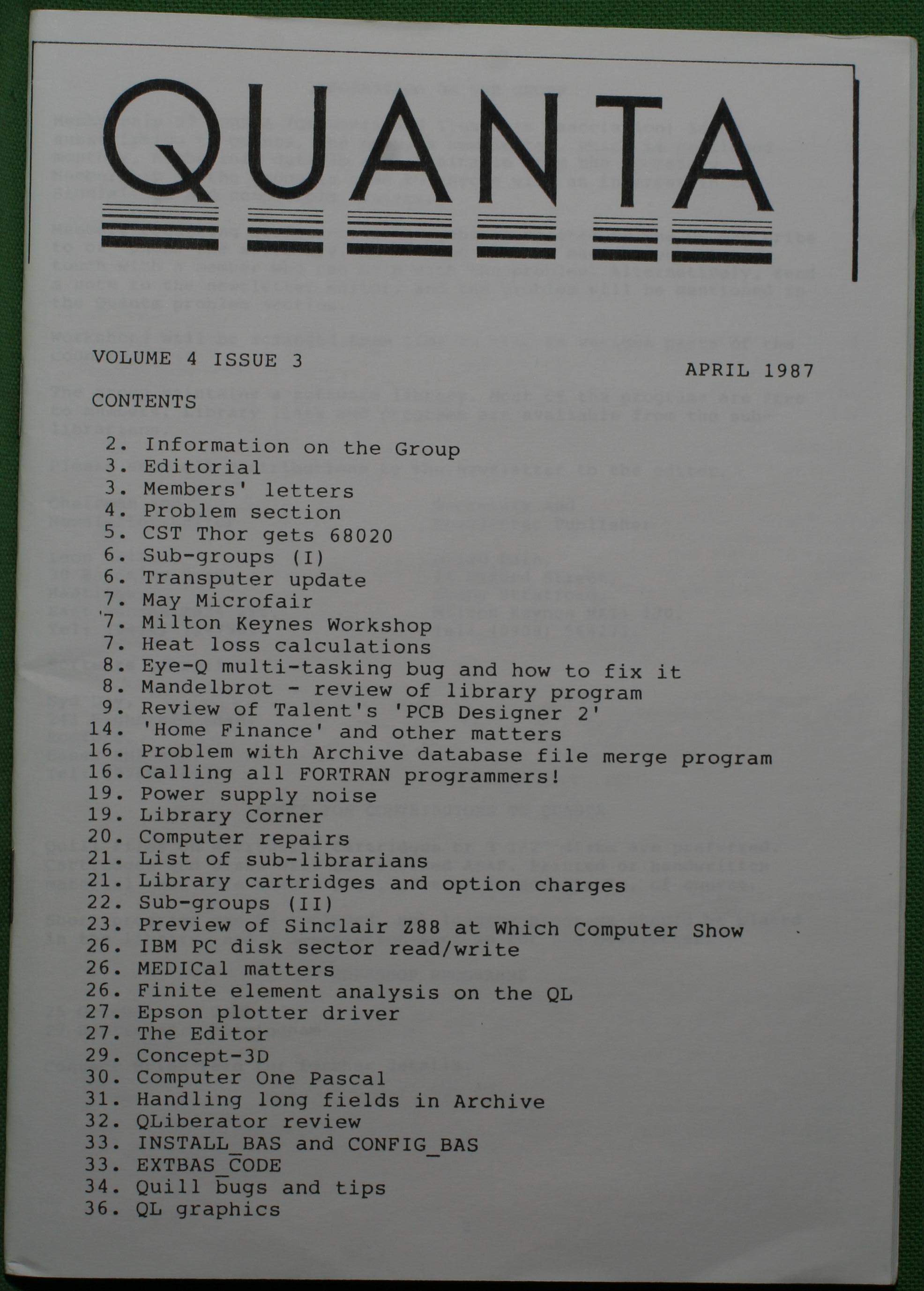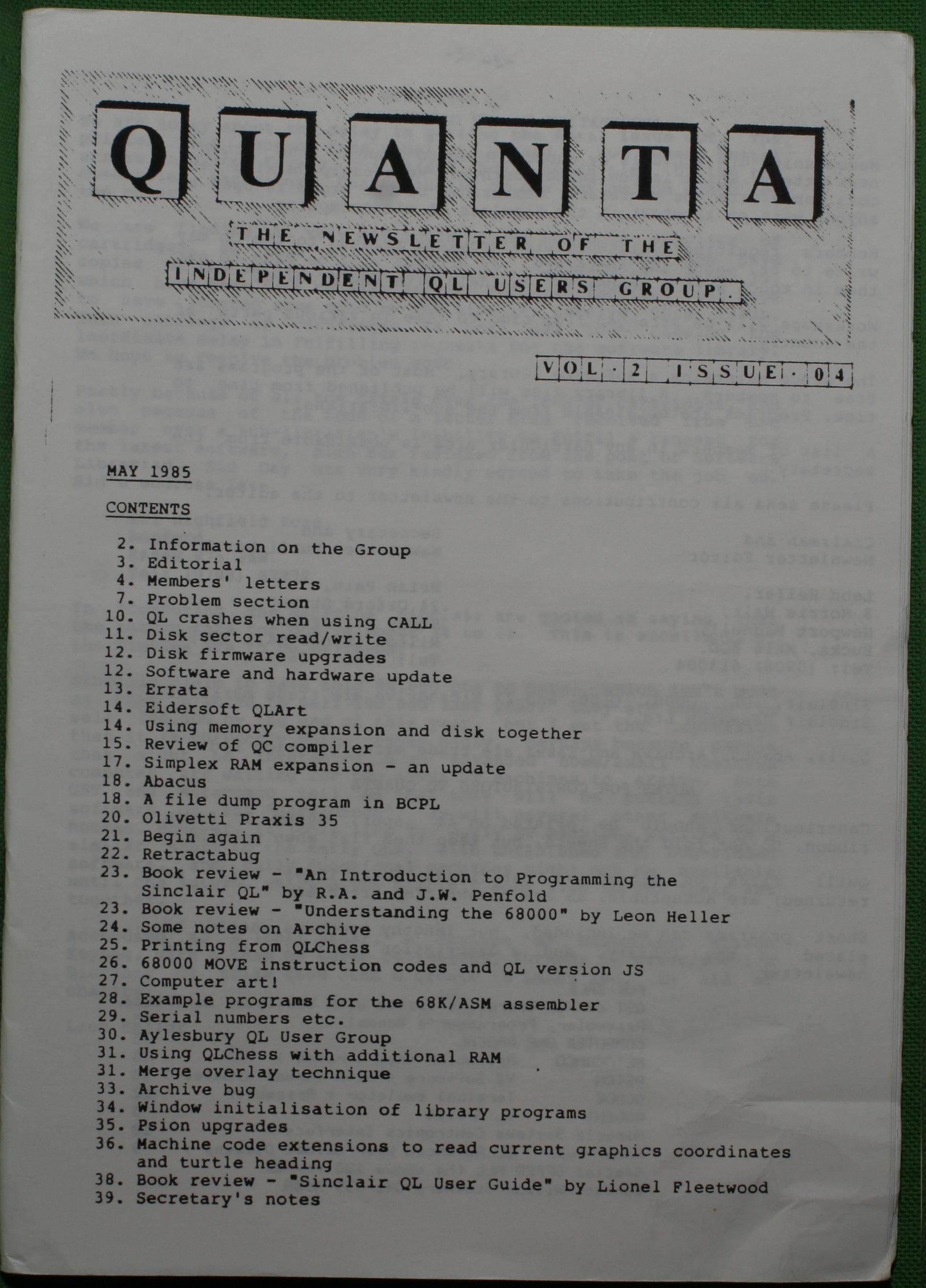Quanta es el club de usuarios del ordenador Sinclair QL más importante del mundo. Se fundó más o menos al mismo tiempo que se comercializaba el ordenador. Tardé varios años en dicidirme en hacerme socio, pero cuando lo hice pedí todos los números atrasados de la revista. Dejé de ser socio cuando vi que mis pricipales intereses informáticos ya se habían desplazado hacia otros derroteros.