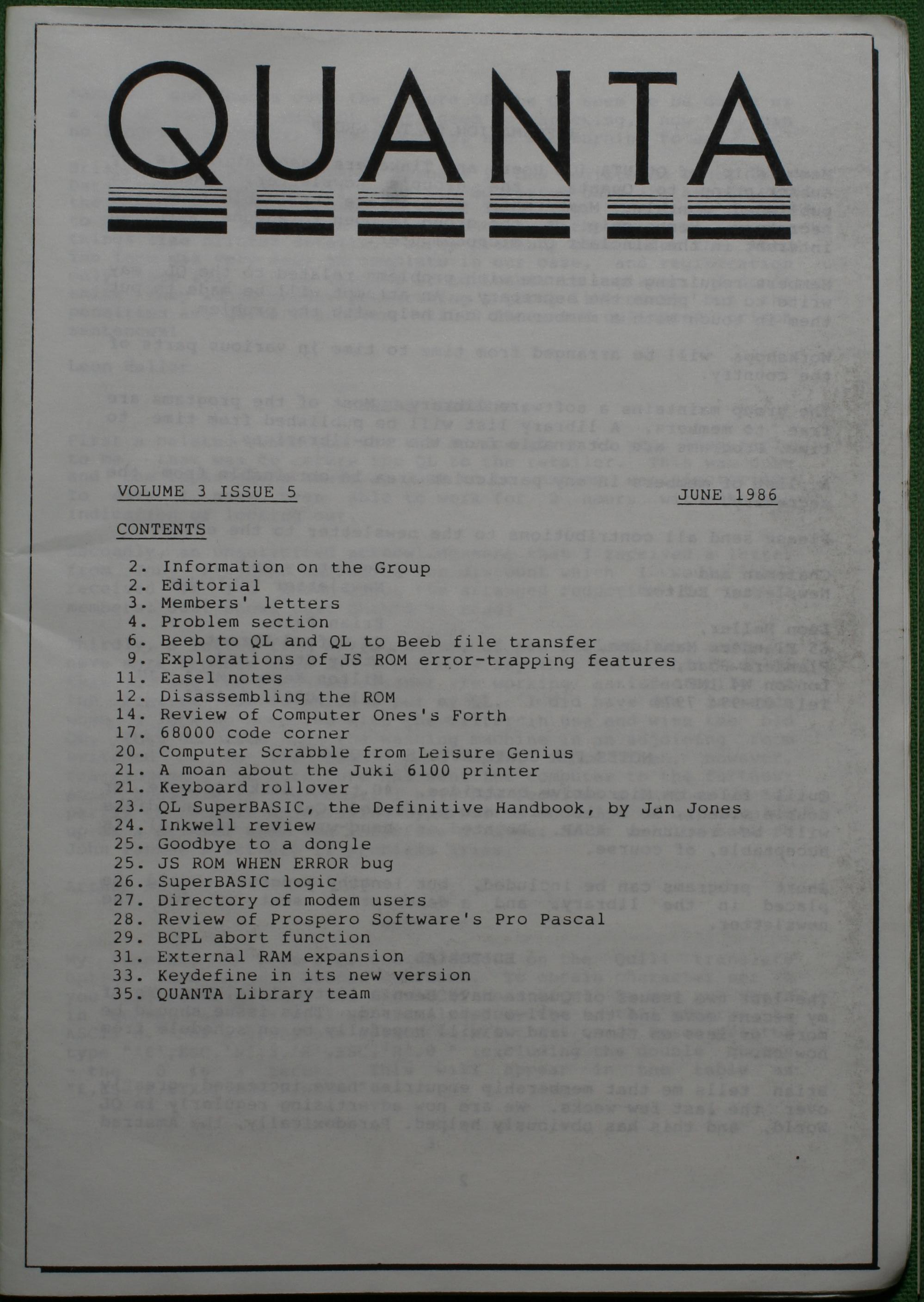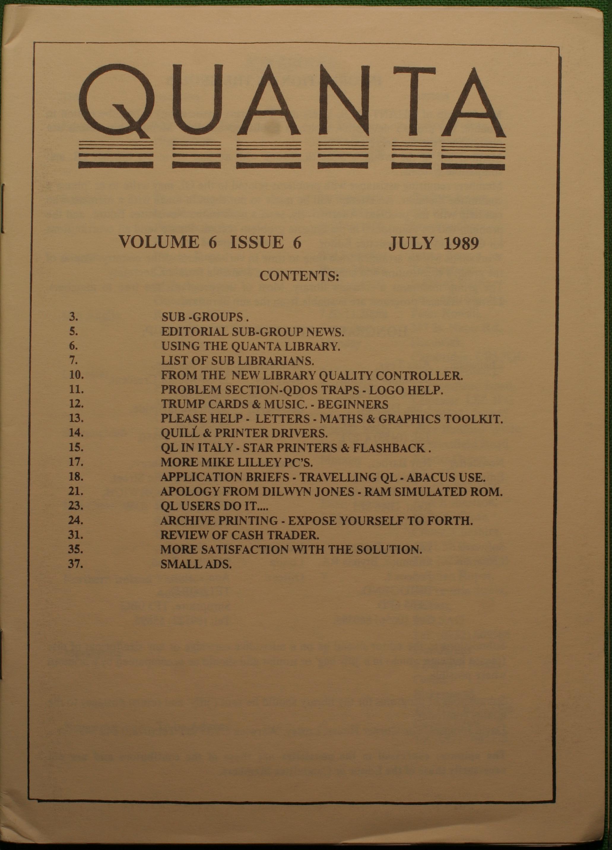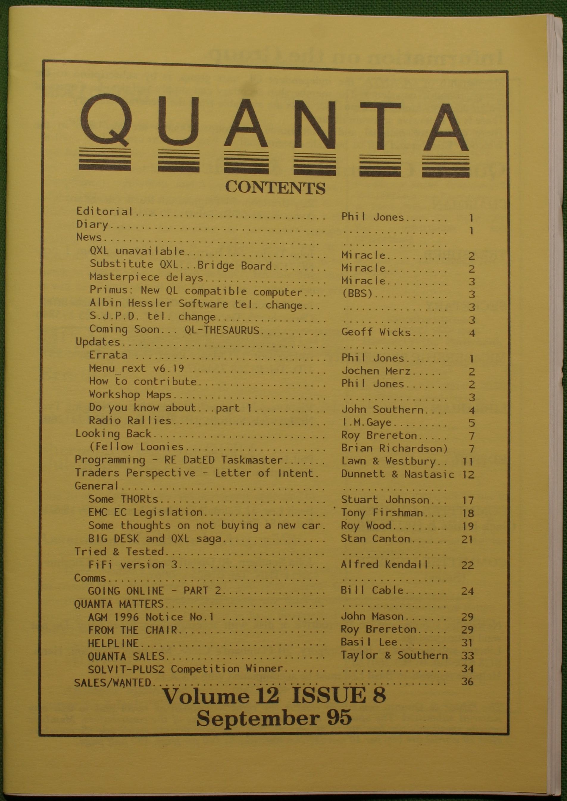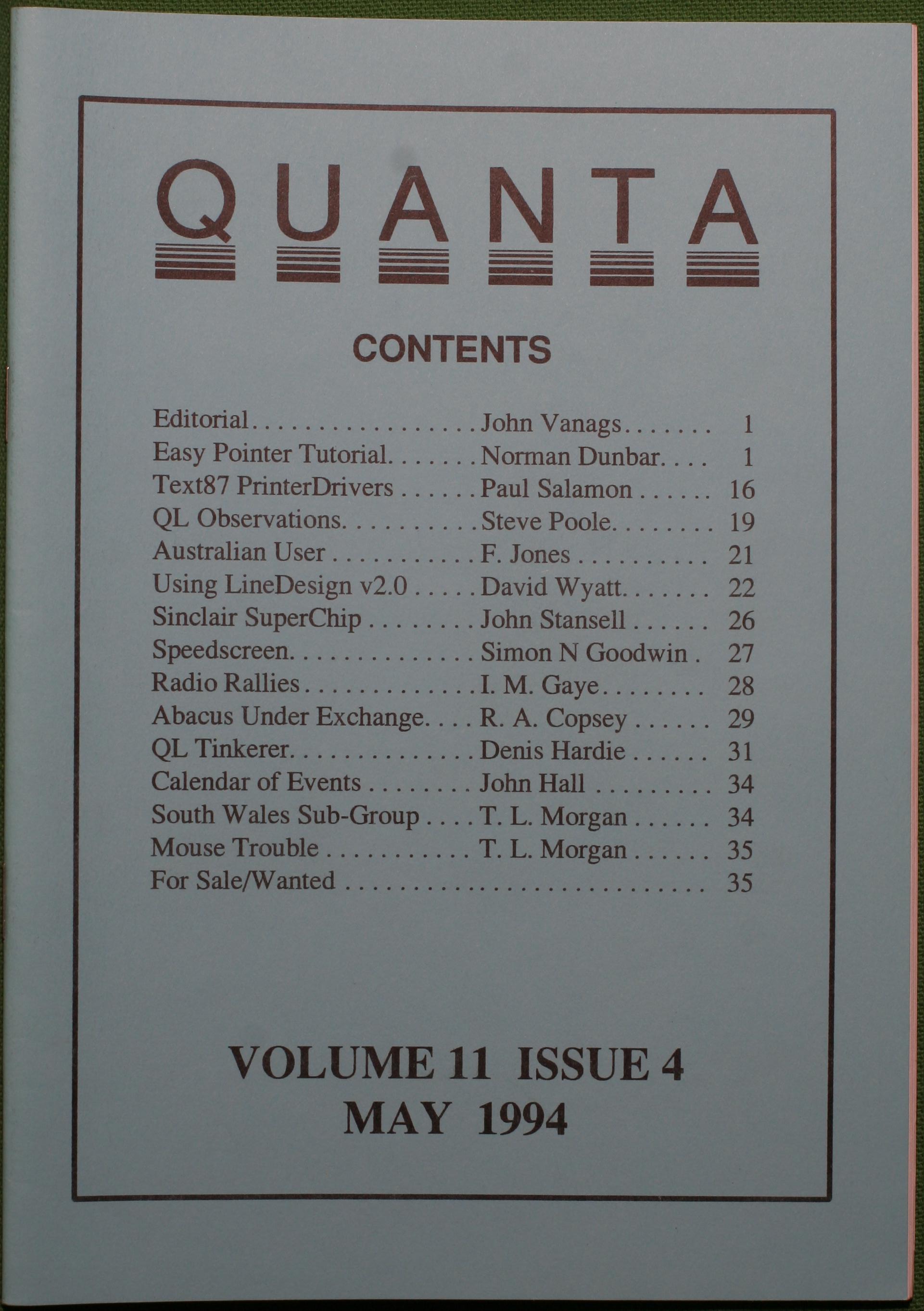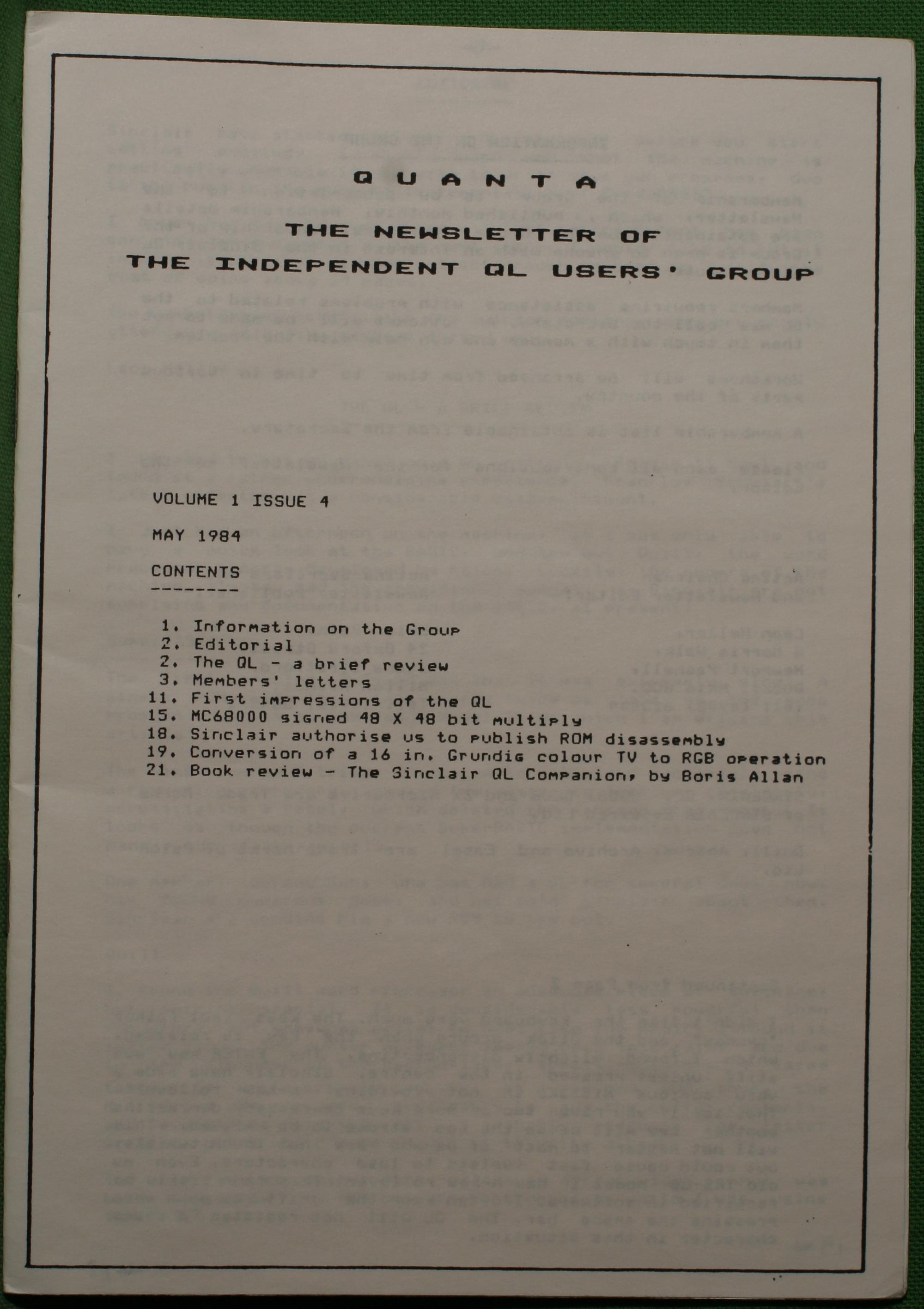 Quanta es el club de usuarios del ordenador Sinclair QL más importante del mundo. Se fundó más o menos al mismo tiempo que se comercializaba el ordenador. Tardé varios años en dicidirme en hacerme socio, pero cuando lo hice pedí todos los números atrasados de la revista. Dejé de ser socio cuando vi que mis pricipales intereses informáticos ya se habían desplazado hacia otros derroteros.