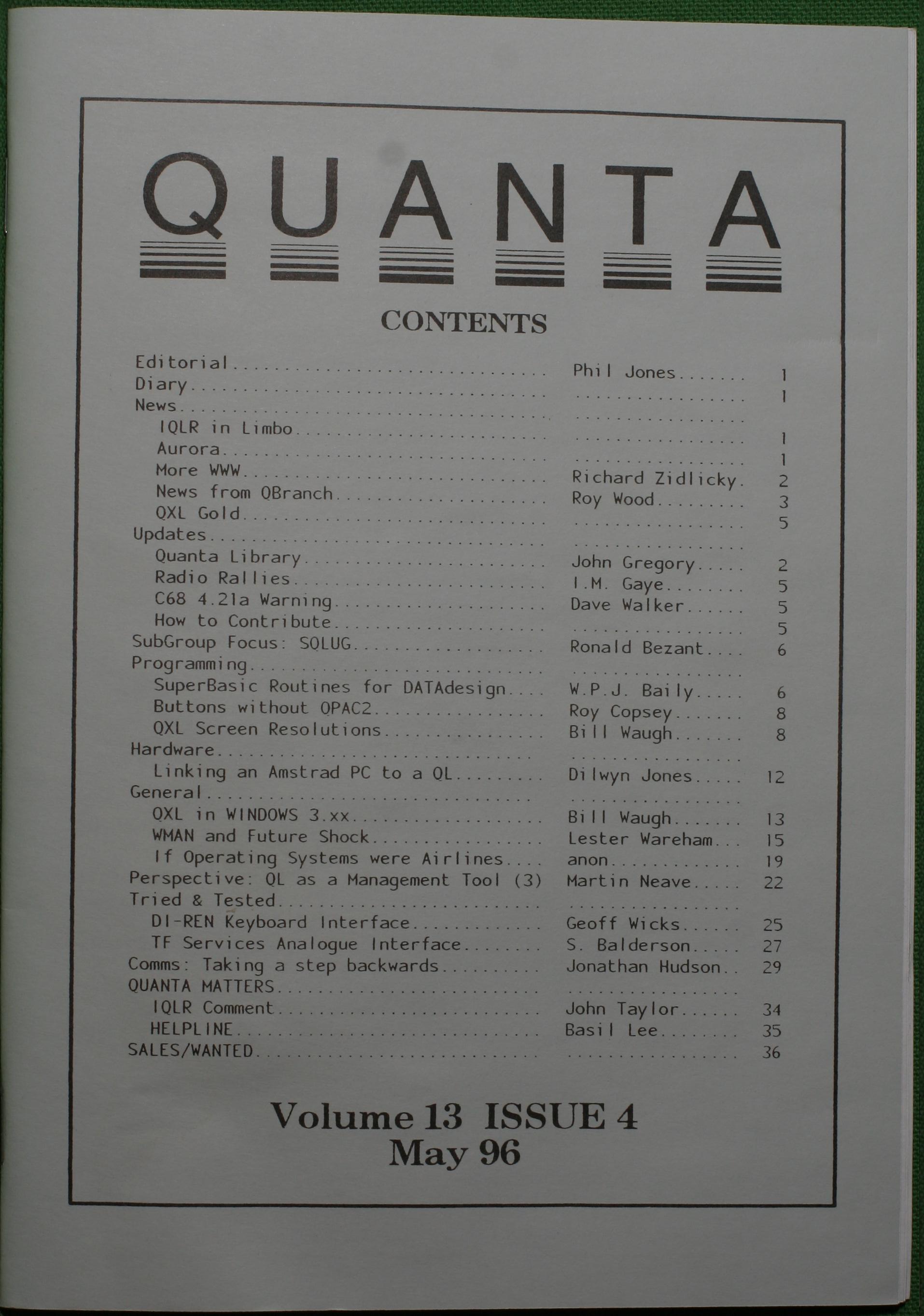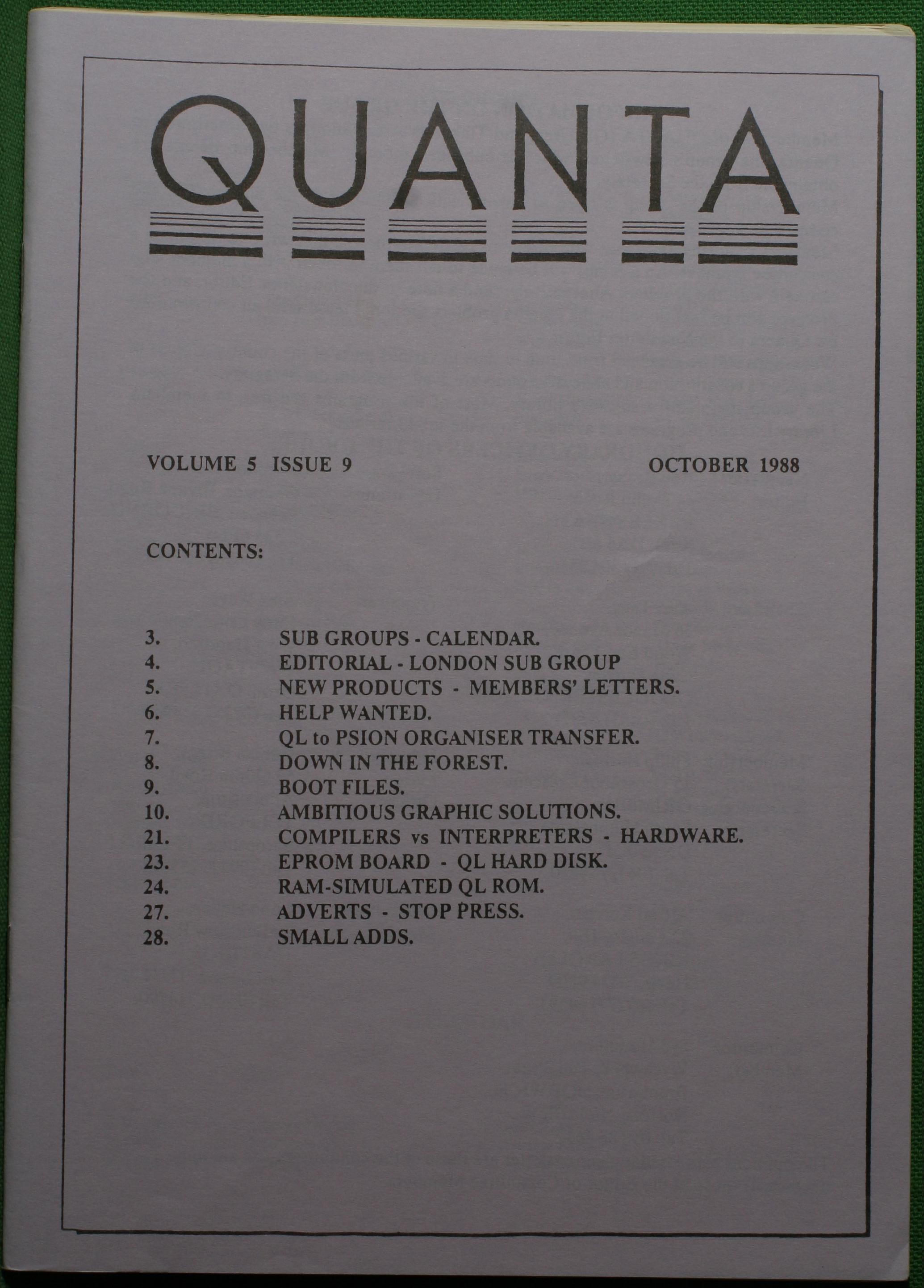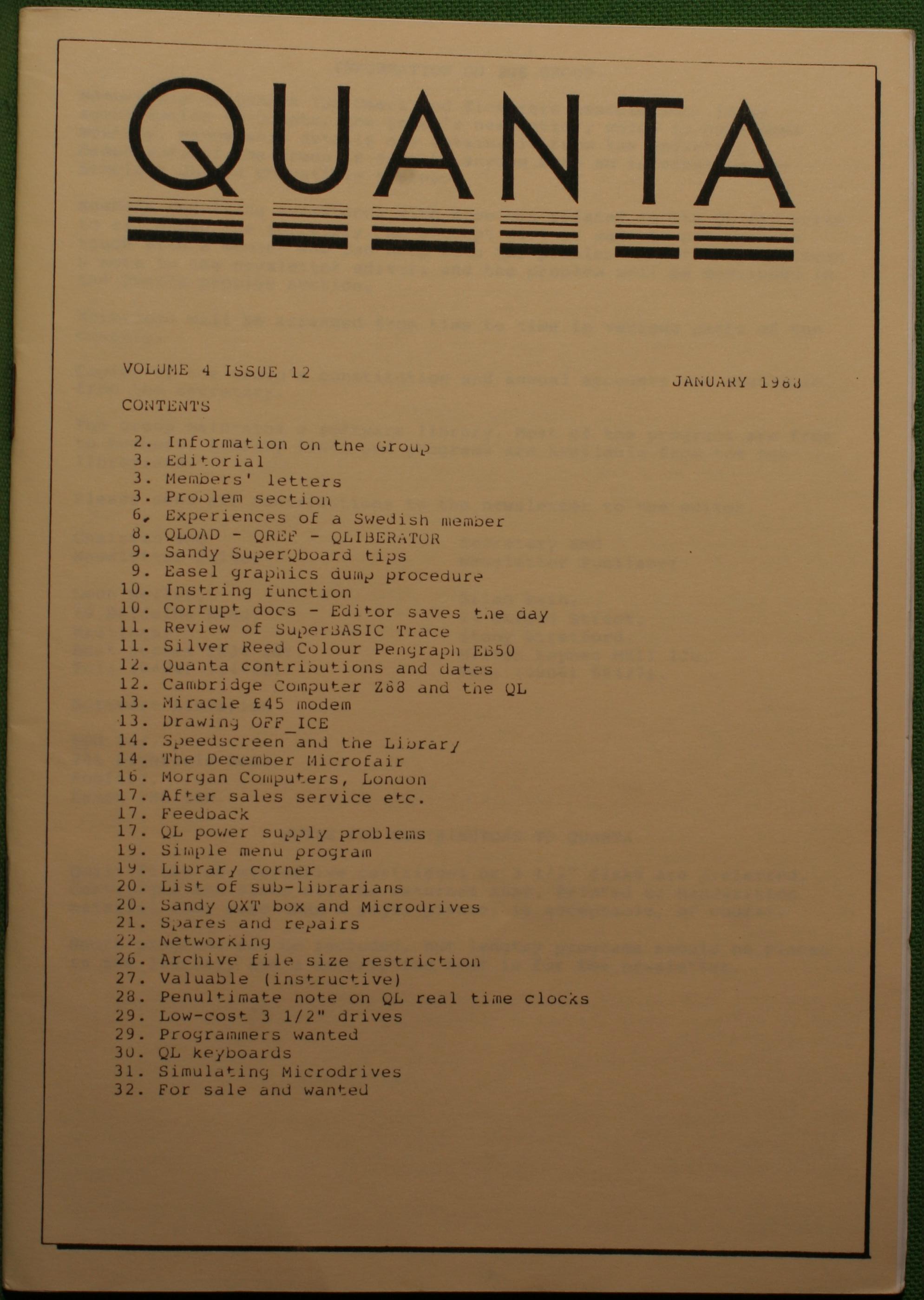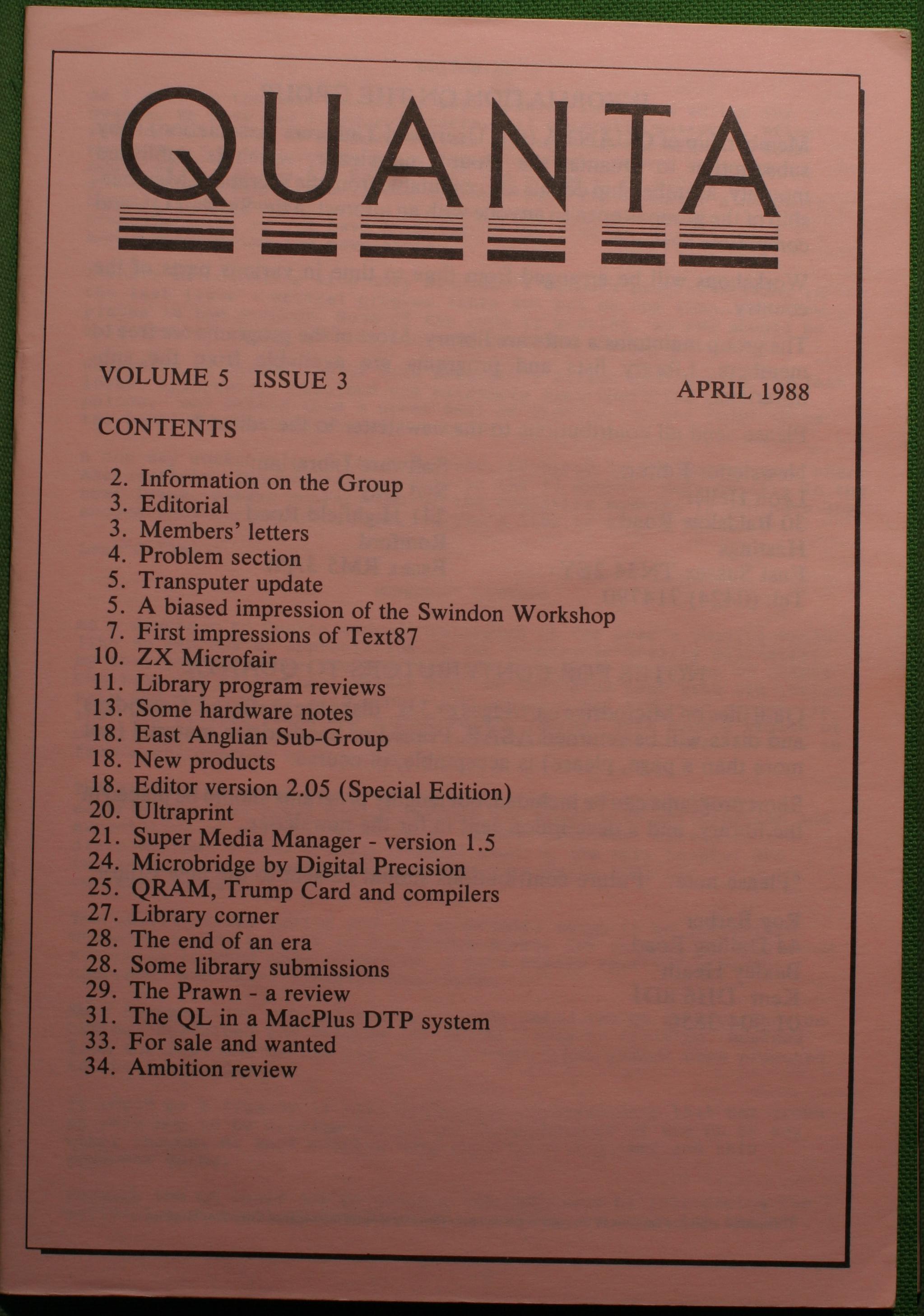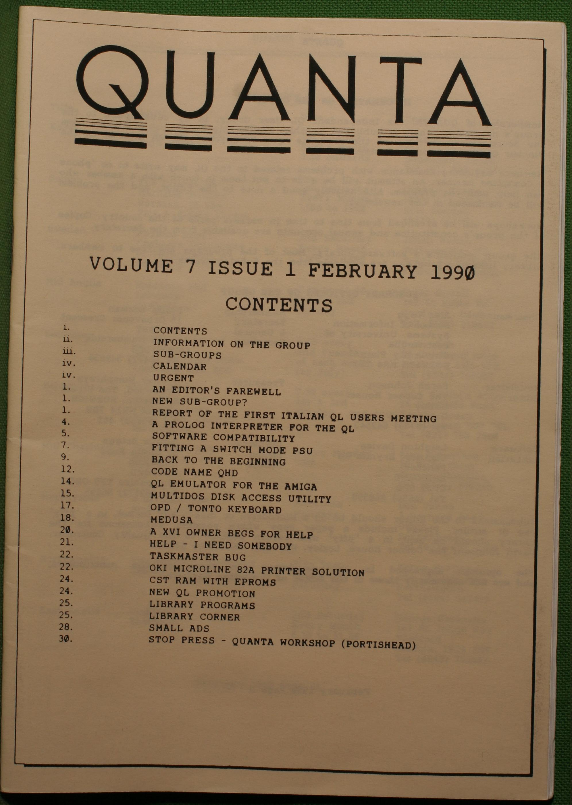 Quanta es el club de usuarios del ordenador Sinclair QL más importante del mundo. Se fundó más o menos al mismo tiempo que se comercializaba el ordenador. Tardé varios años en dicidirme en hacerme socio, pero cuando lo hice pedí todos los números atrasados de la revista. Dejé de ser socio cuando vi que mis pricipales intereses informáticos ya se habían desplazado hacia otros derroteros.