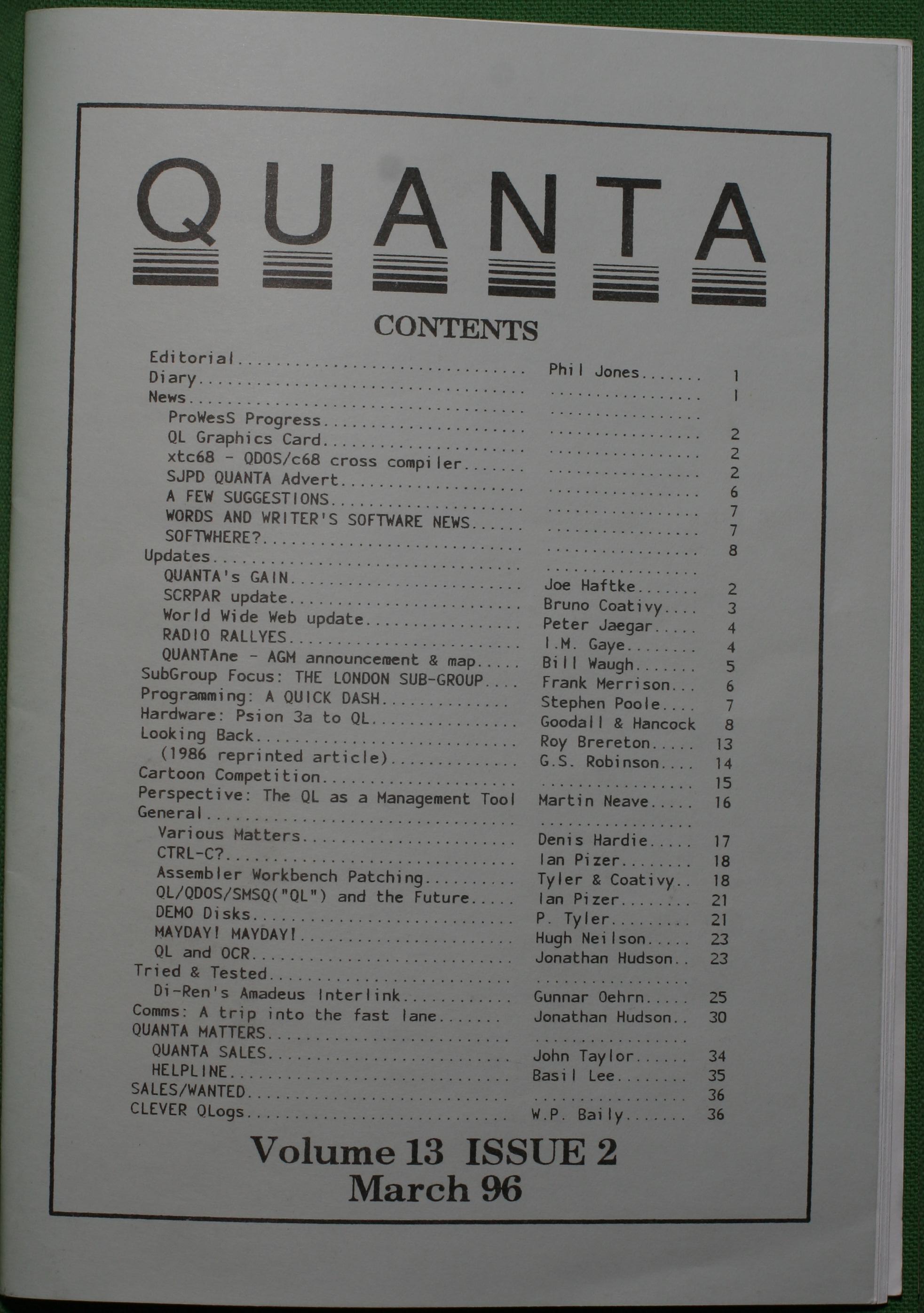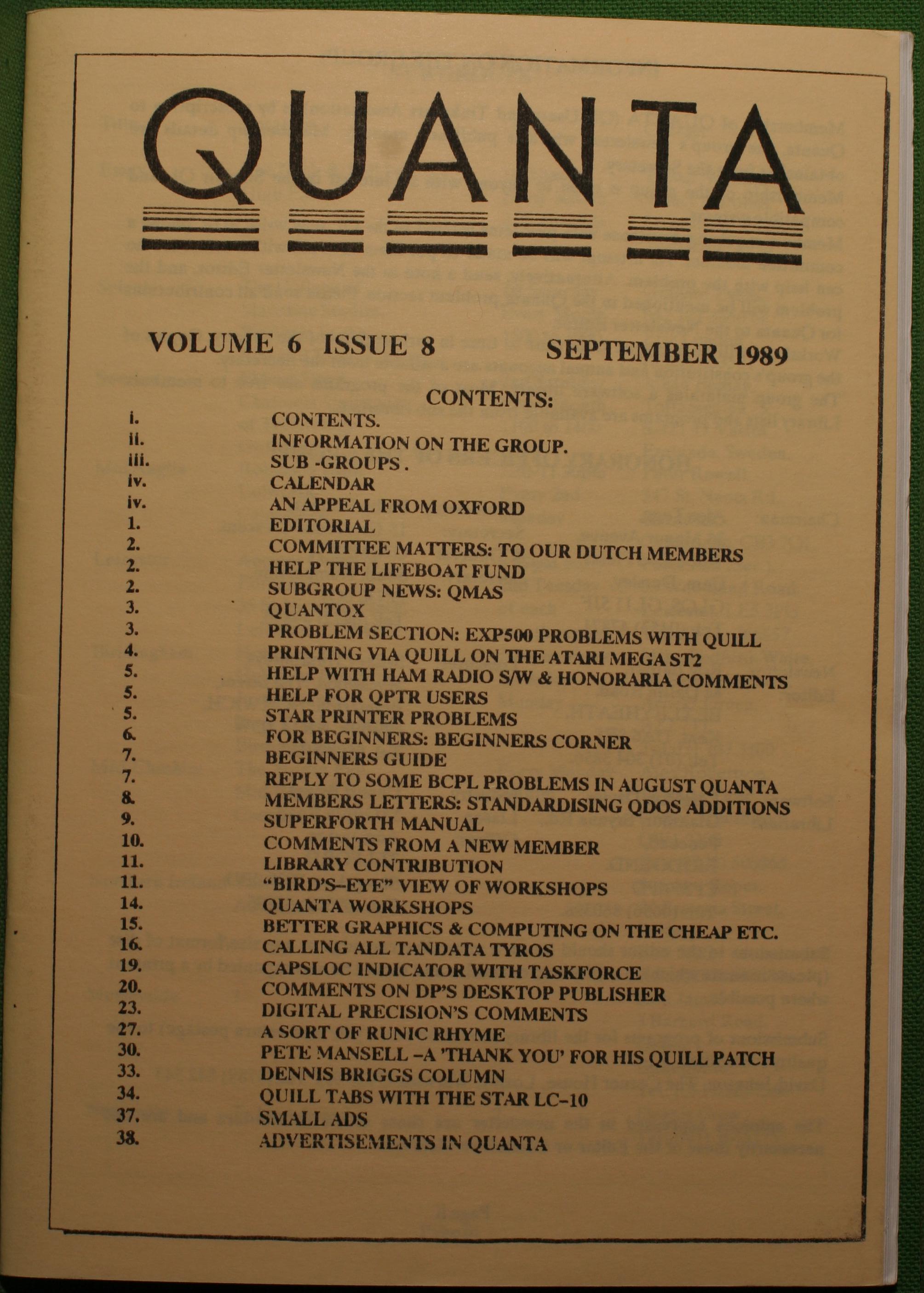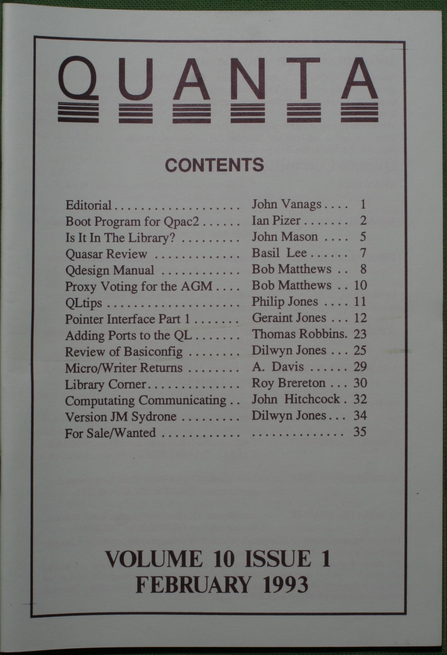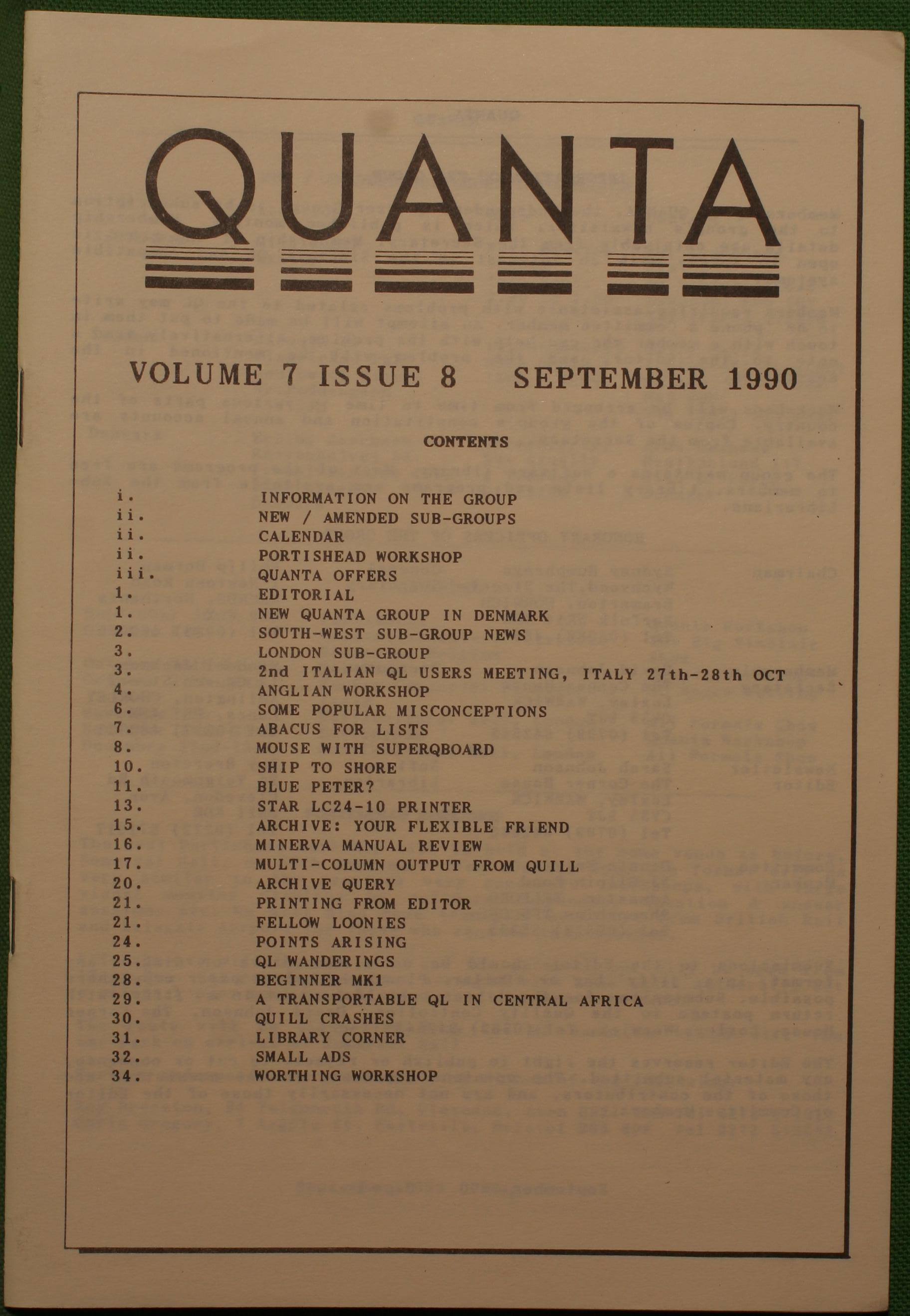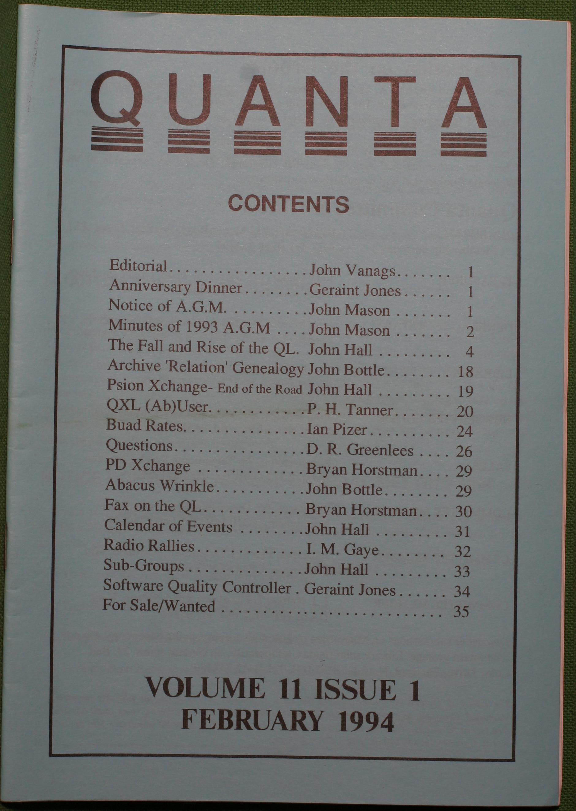 Quanta es el club de usuarios del ordenador Sinclair QL más importante del mundo. Se fundó más o menos al mismo tiempo que se comercializaba el ordenador. Tardé varios años en dicidirme en hacerme socio, pero cuando lo hice pedí todos los números atrasados de la revista. Dejé de ser socio cuando vi que mis pricipales intereses informáticos ya se habían desplazado hacia otros derroteros.