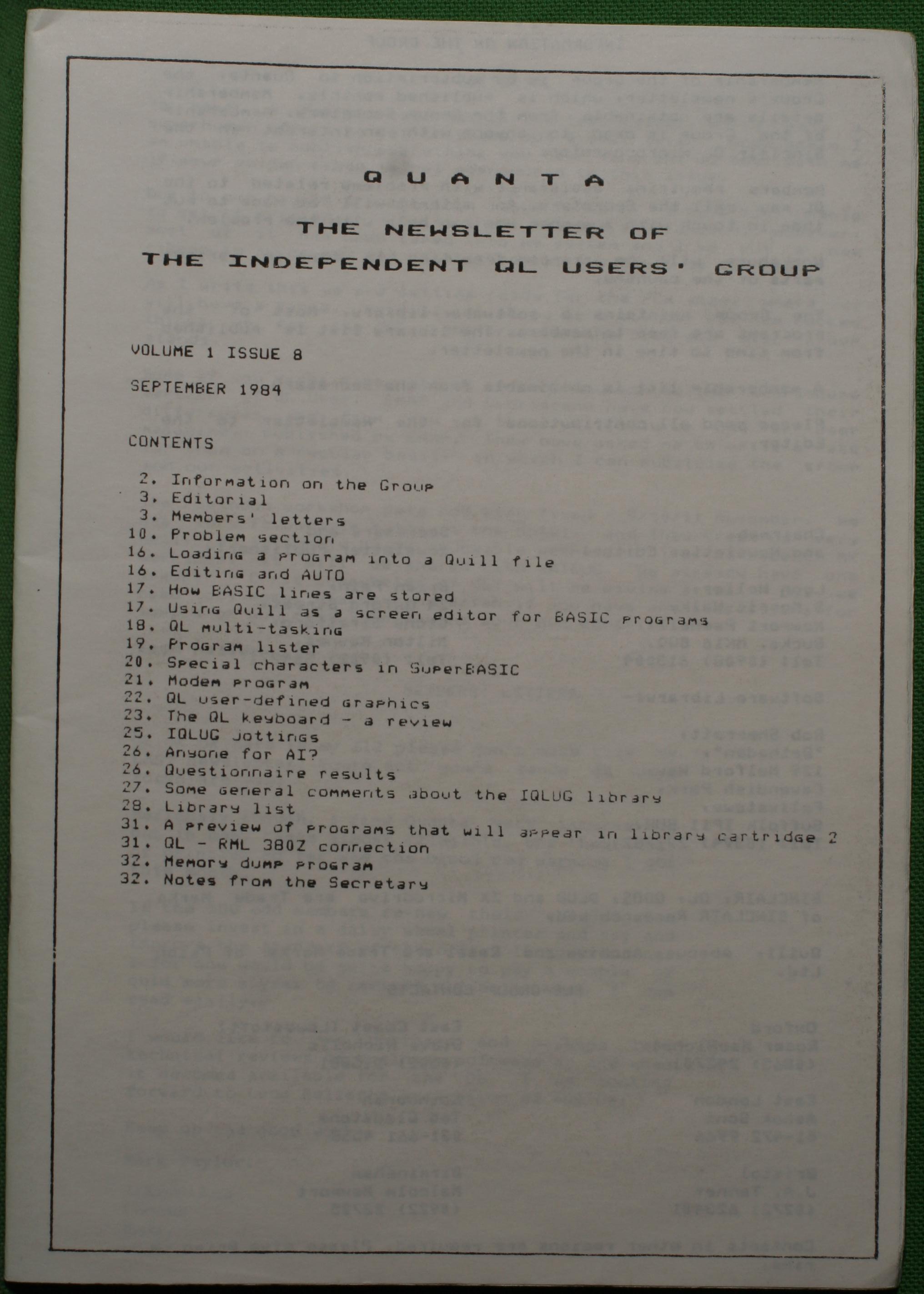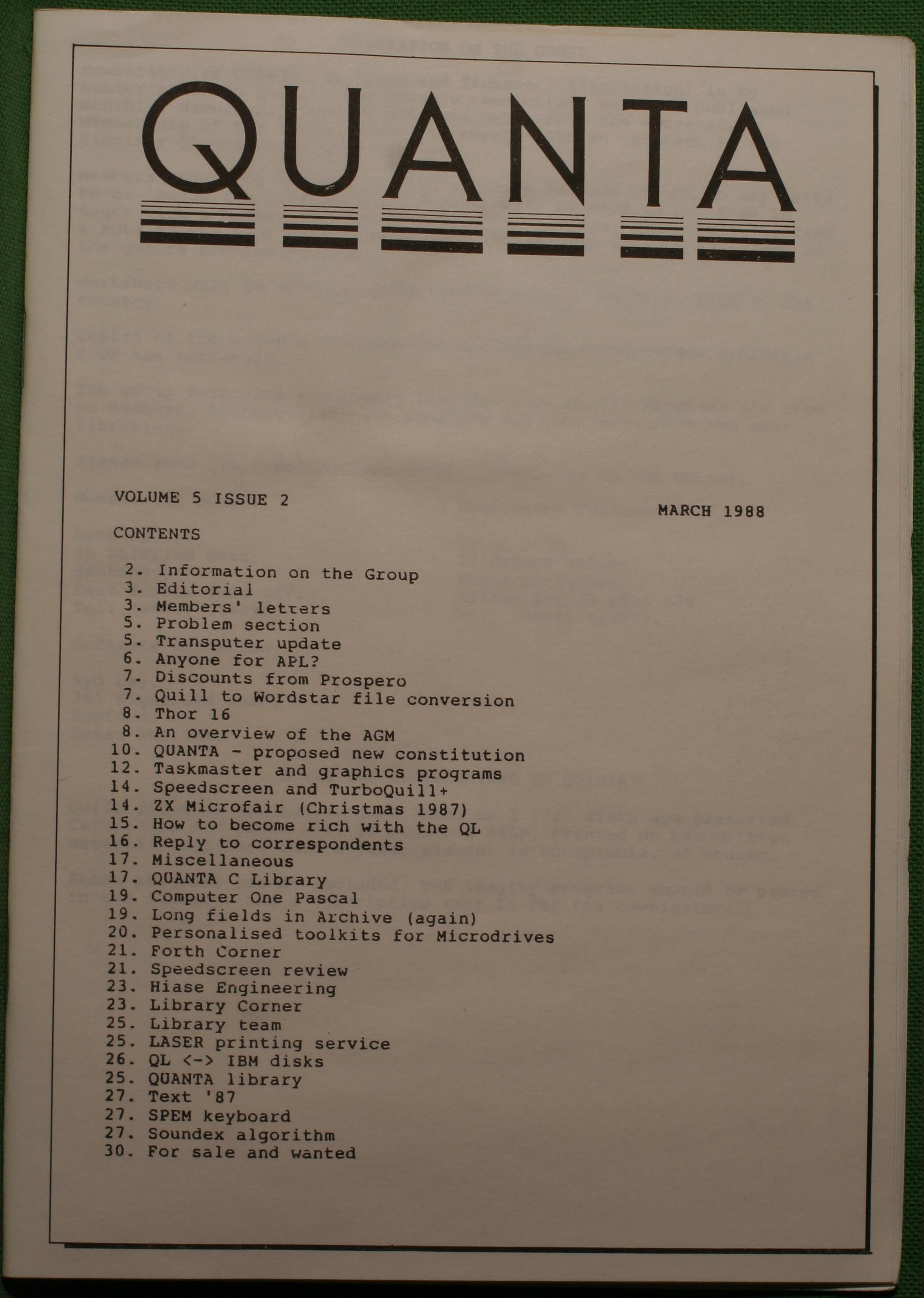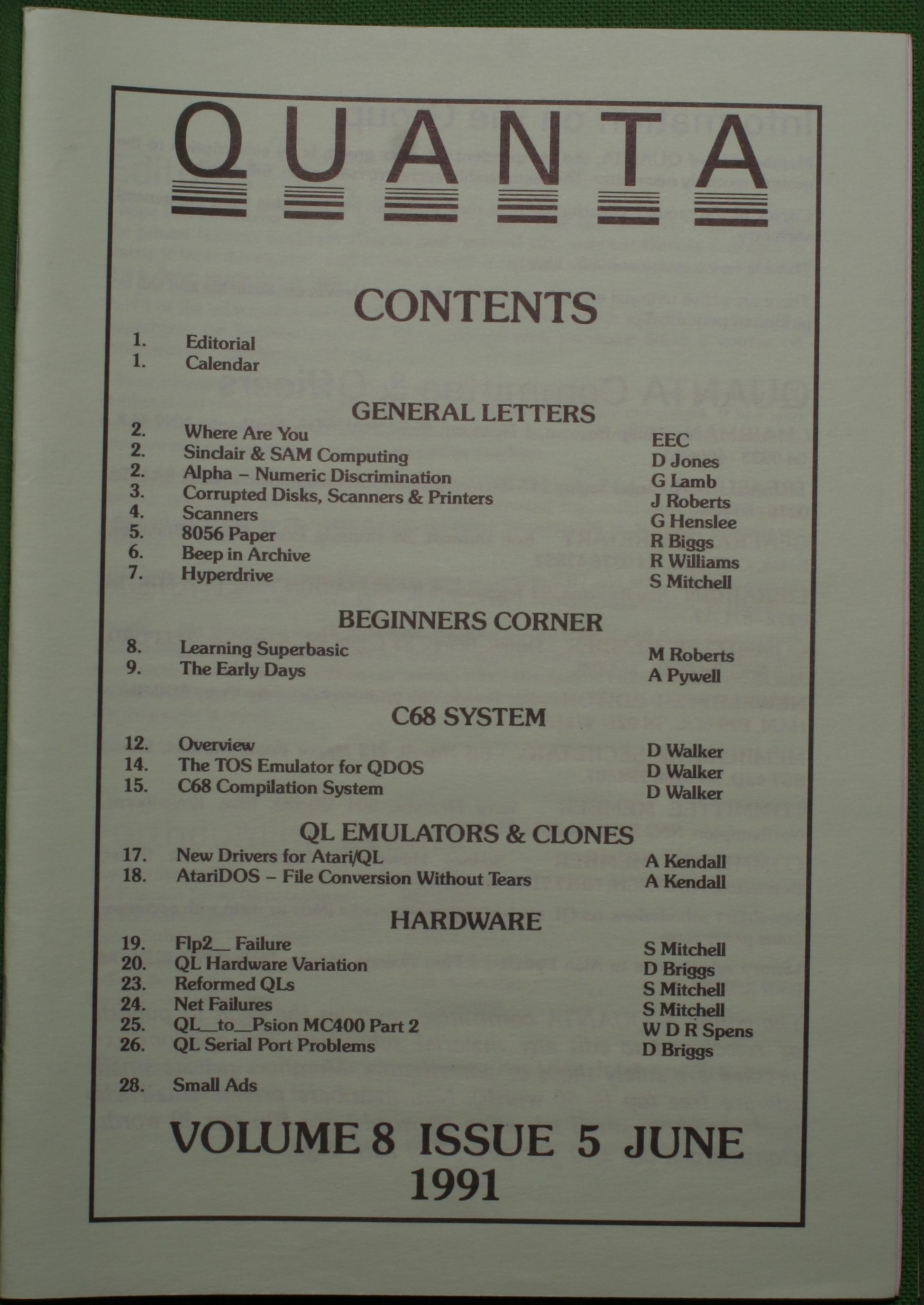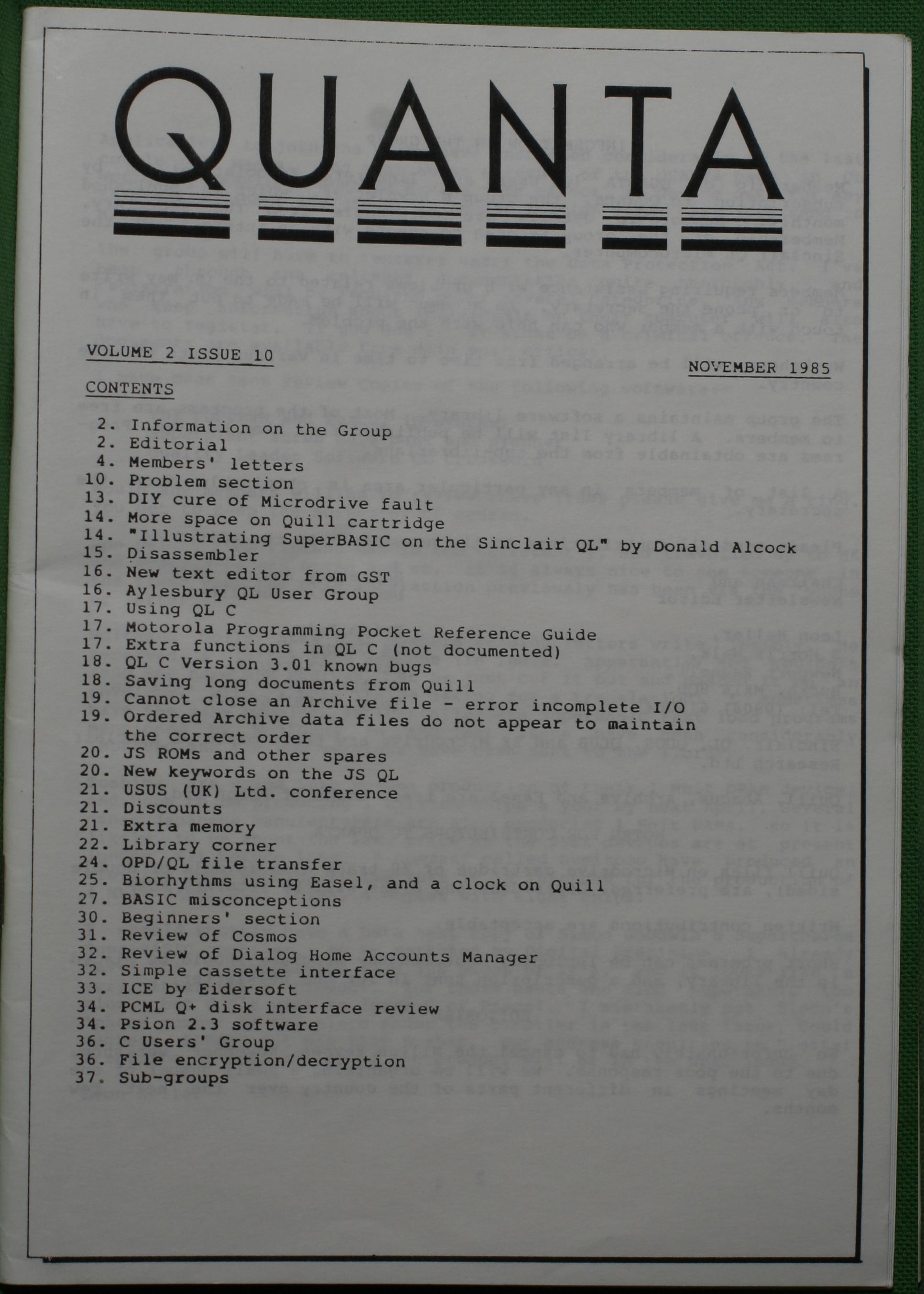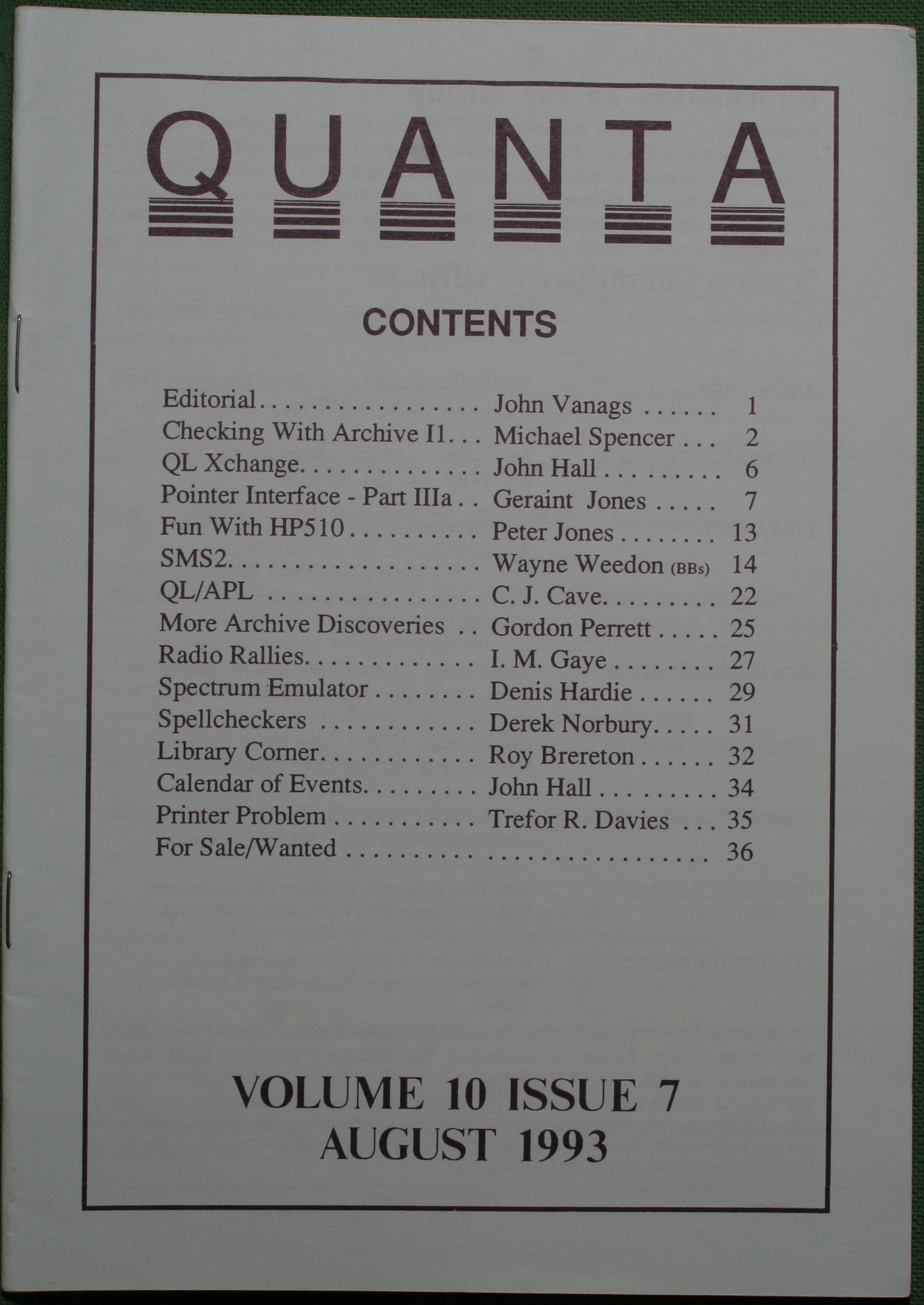 Quanta es el club de usuarios del ordenador Sinclair QL más importante del mundo. Se fundó más o menos al mismo tiempo que se comercializaba el ordenador. Tardé varios años en dicidirme en hacerme socio, pero cuando lo hice pedí todos los números atrasados de la revista. Dejé de ser socio cuando vi que mis pricipales intereses informáticos ya se habían desplazado hacia otros derroteros.