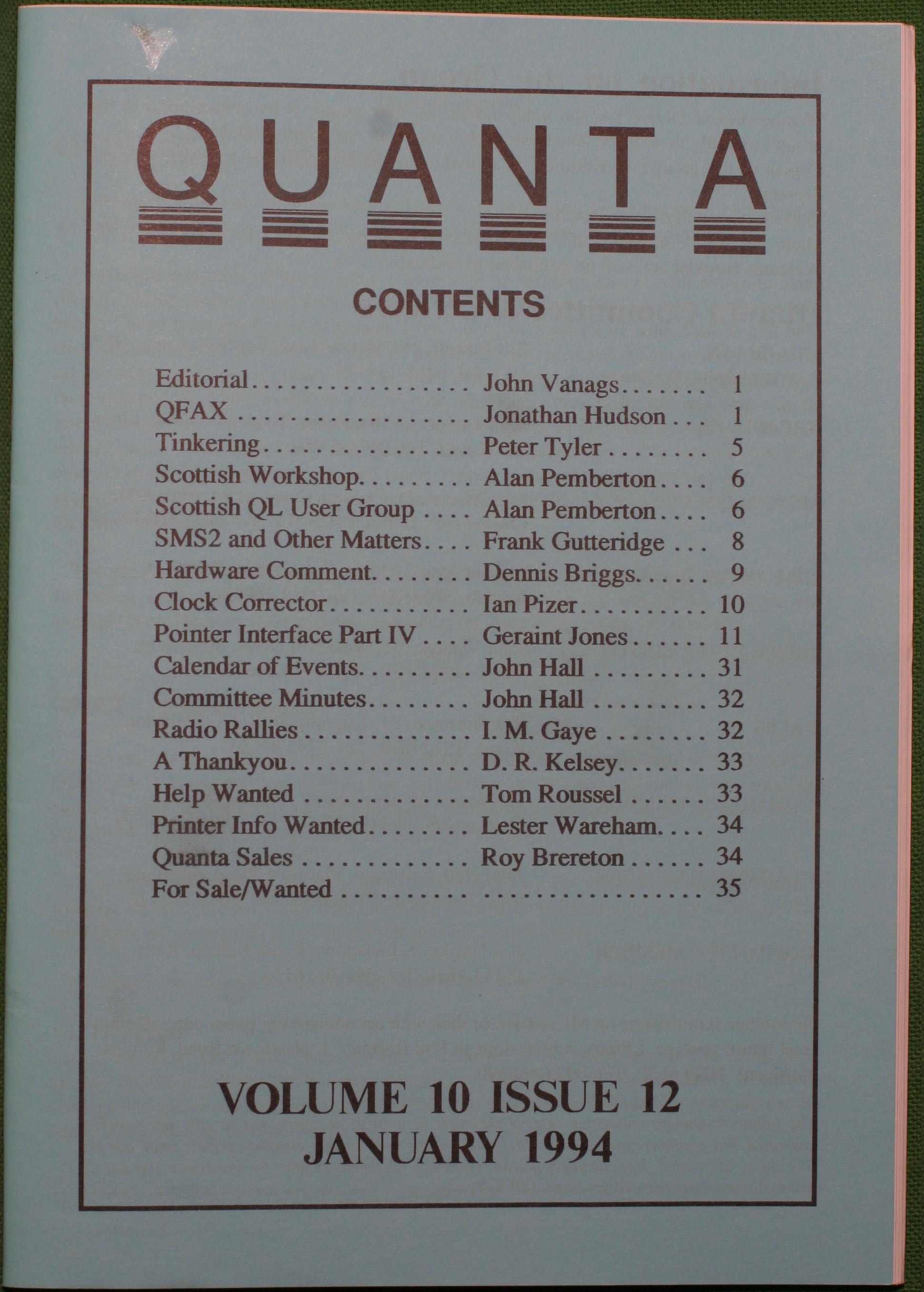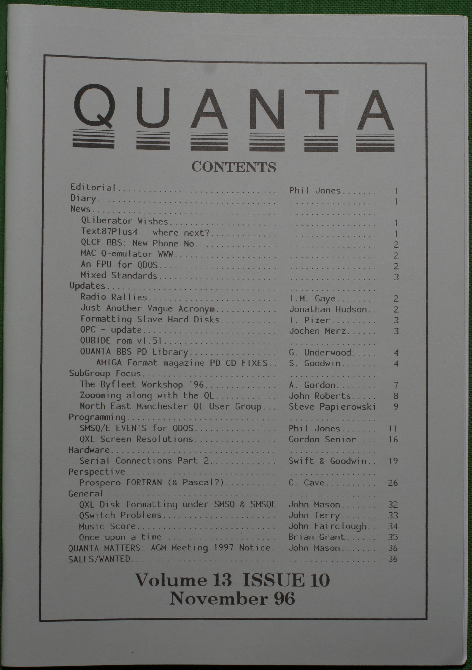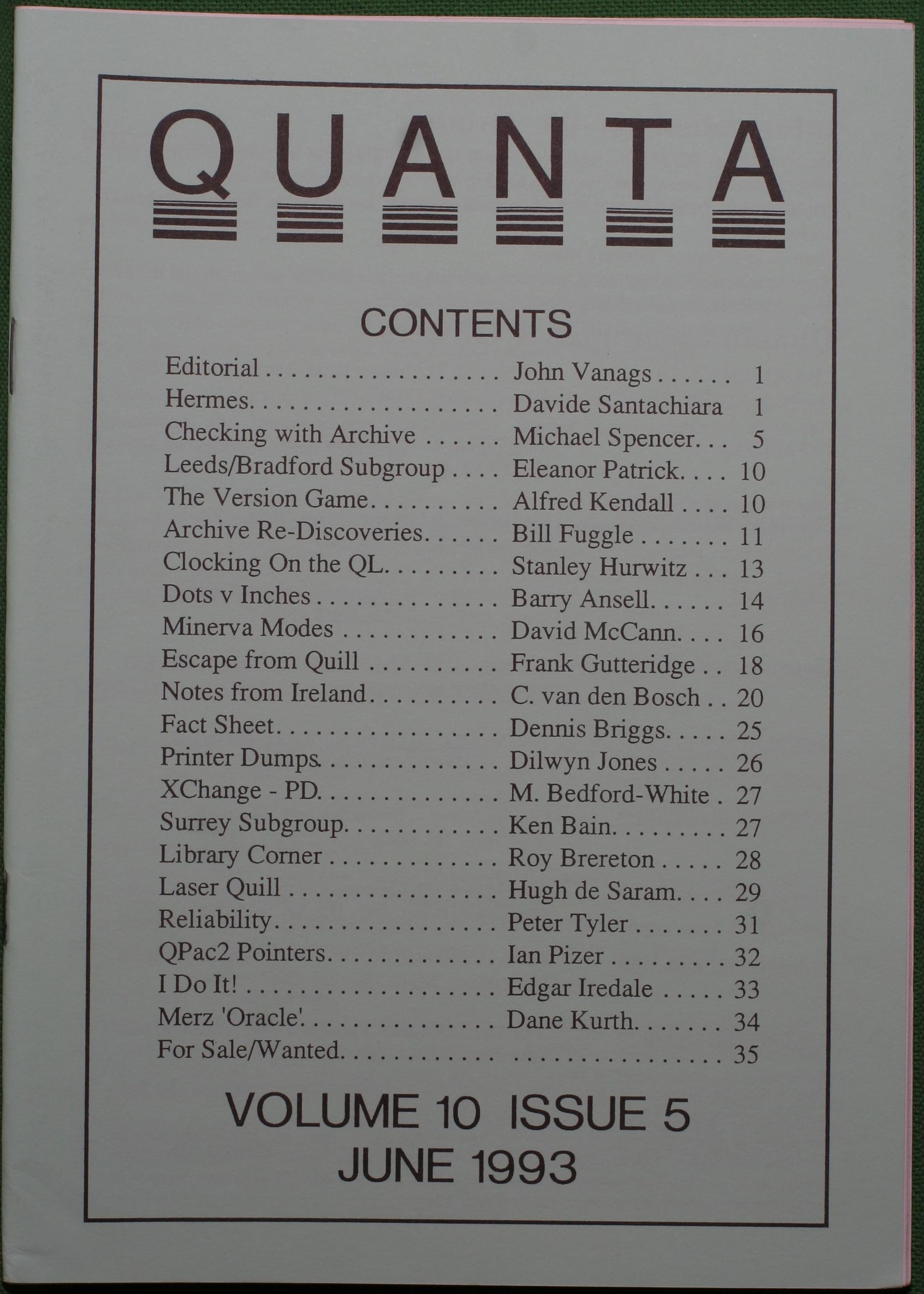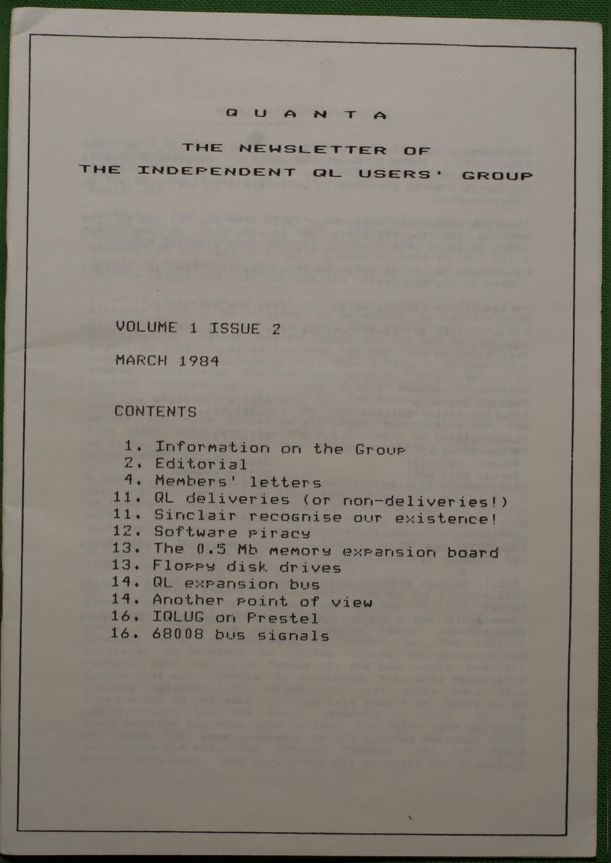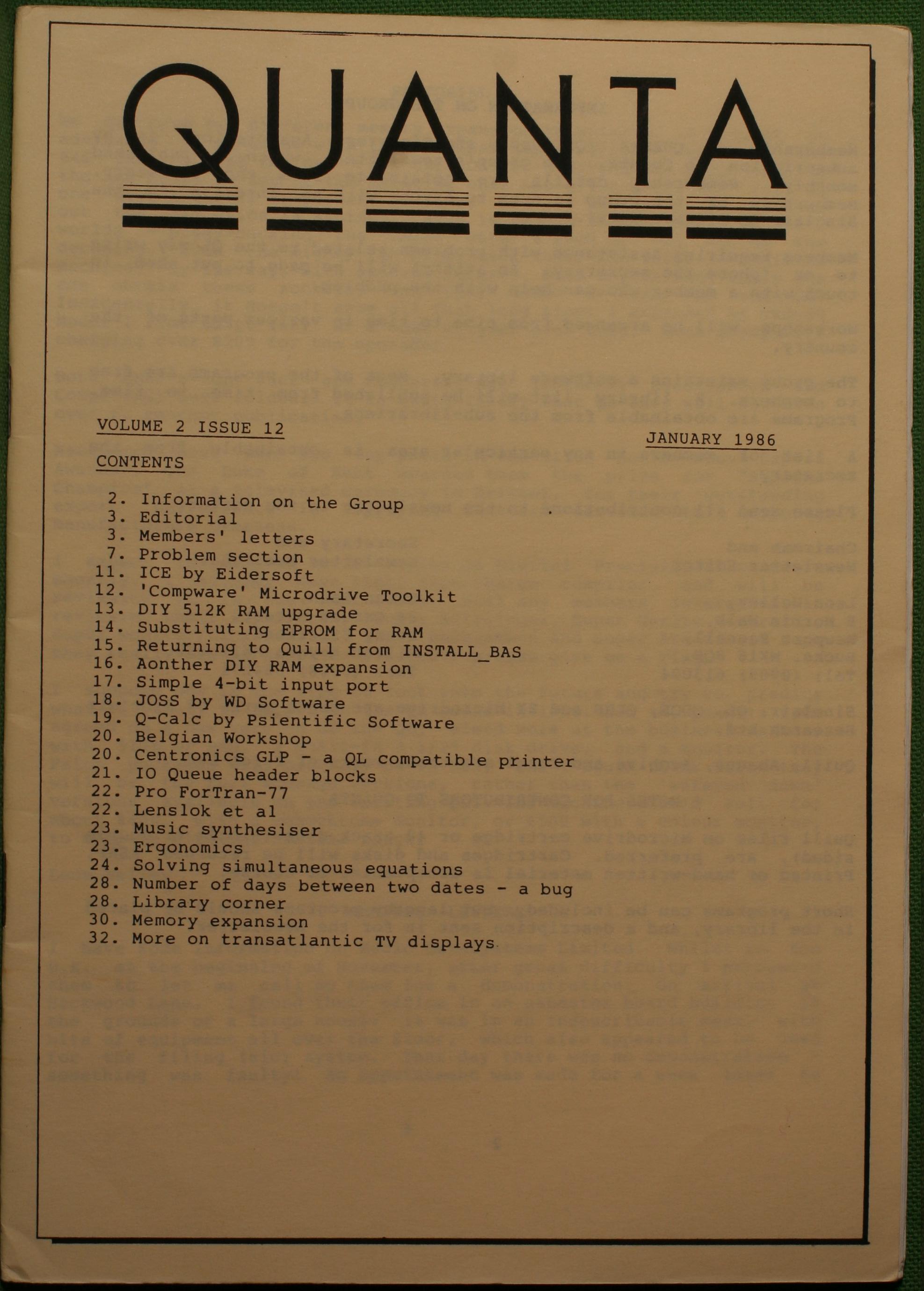 Quanta es el club de usuarios del ordenador Sinclair QL más importante del mundo. Se fundó más o menos al mismo tiempo que se comercializaba el ordenador. Tardé varios años en dicidirme en hacerme socio, pero cuando lo hice pedí todos los números atrasados de la revista. Dejé de ser socio cuando vi que mis pricipales intereses informáticos ya se habían desplazado hacia otros derroteros.