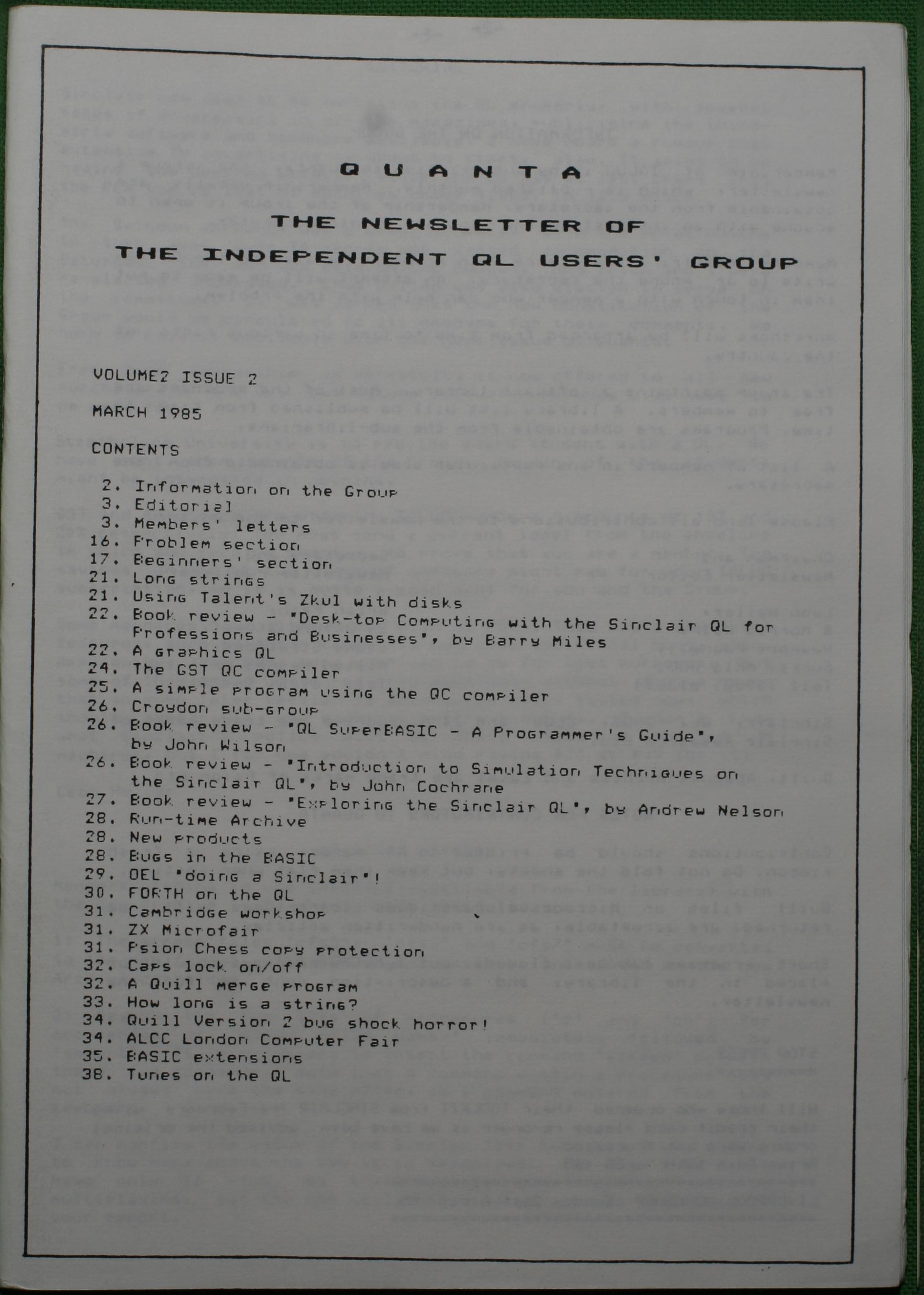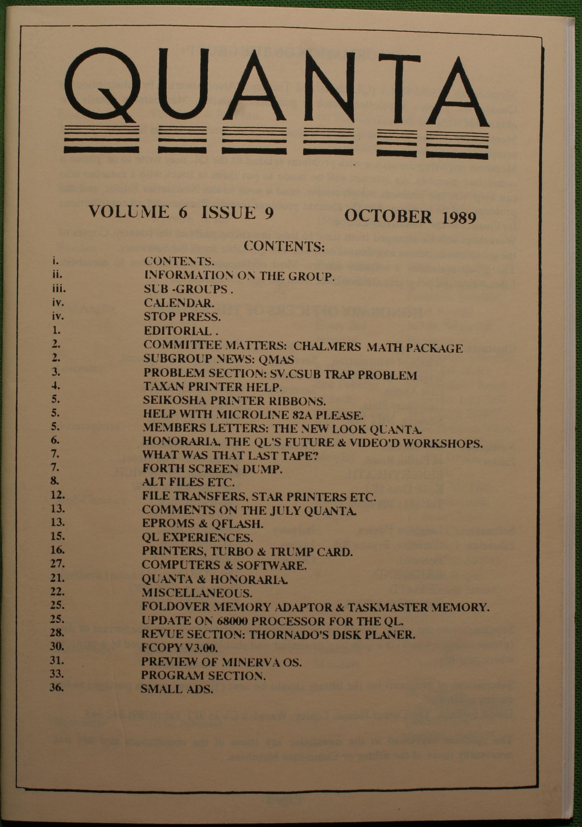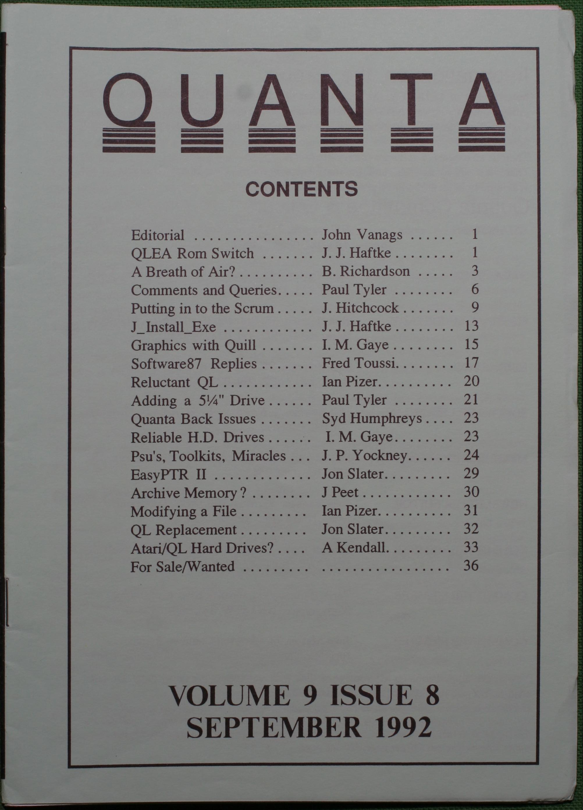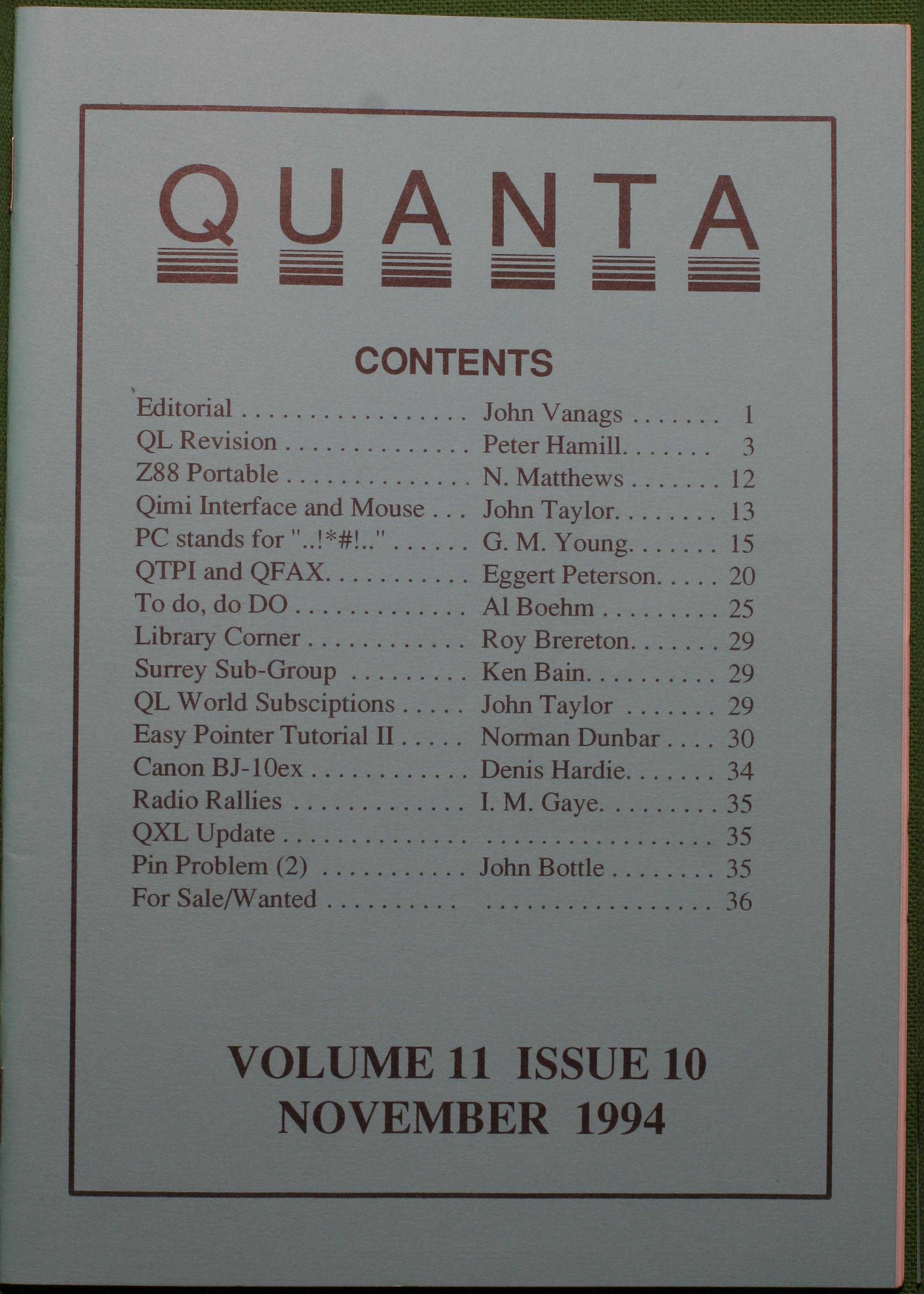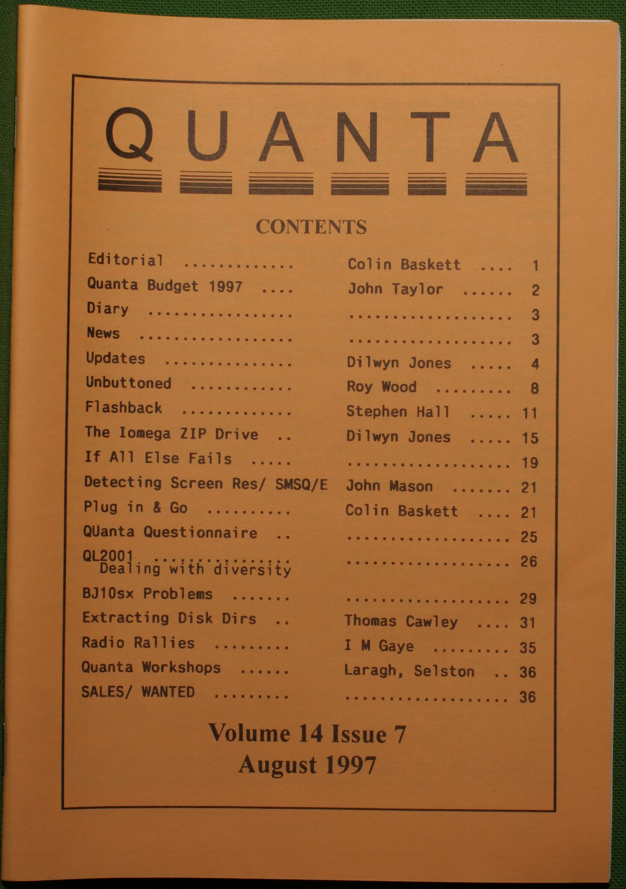 Quanta es el club de usuarios del ordenador Sinclair QL más importante del mundo. Se fundó más o menos al mismo tiempo que se comercializaba el ordenador. Tardé varios años en dicidirme en hacerme socio, pero cuando lo hice pedí todos los números atrasados de la revista. Dejé de ser socio cuando vi que mis pricipales intereses informáticos ya se habían desplazado hacia otros derroteros.