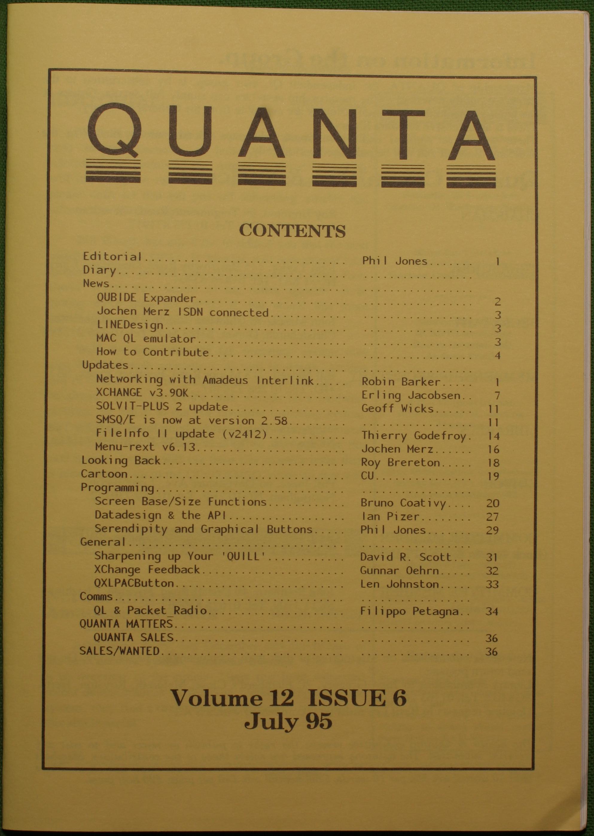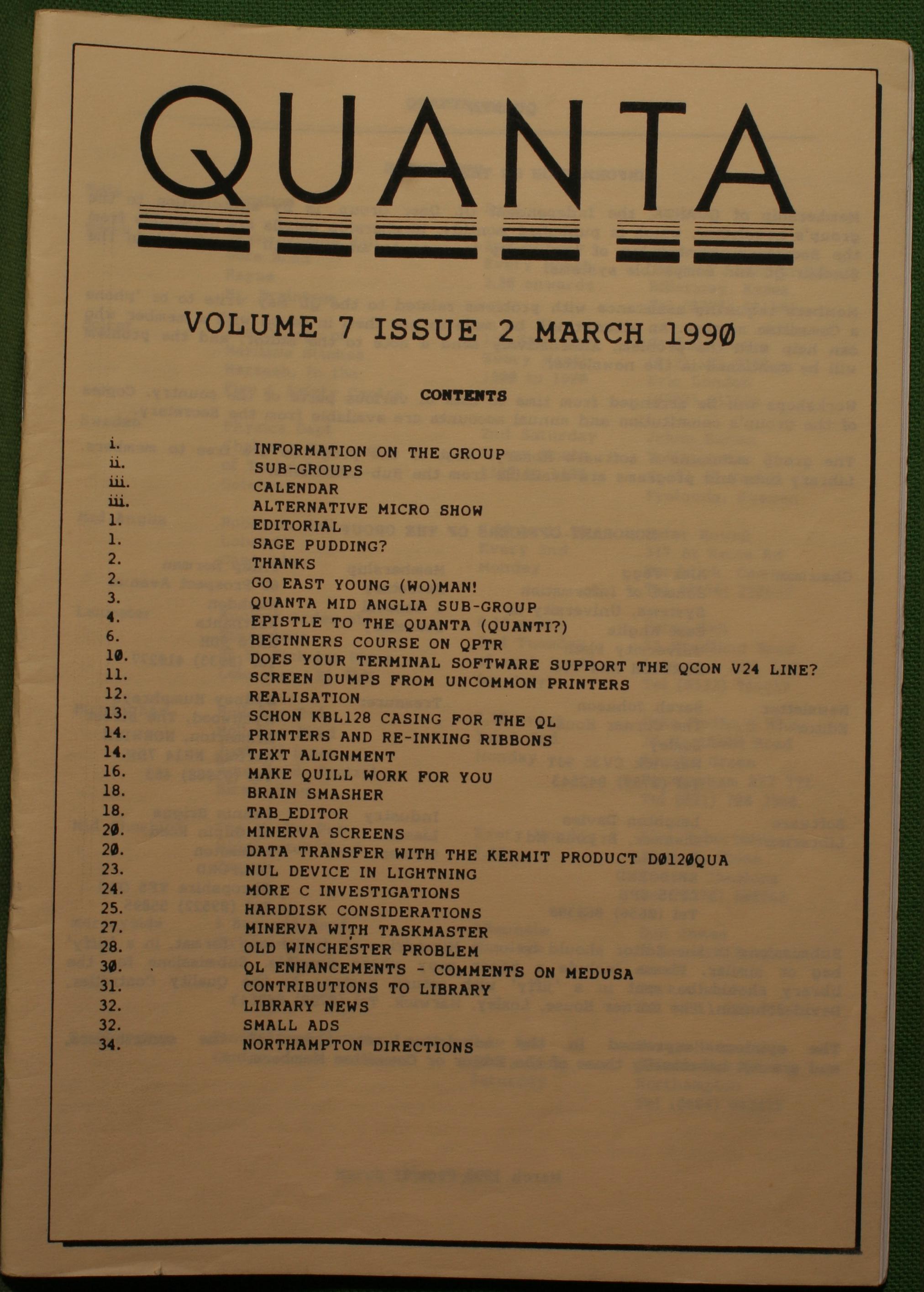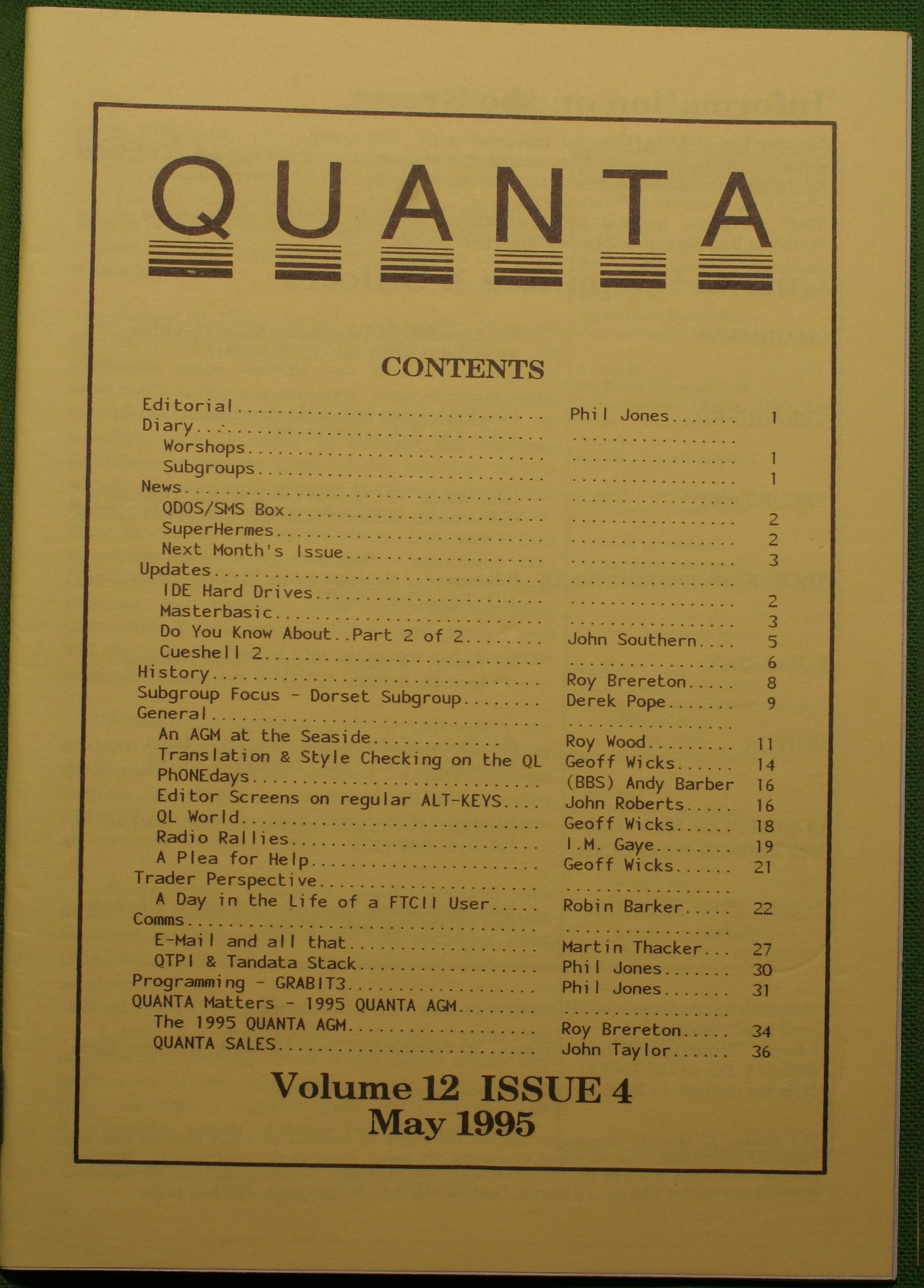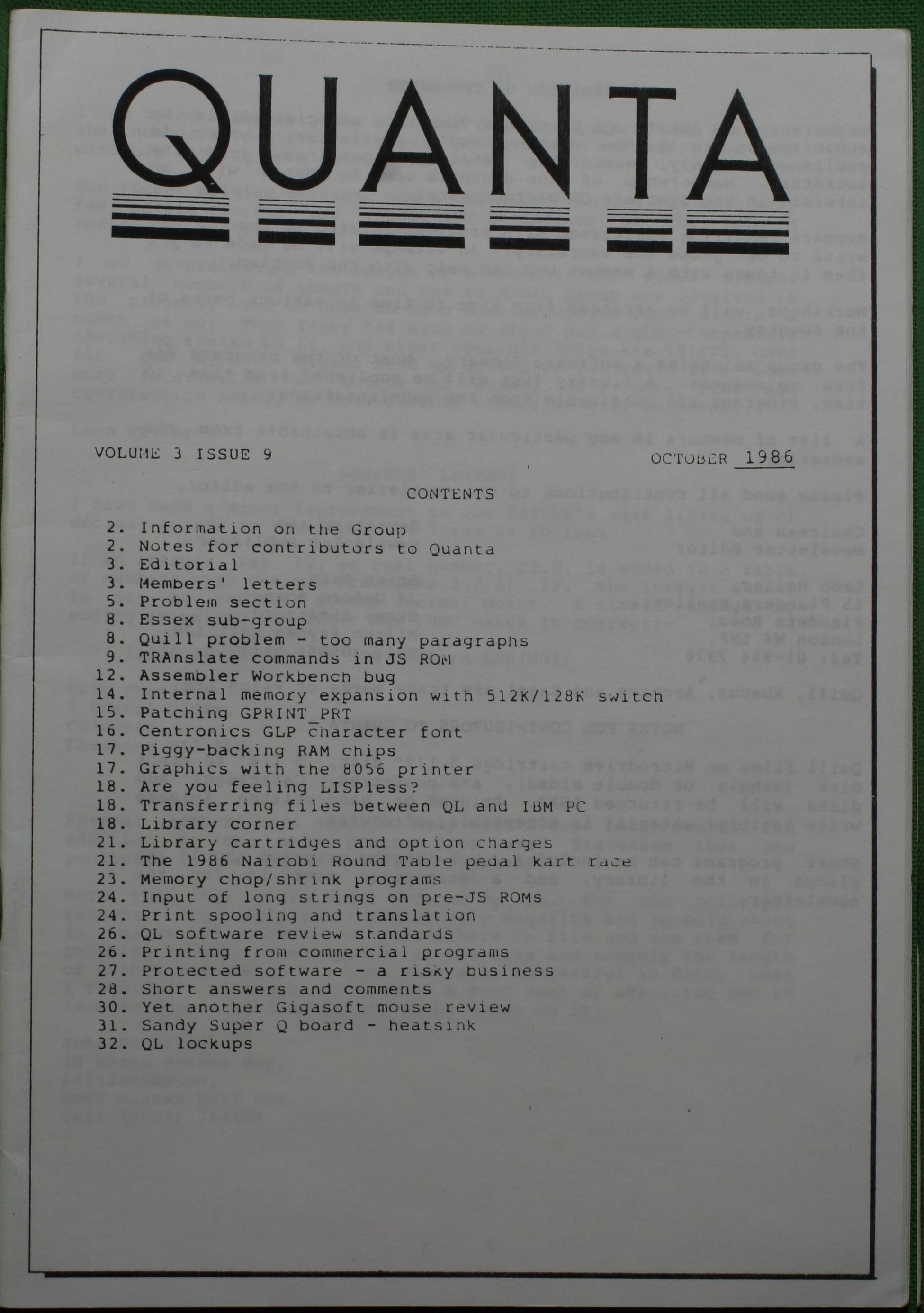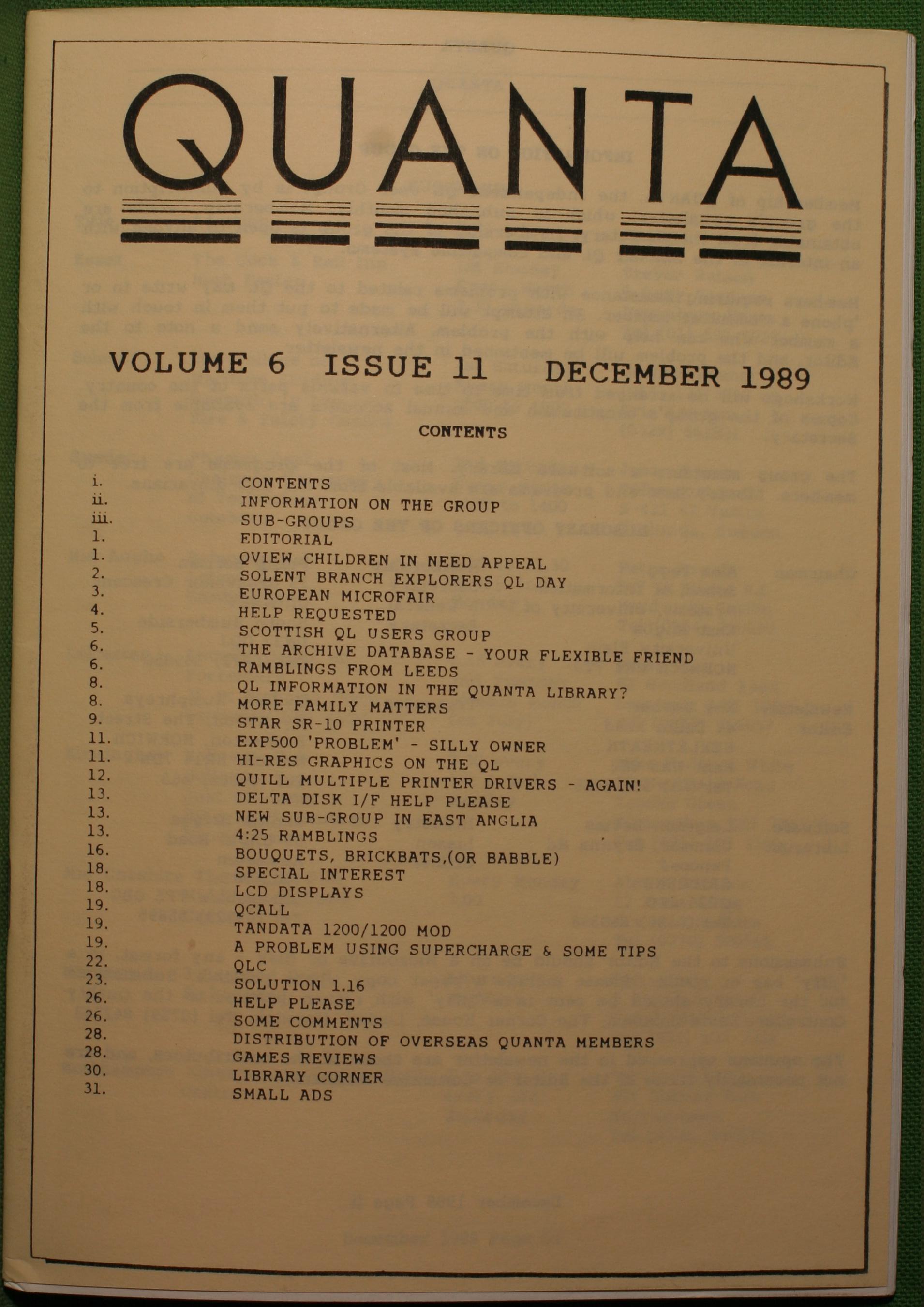 Quanta es el club de usuarios del ordenador Sinclair QL más importante del mundo. Se fundó más o menos al mismo tiempo que se comercializaba el ordenador. Tardé varios años en dicidirme en hacerme socio, pero cuando lo hice pedí todos los números atrasados de la revista. Dejé de ser socio cuando vi que mis pricipales intereses informáticos ya se habían desplazado hacia otros derroteros.