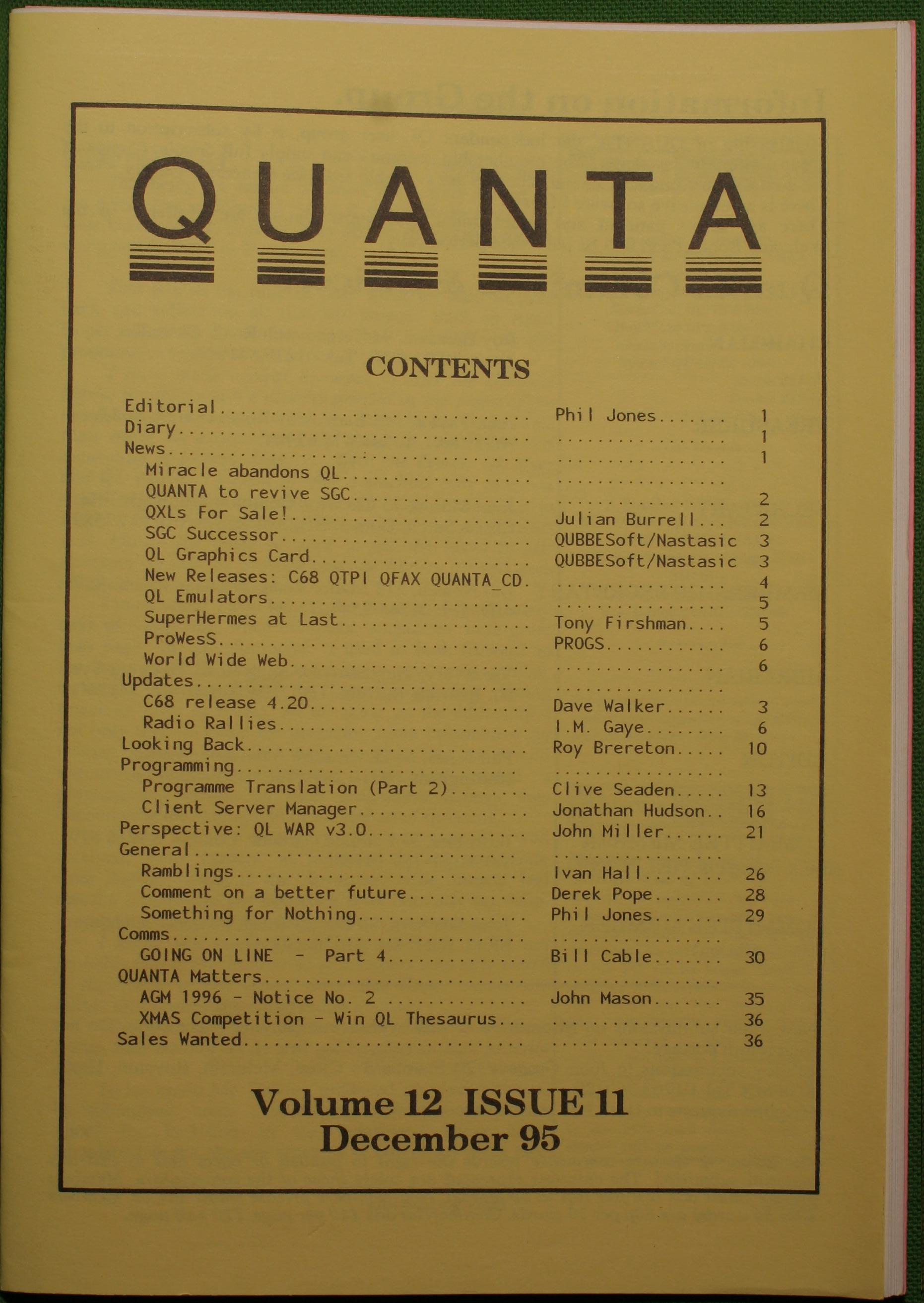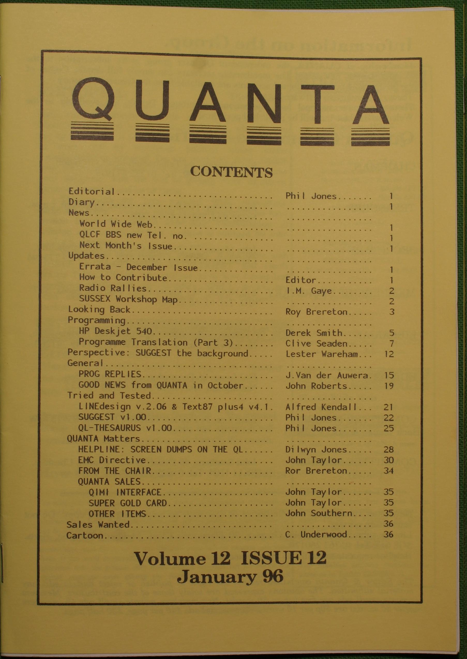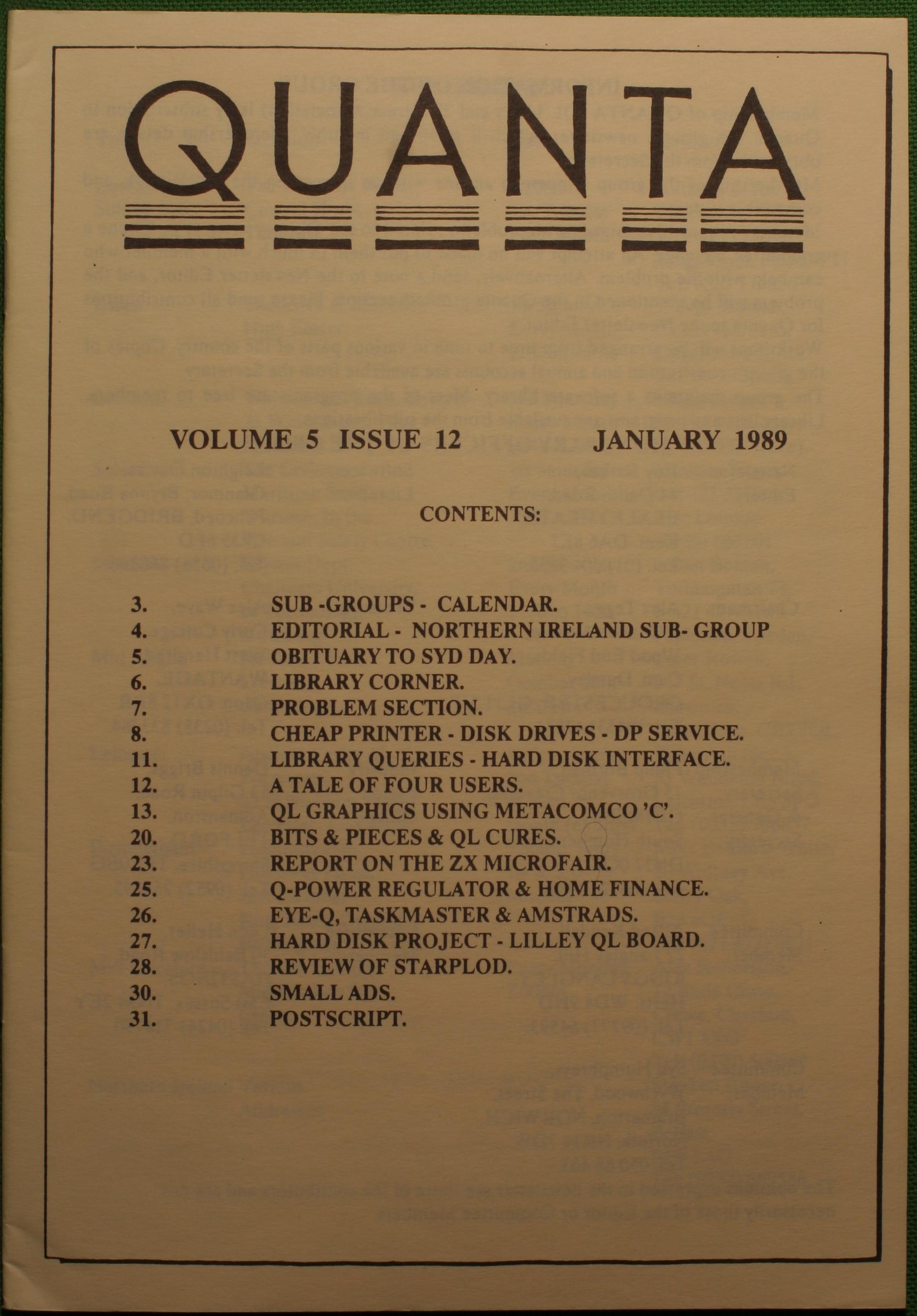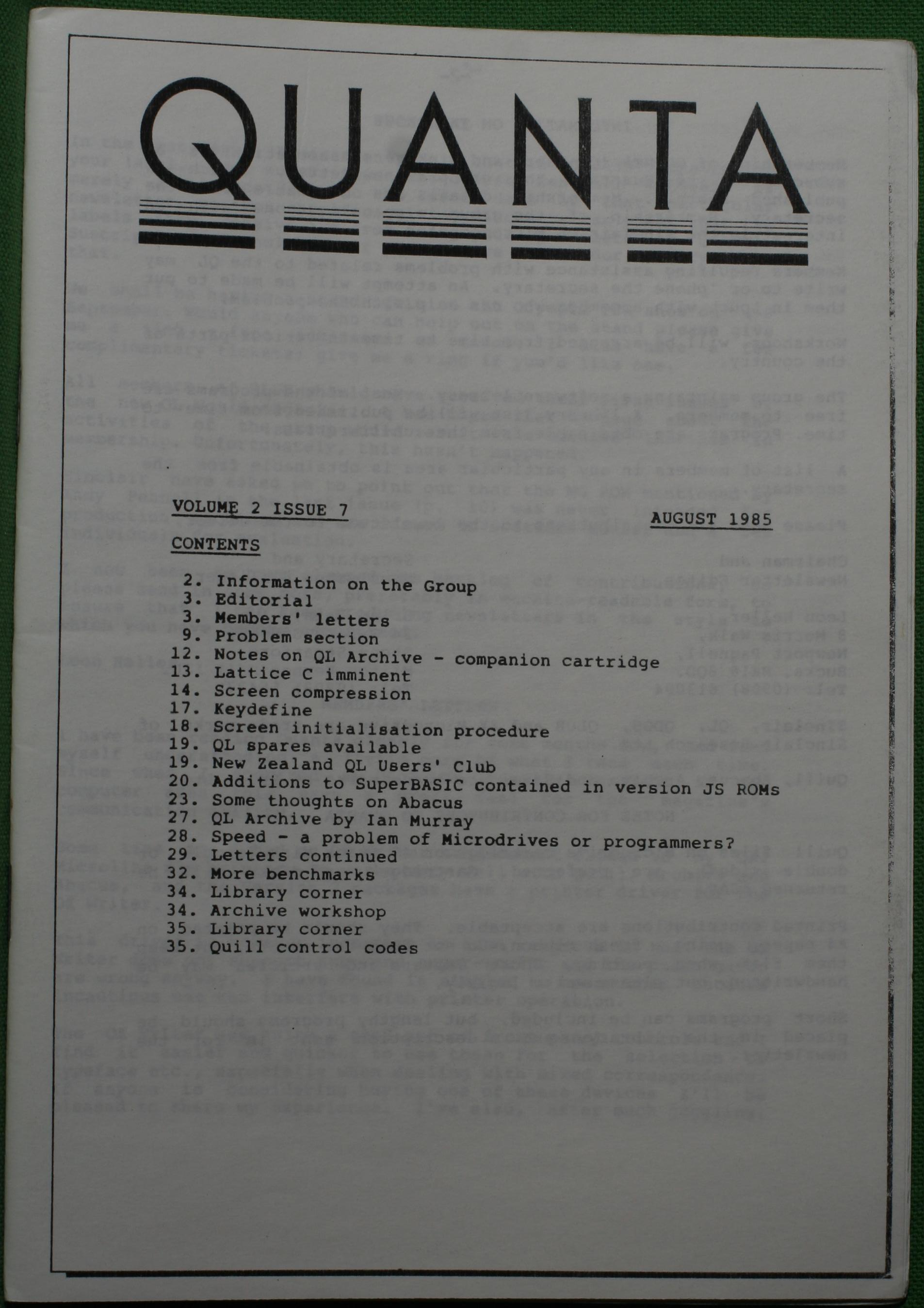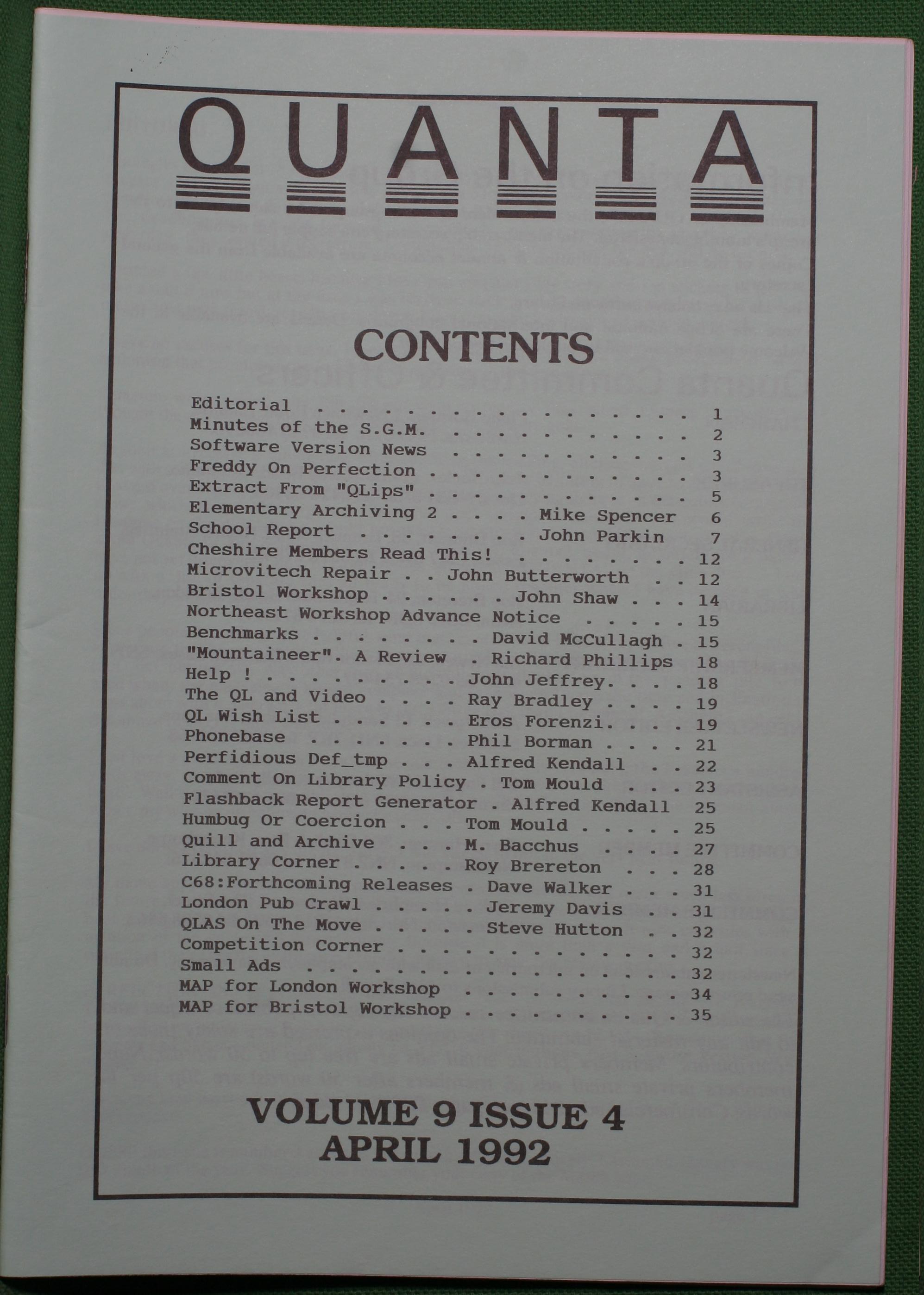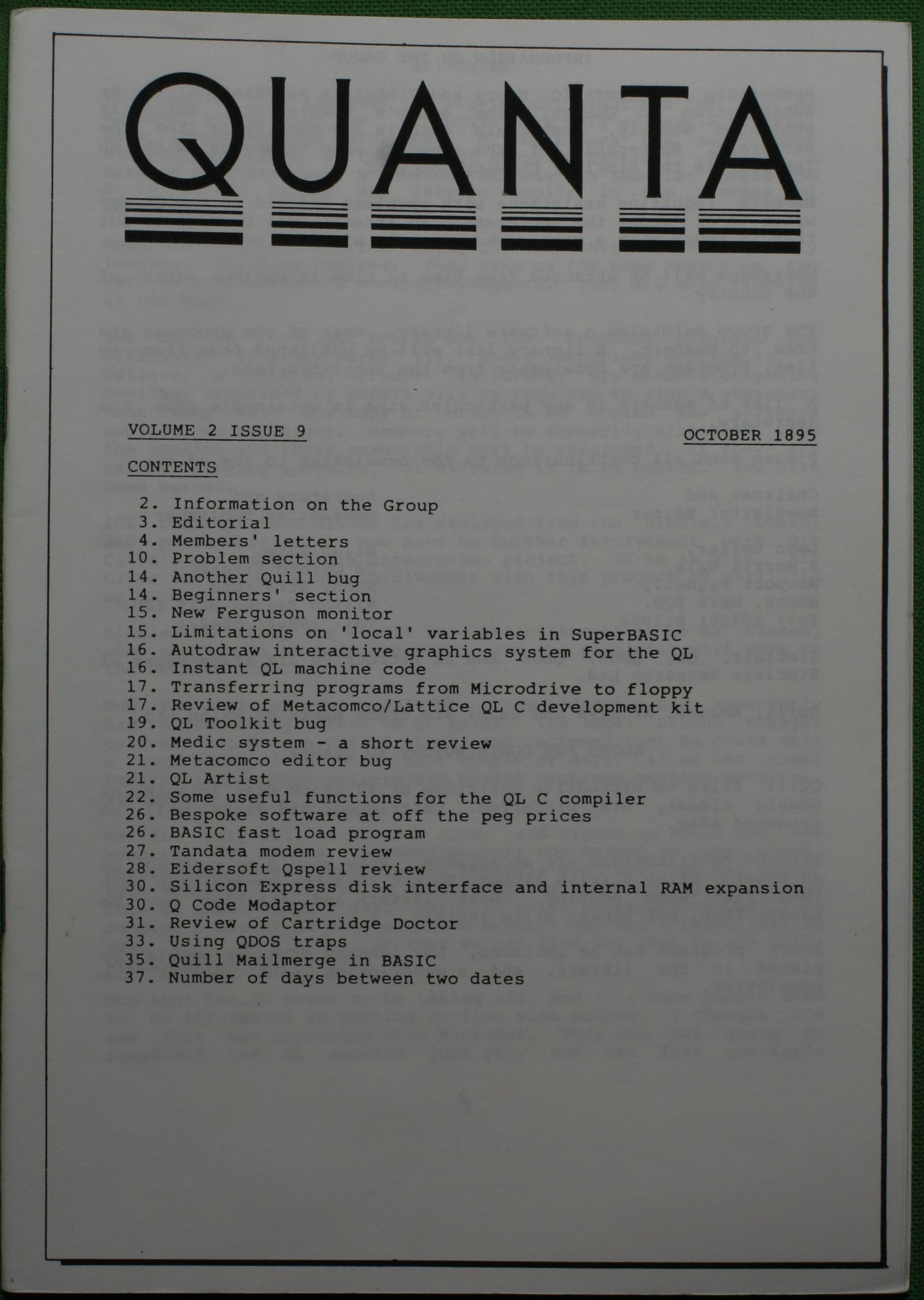 Quanta es el club de usuarios del ordenador Sinclair QL más importante del mundo. Se fundó más o menos al mismo tiempo que se comercializaba el ordenador. Tardé varios años en dicidirme en hacerme socio, pero cuando lo hice pedí todos los números atrasados de la revista. Dejé de ser socio cuando vi que mis pricipales intereses informáticos ya se habían desplazado hacia otros derroteros.