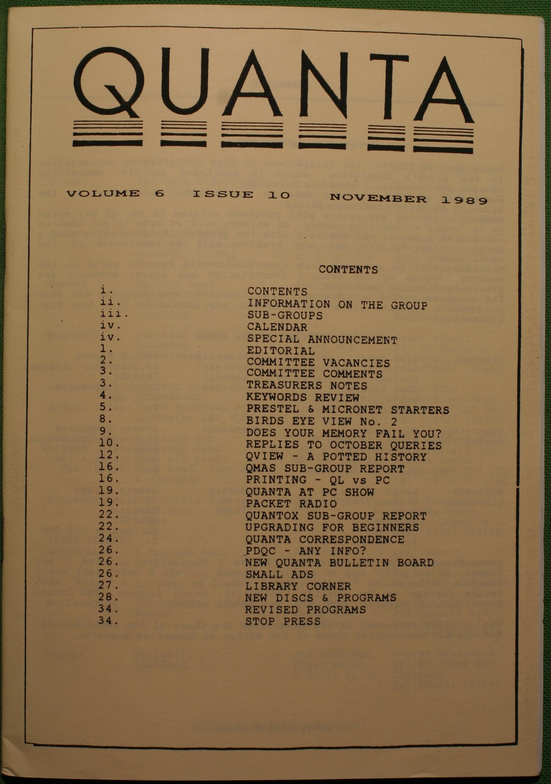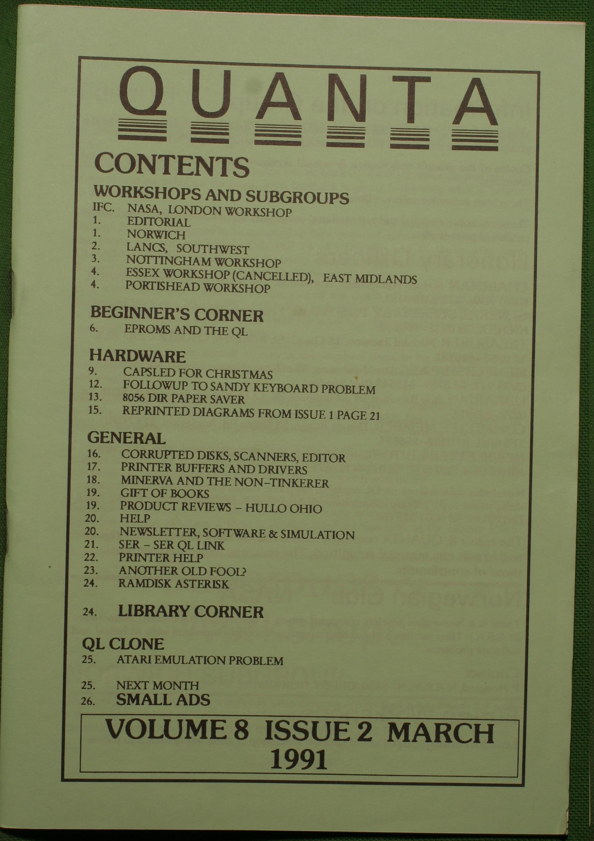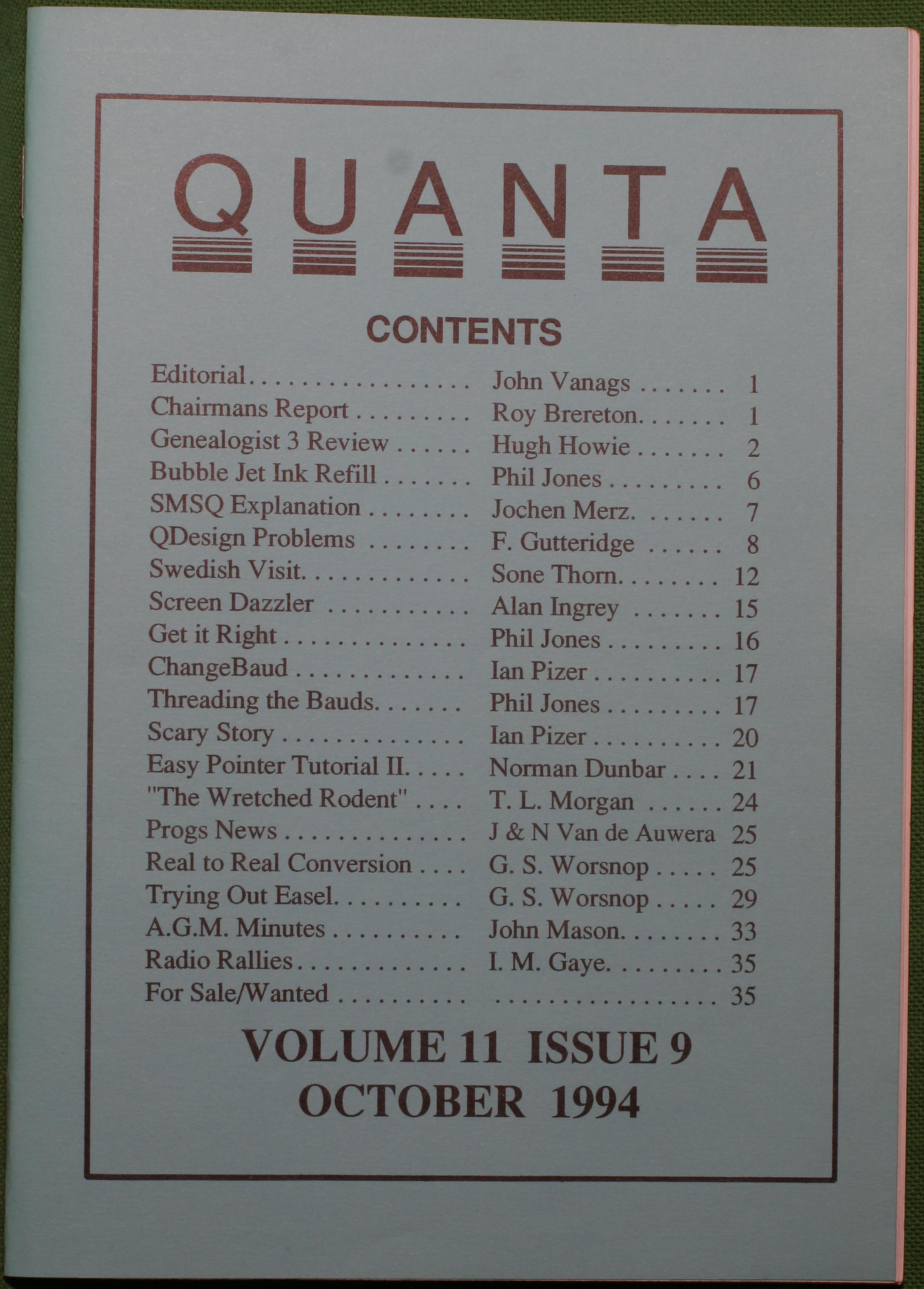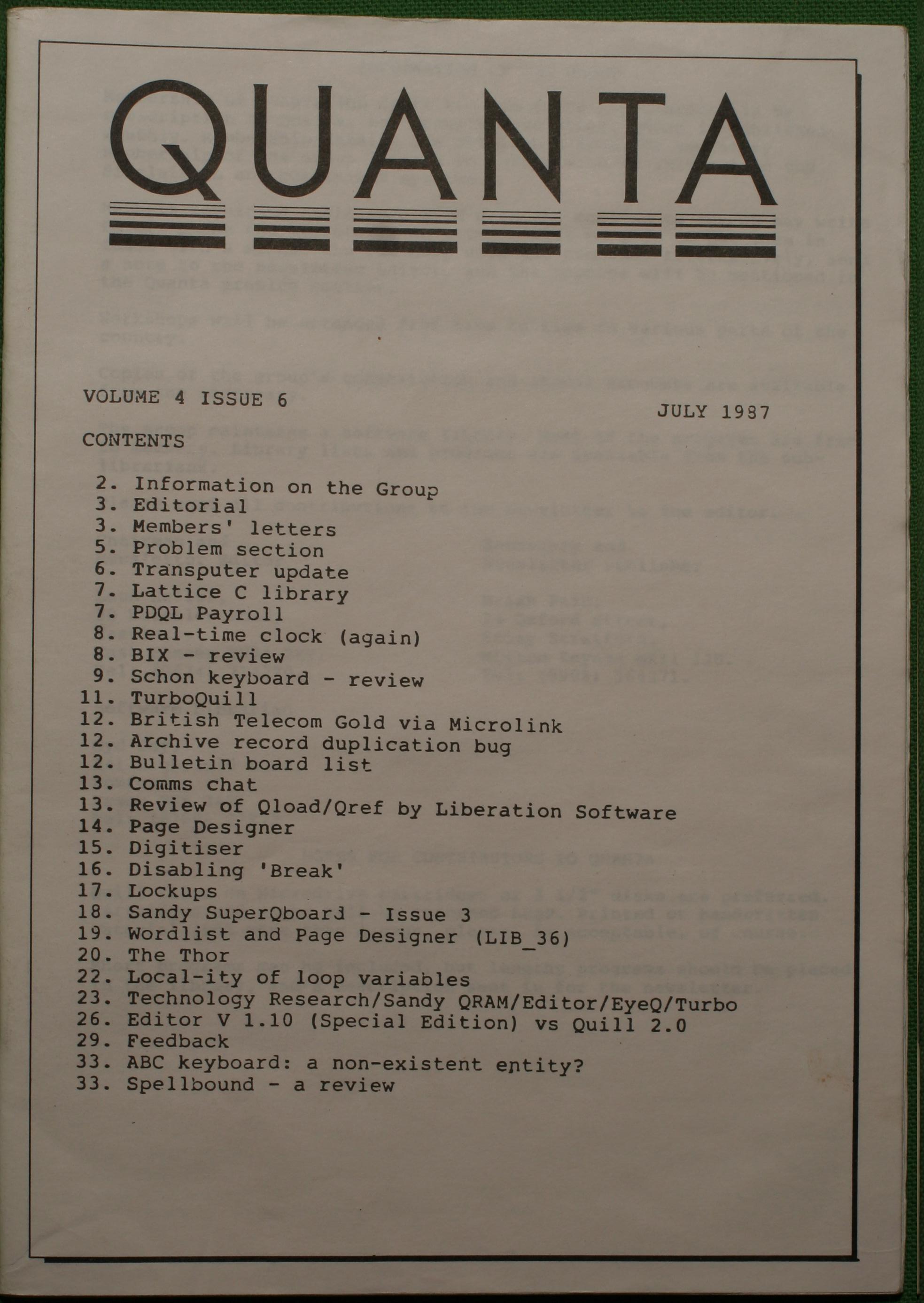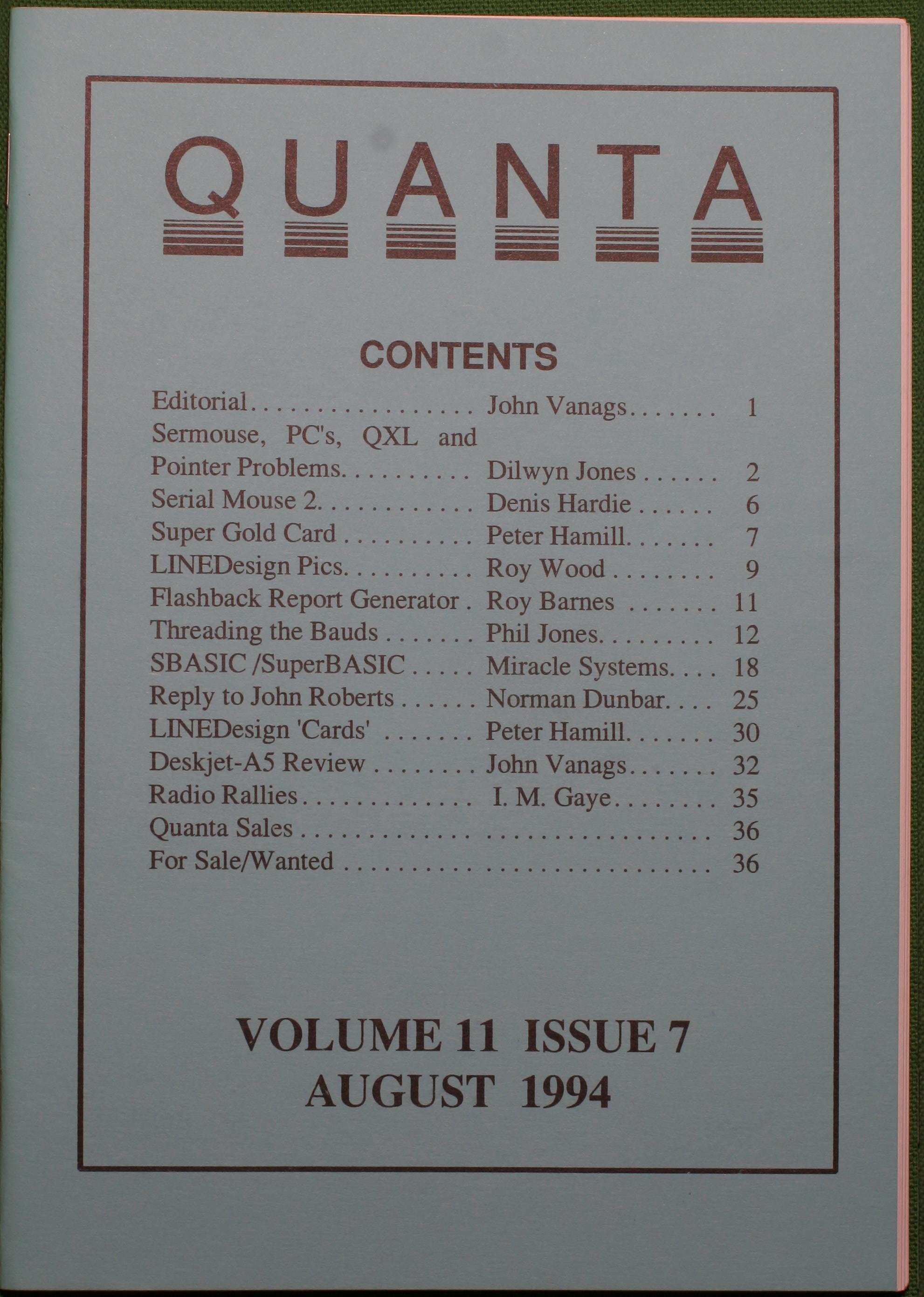 Quanta es el club de usuarios del ordenador Sinclair QL más importante del mundo. Se fundó más o menos al mismo tiempo que se comercializaba el ordenador. Tardé varios años en dicidirme en hacerme socio, pero cuando lo hice pedí todos los números atrasados de la revista. Dejé de ser socio cuando vi que mis pricipales intereses informáticos ya se habían desplazado hacia otros derroteros.