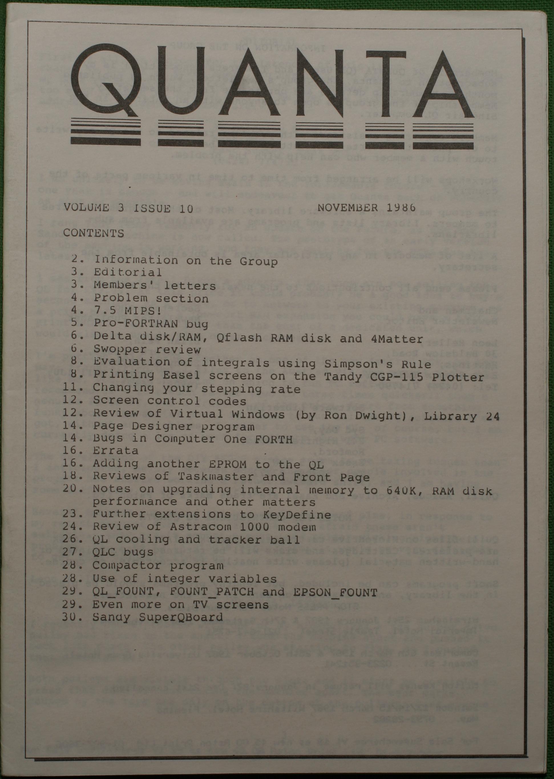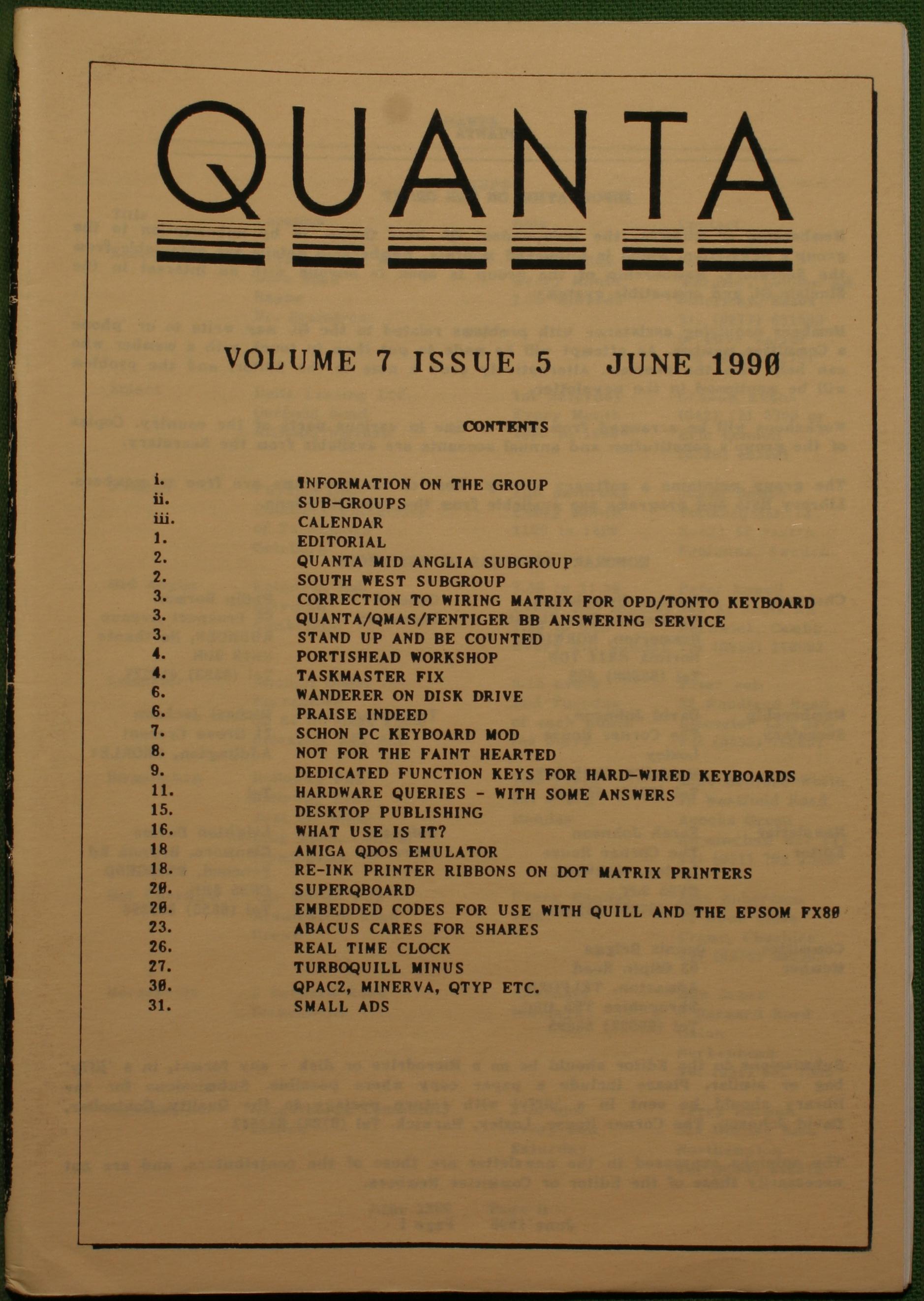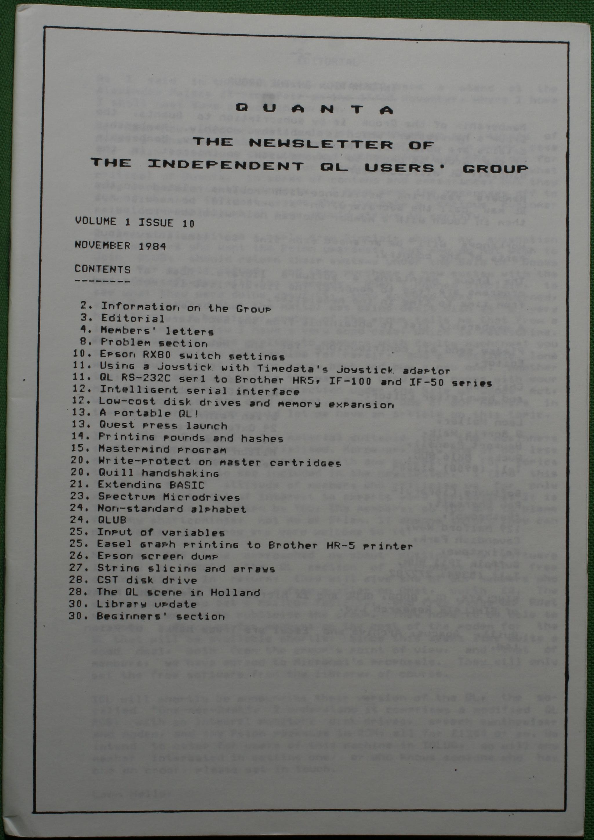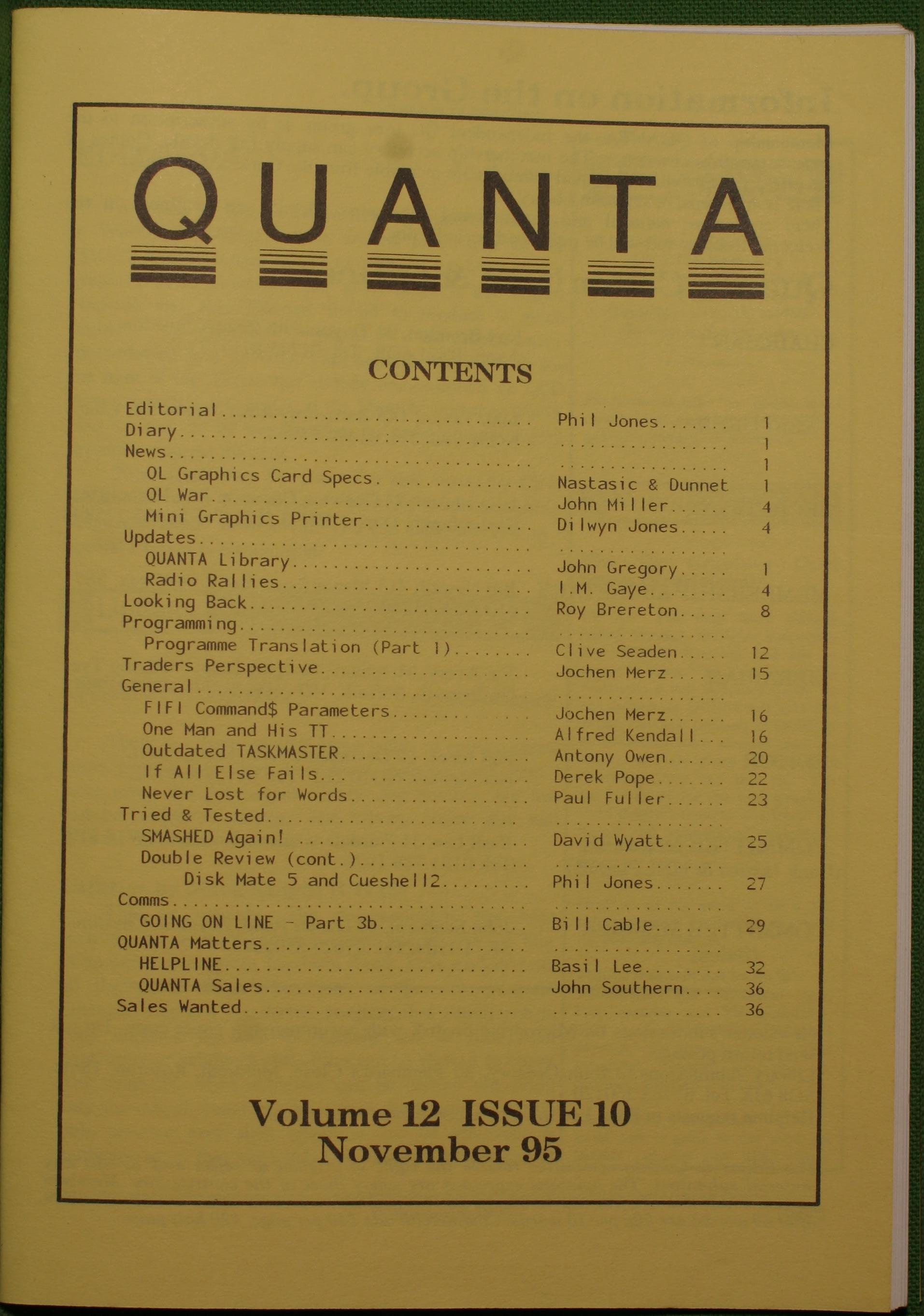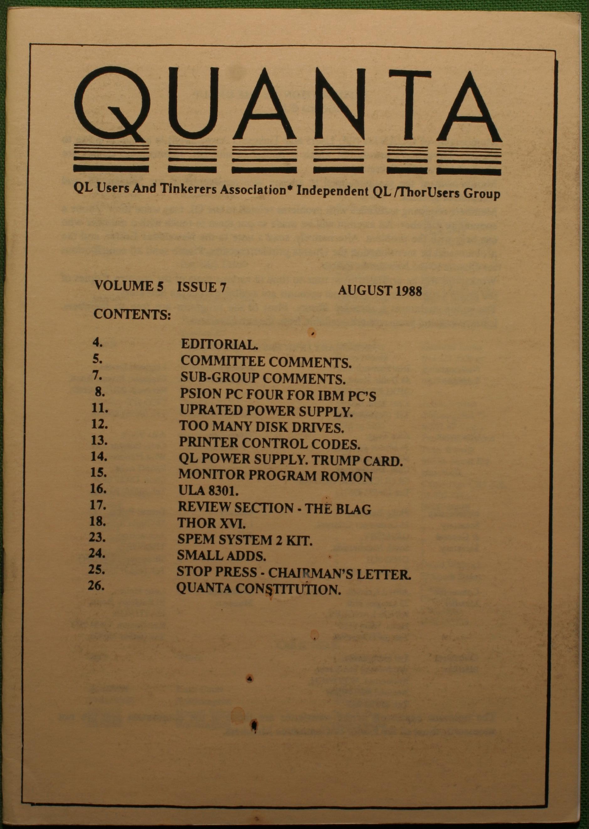 Quanta es el club de usuarios del ordenador Sinclair QL más importante del mundo. Se fundó más o menos al mismo tiempo que se comercializaba el ordenador. Tardé varios años en dicidirme en hacerme socio, pero cuando lo hice pedí todos los números atrasados de la revista. Dejé de ser socio cuando vi que mis pricipales intereses informáticos ya se habían desplazado hacia otros derroteros.