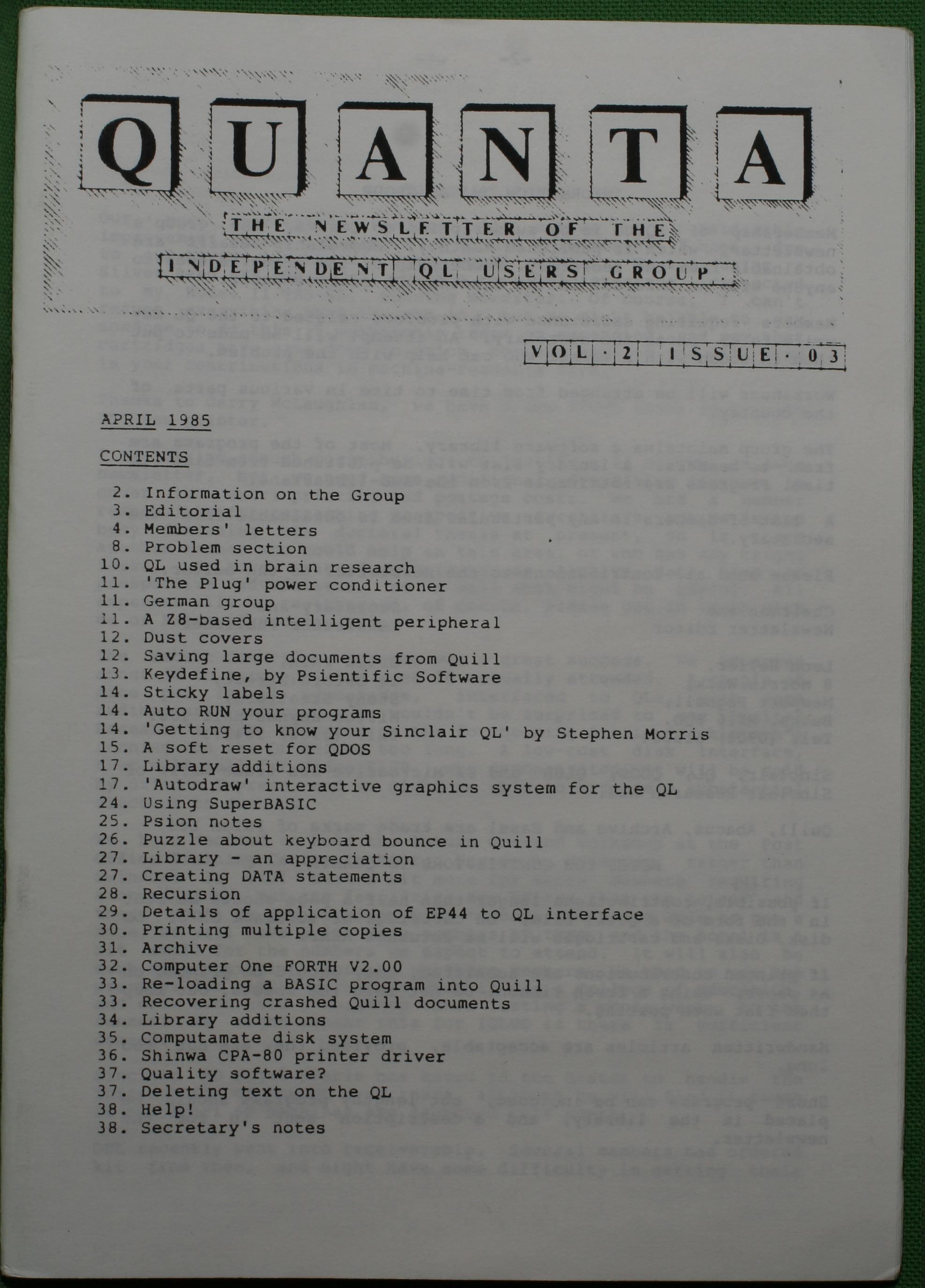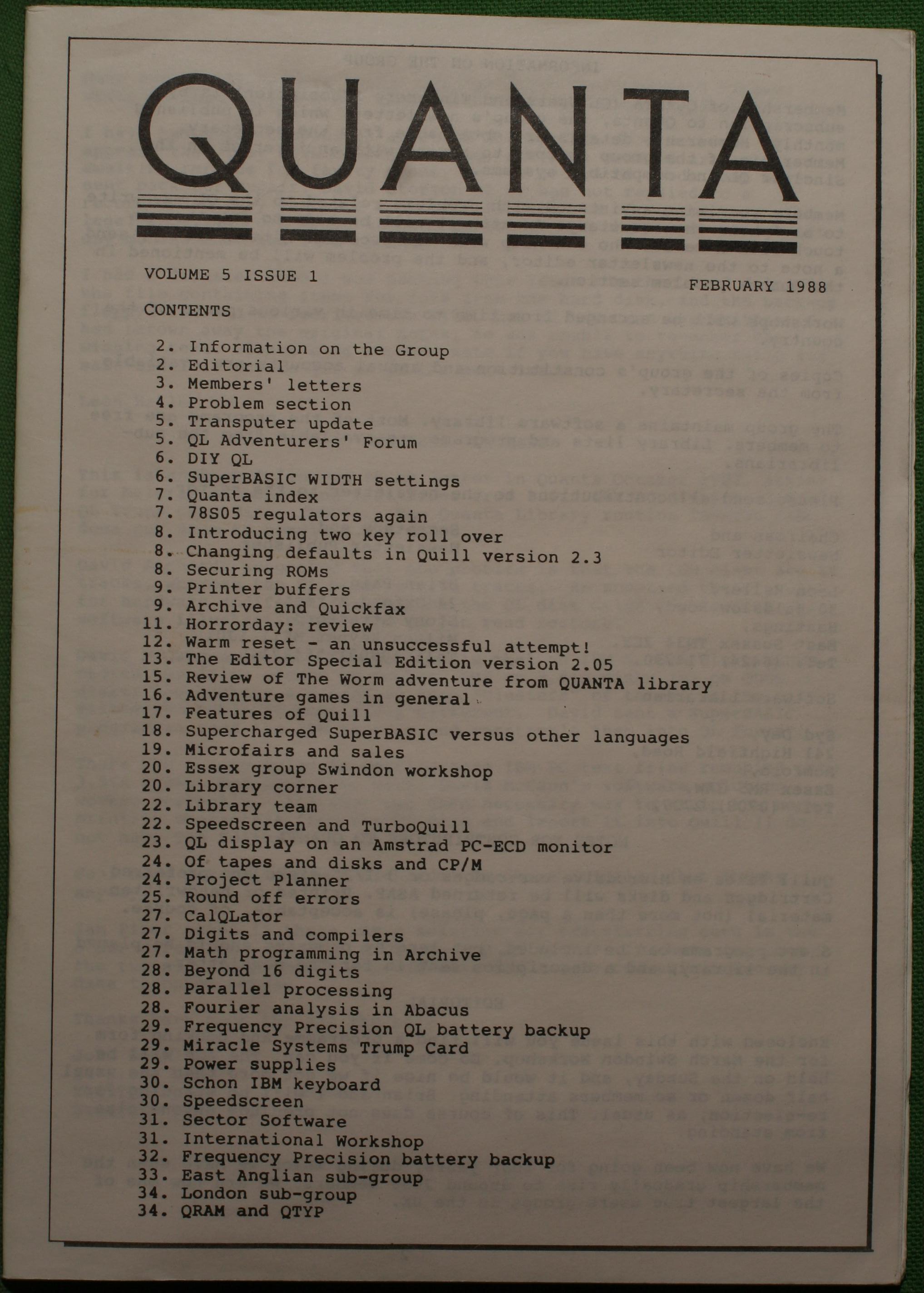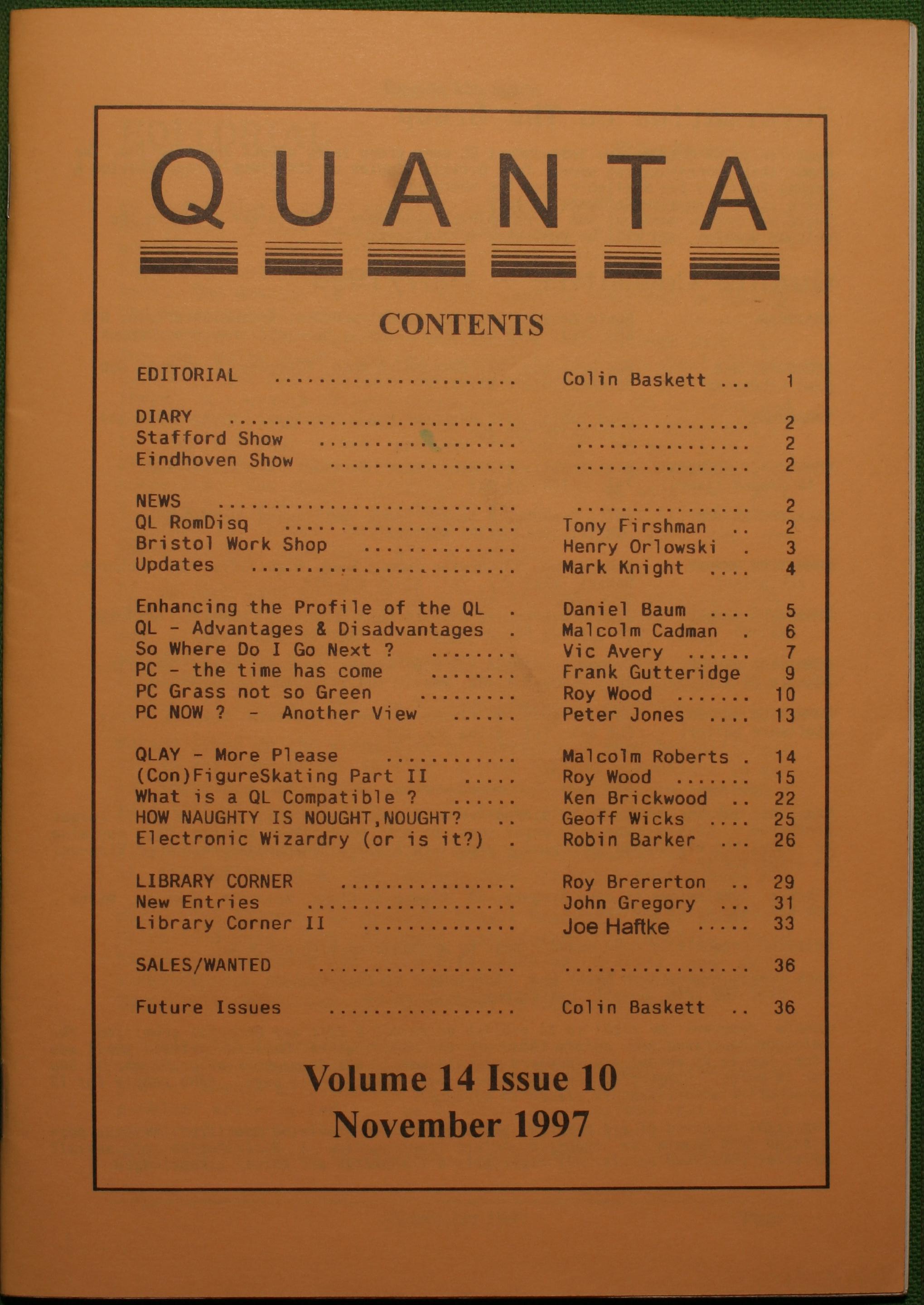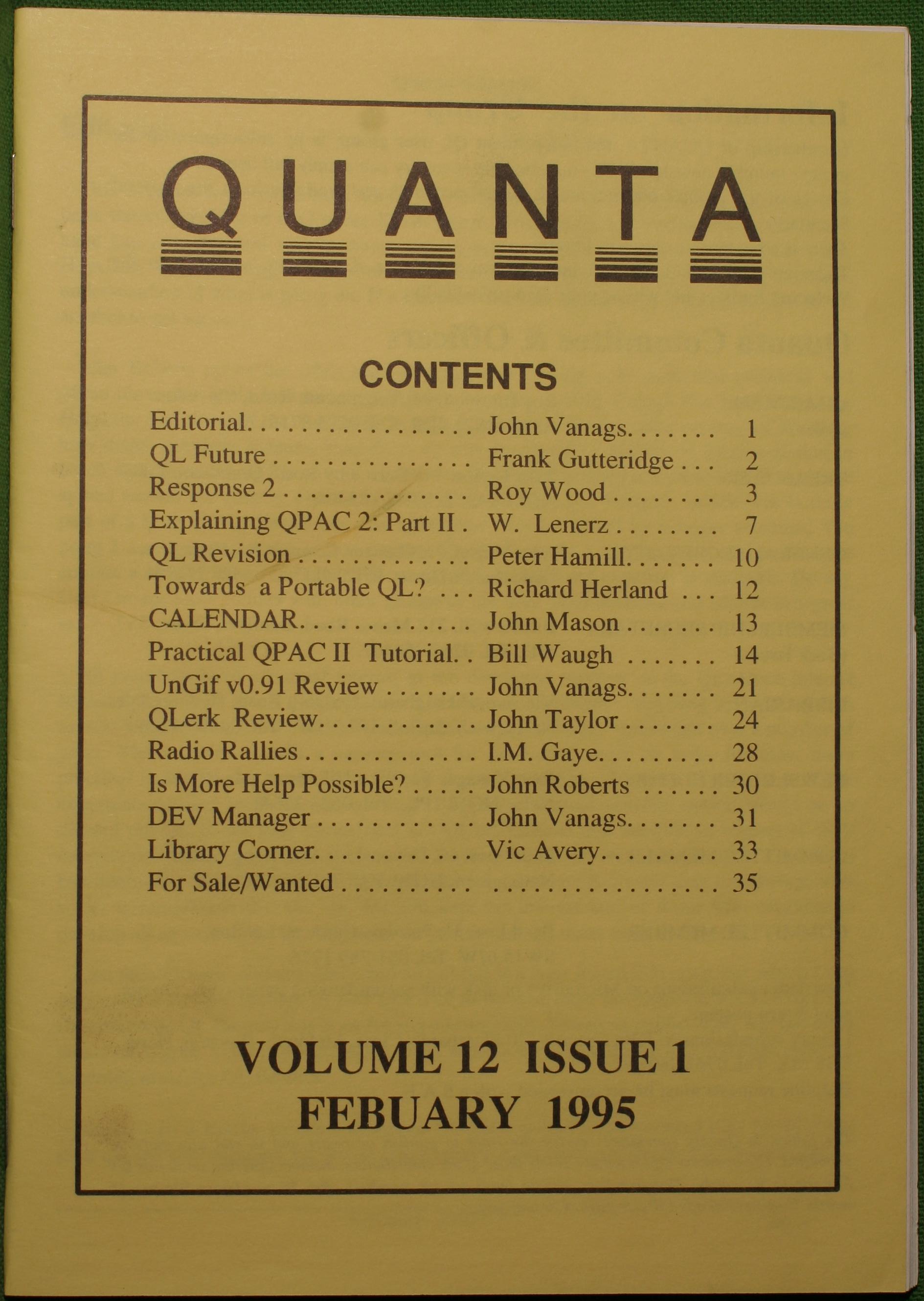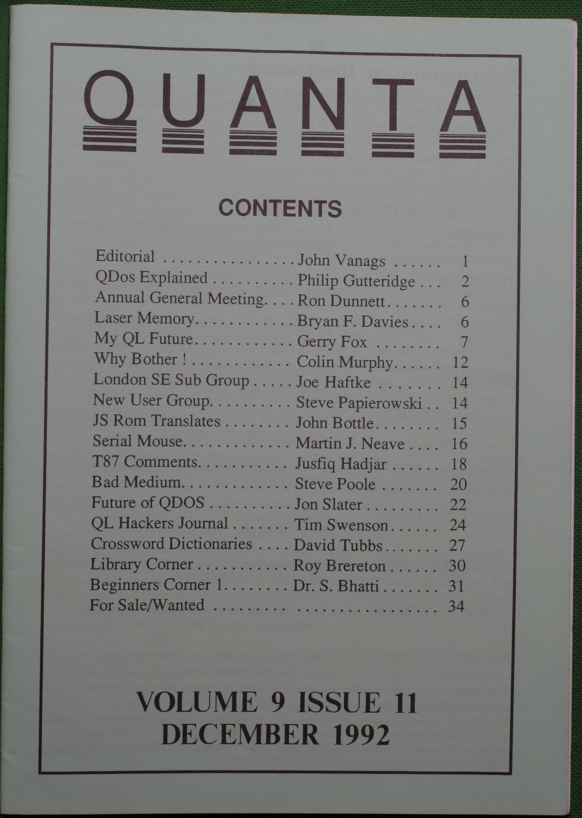 Quanta es el club de usuarios del ordenador Sinclair QL más importante del mundo. Se fundó más o menos al mismo tiempo que se comercializaba el ordenador. Tardé varios años en dicidirme en hacerme socio, pero cuando lo hice pedí todos los números atrasados de la revista. Dejé de ser socio cuando vi que mis pricipales intereses informáticos ya se habían desplazado hacia otros derroteros.