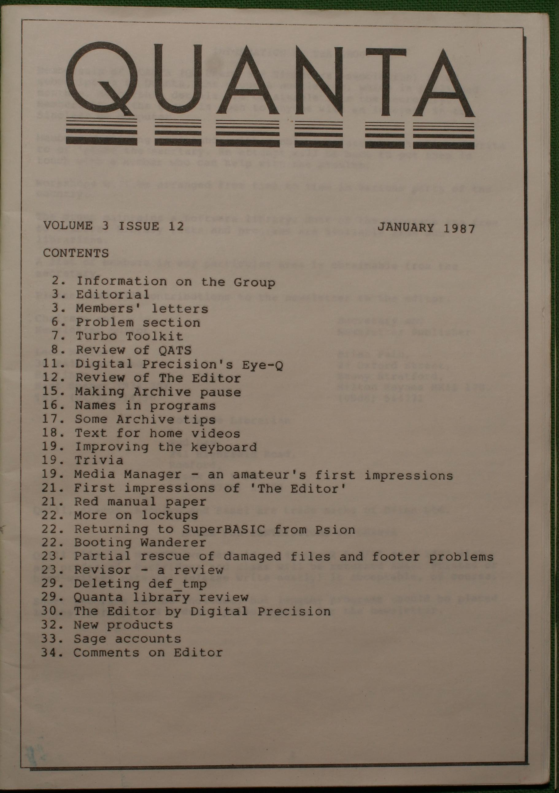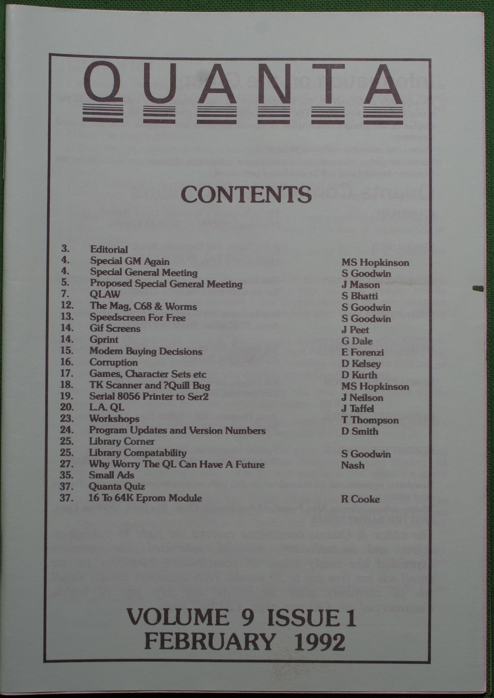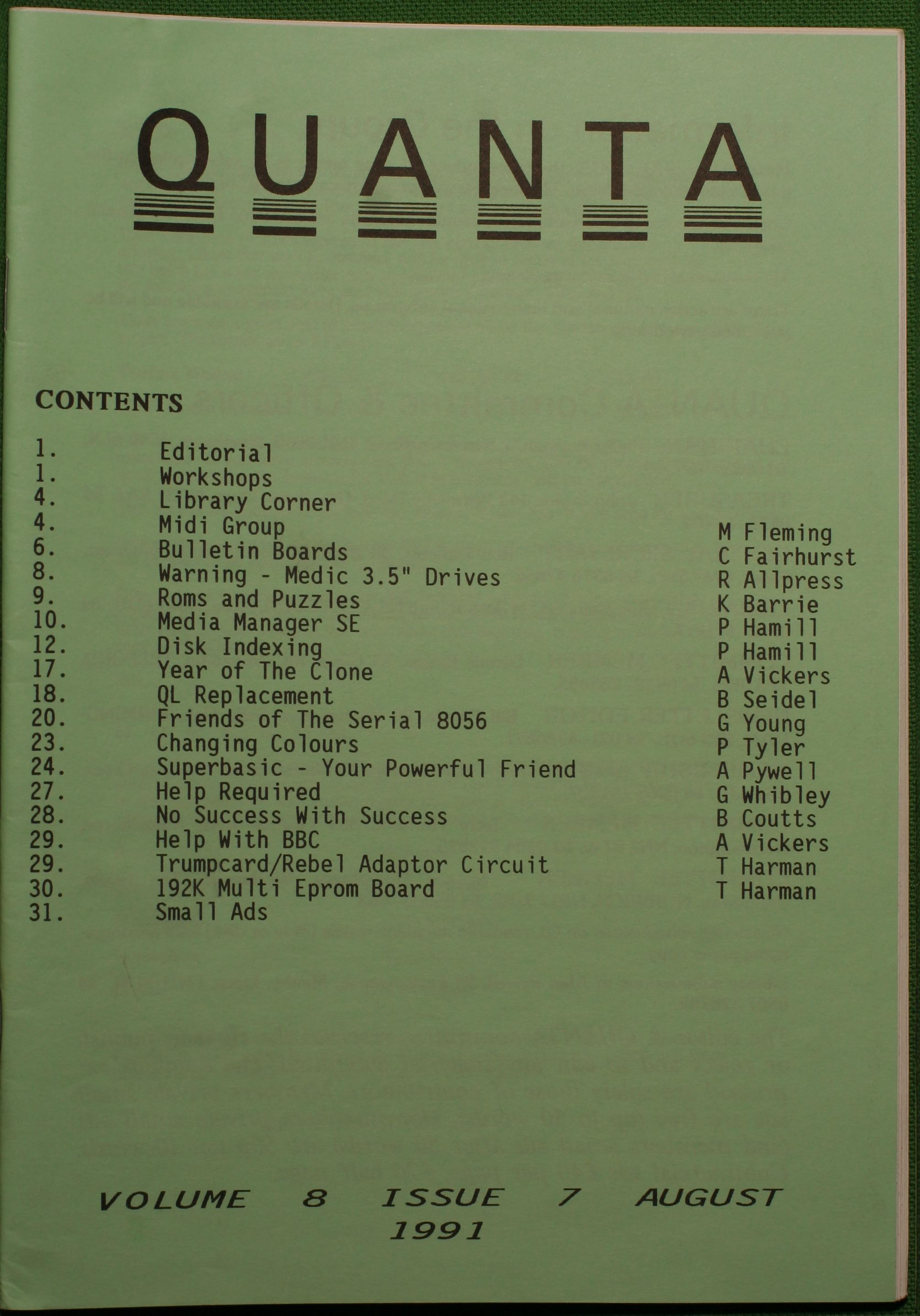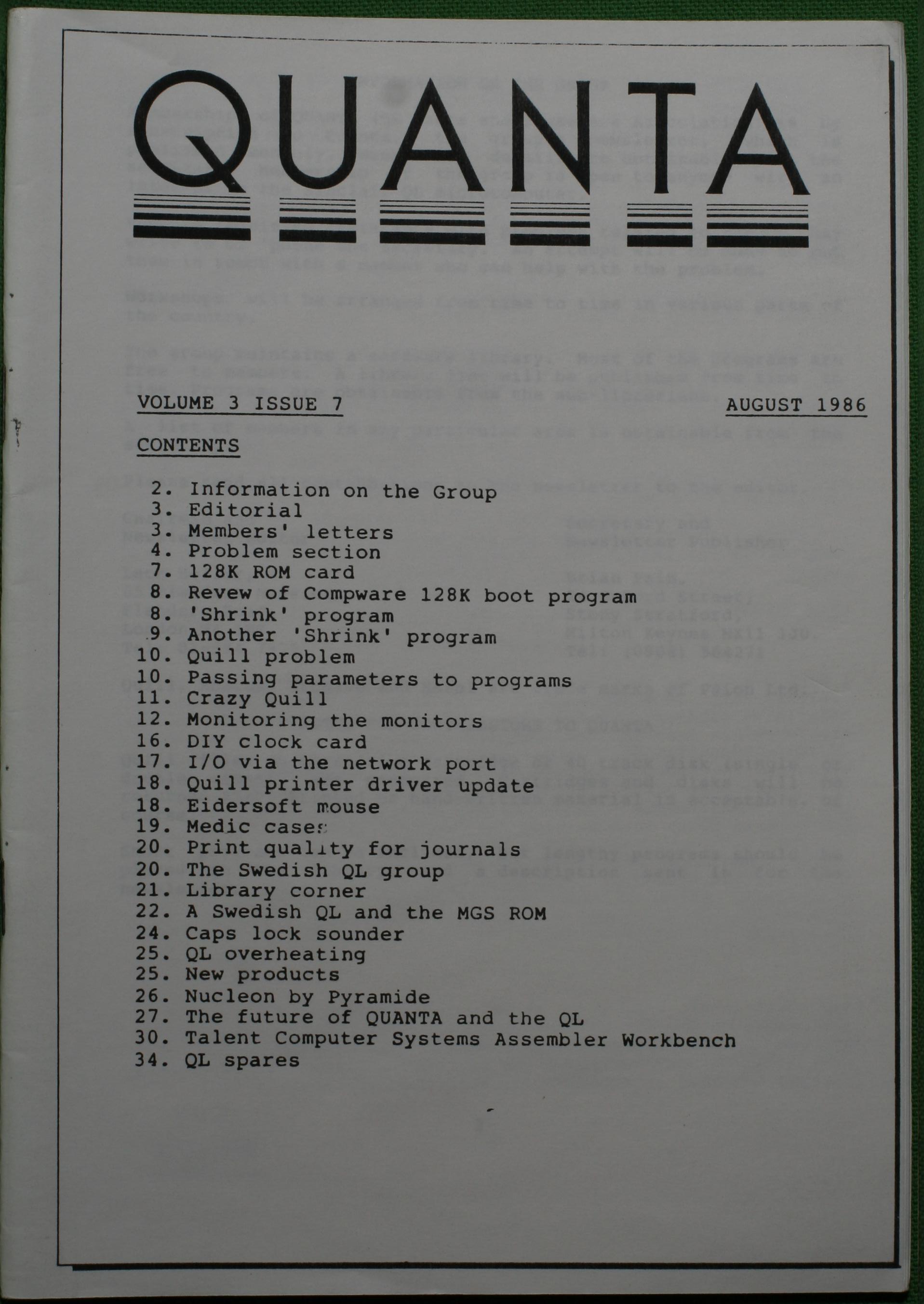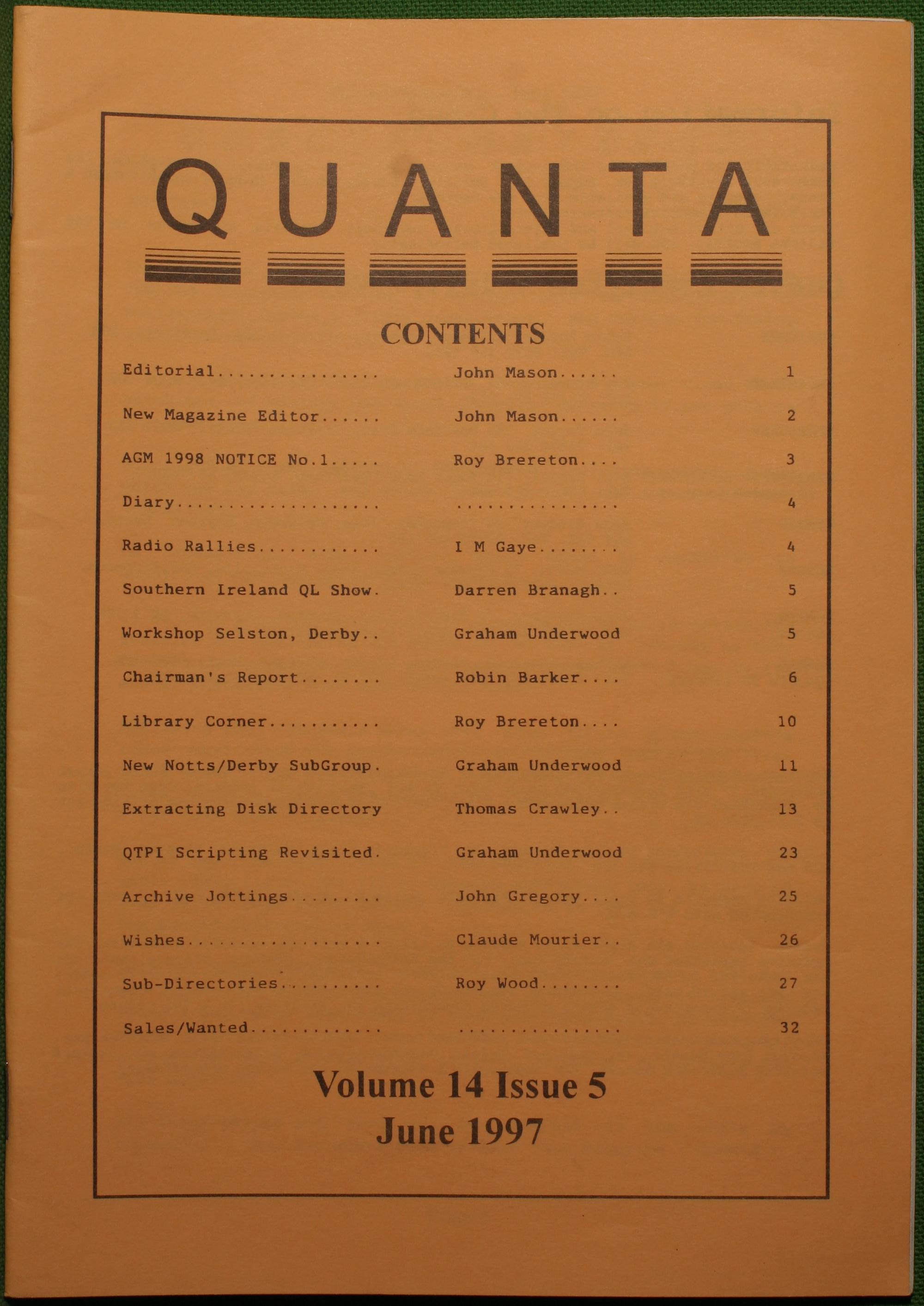 Quanta es el club de usuarios del ordenador Sinclair QL más importante del mundo. Se fundó más o menos al mismo tiempo que se comercializaba el ordenador. Tardé varios años en dicidirme en hacerme socio, pero cuando lo hice pedí todos los números atrasados de la revista. Dejé de ser socio cuando vi que mis pricipales intereses informáticos ya se habían desplazado hacia otros derroteros.