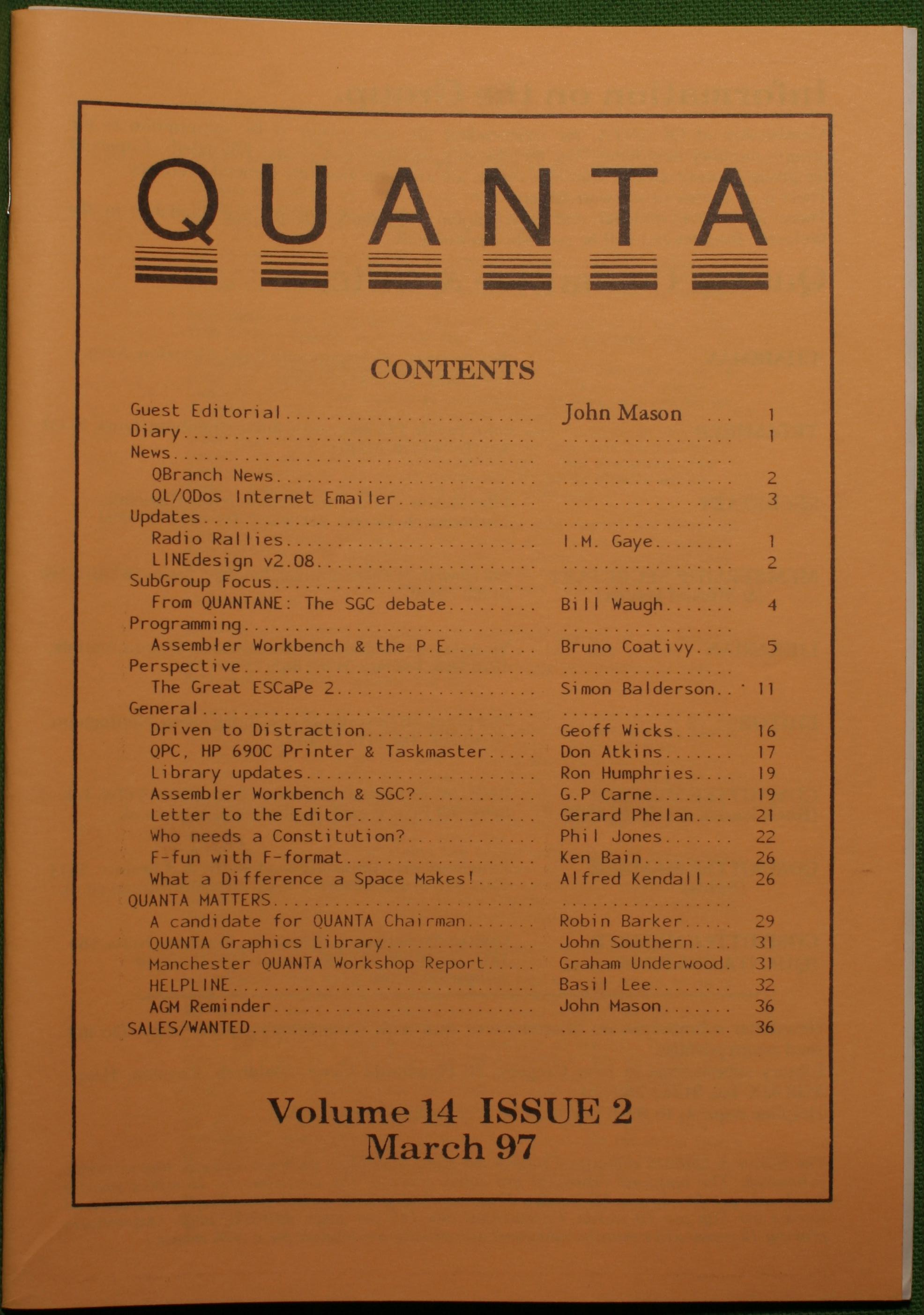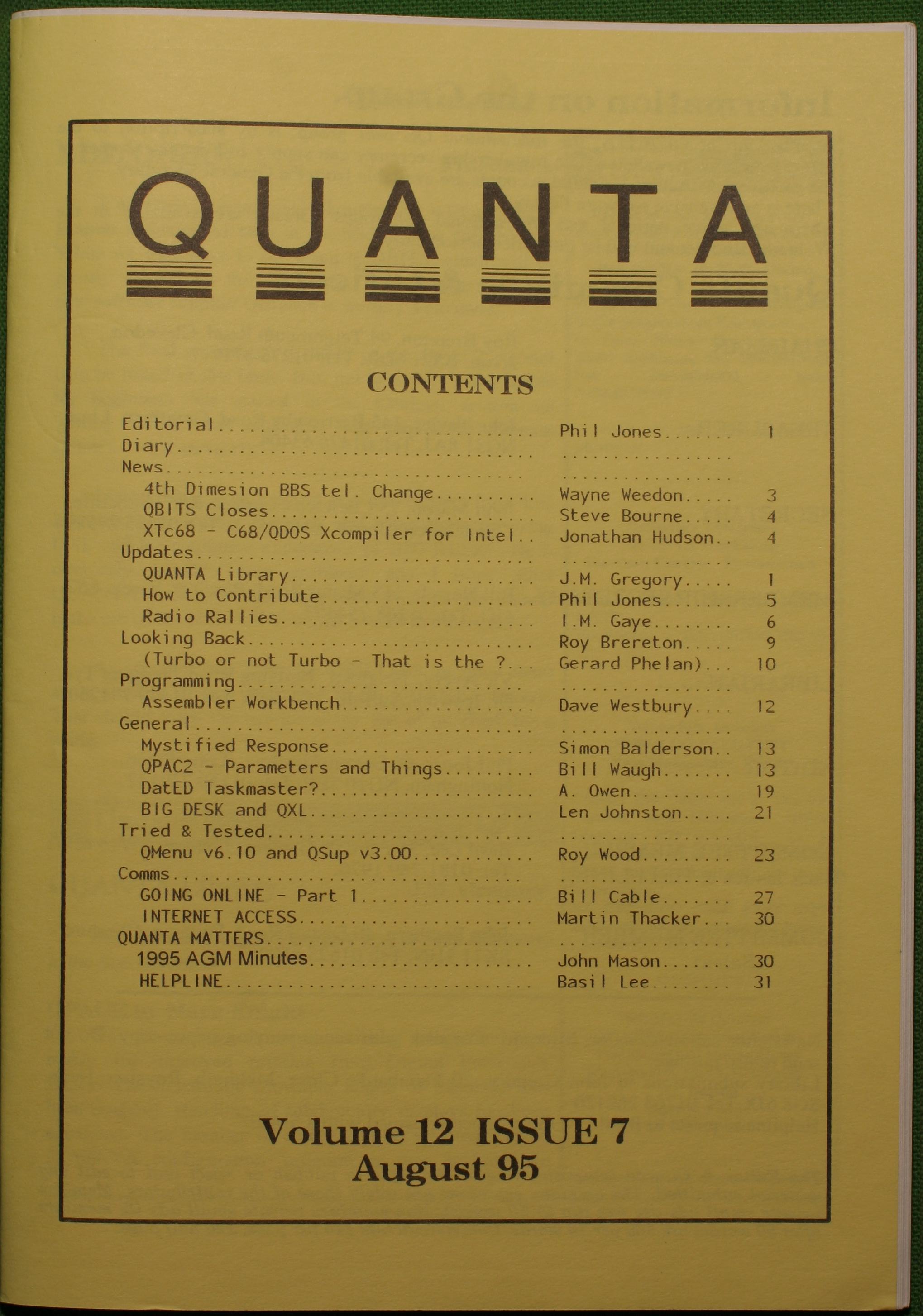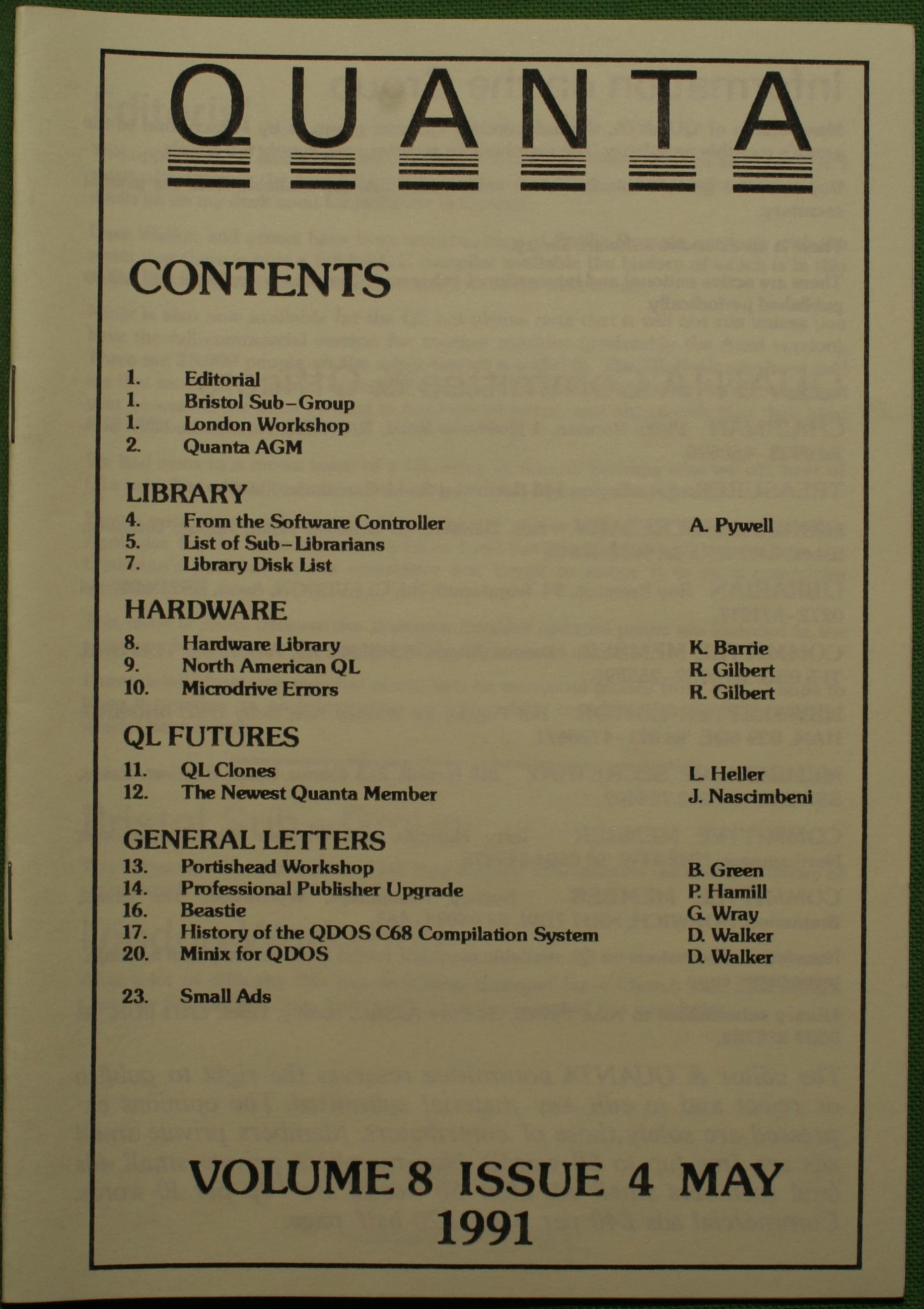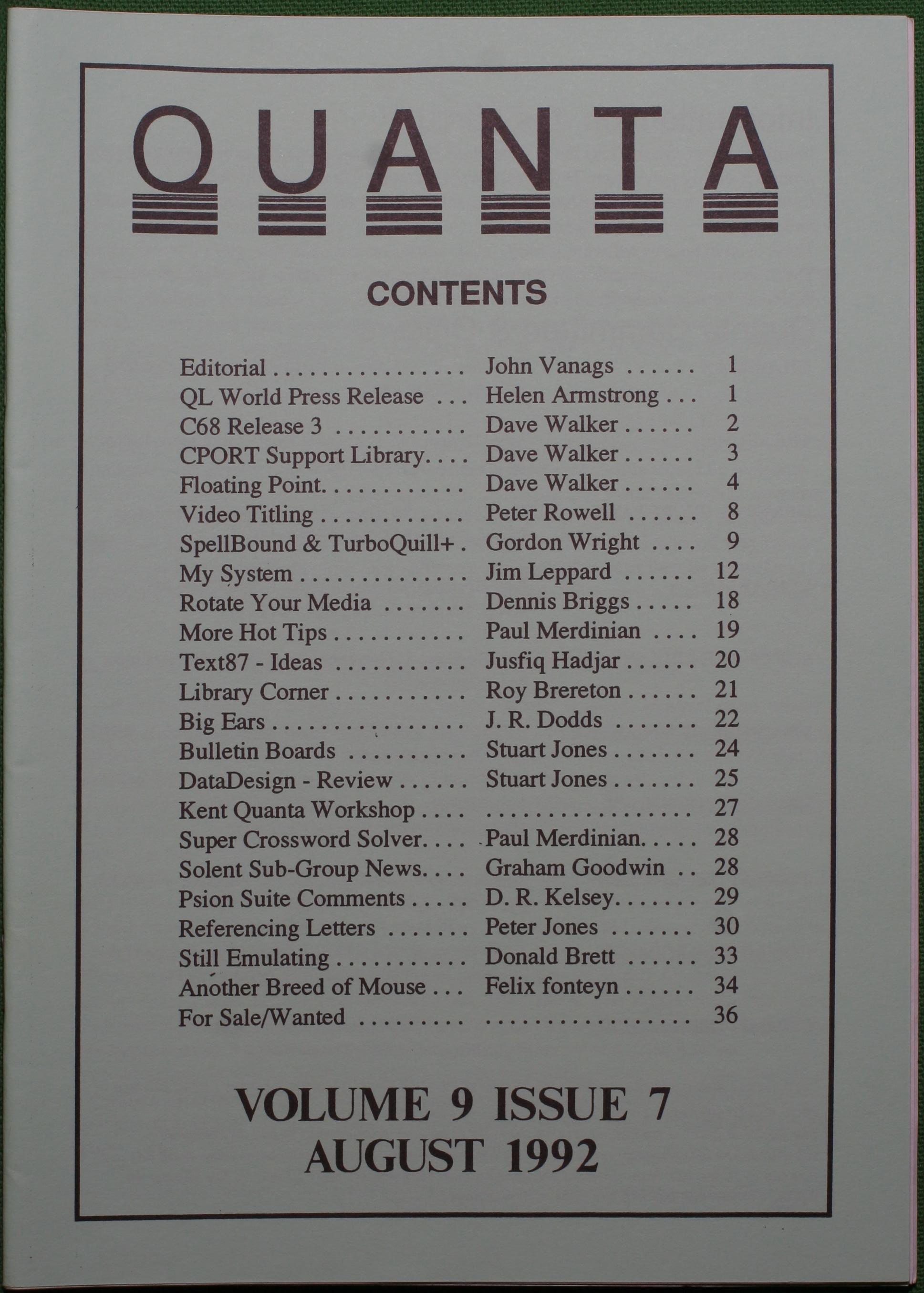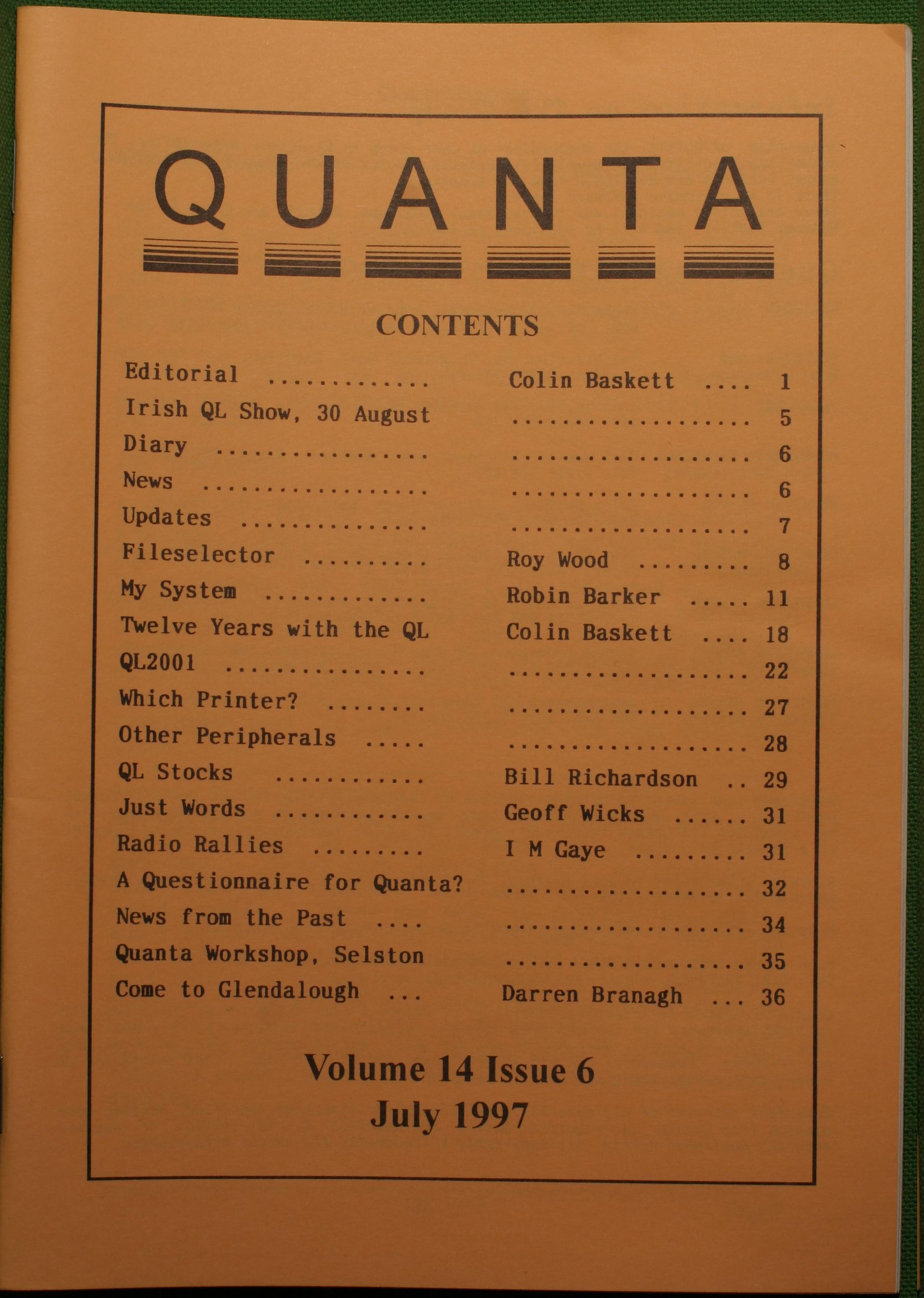 Quanta es el club de usuarios del ordenador Sinclair QL más importante del mundo. Se fundó más o menos al mismo tiempo que se comercializaba el ordenador. Tardé varios años en dicidirme en hacerme socio, pero cuando lo hice pedí todos los números atrasados de la revista. Dejé de ser socio cuando vi que mis pricipales intereses informáticos ya se habían desplazado hacia otros derroteros.