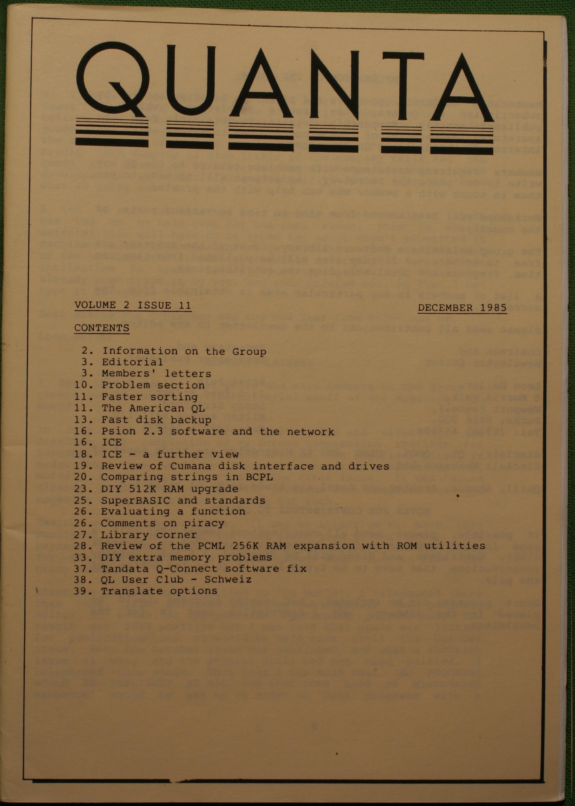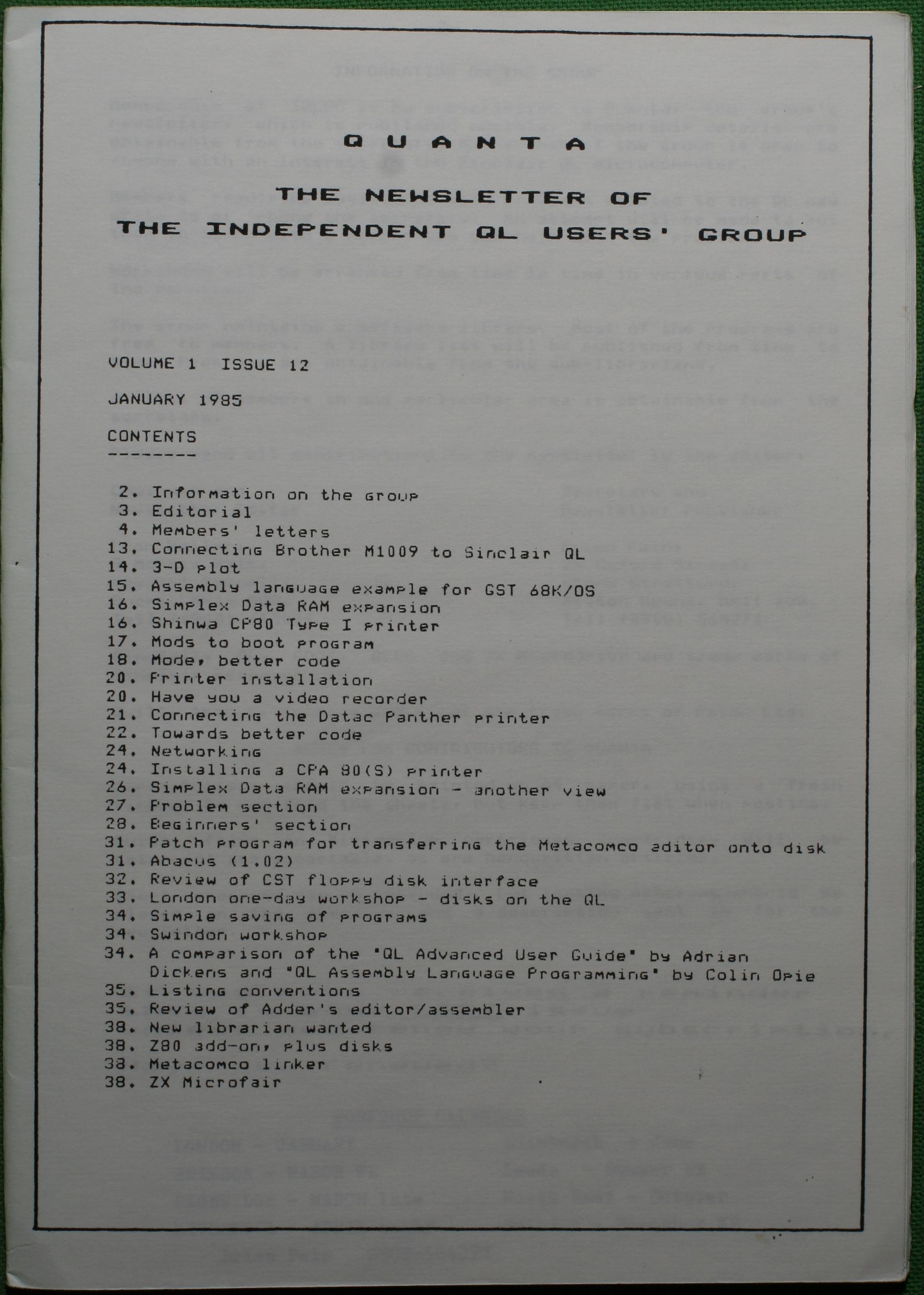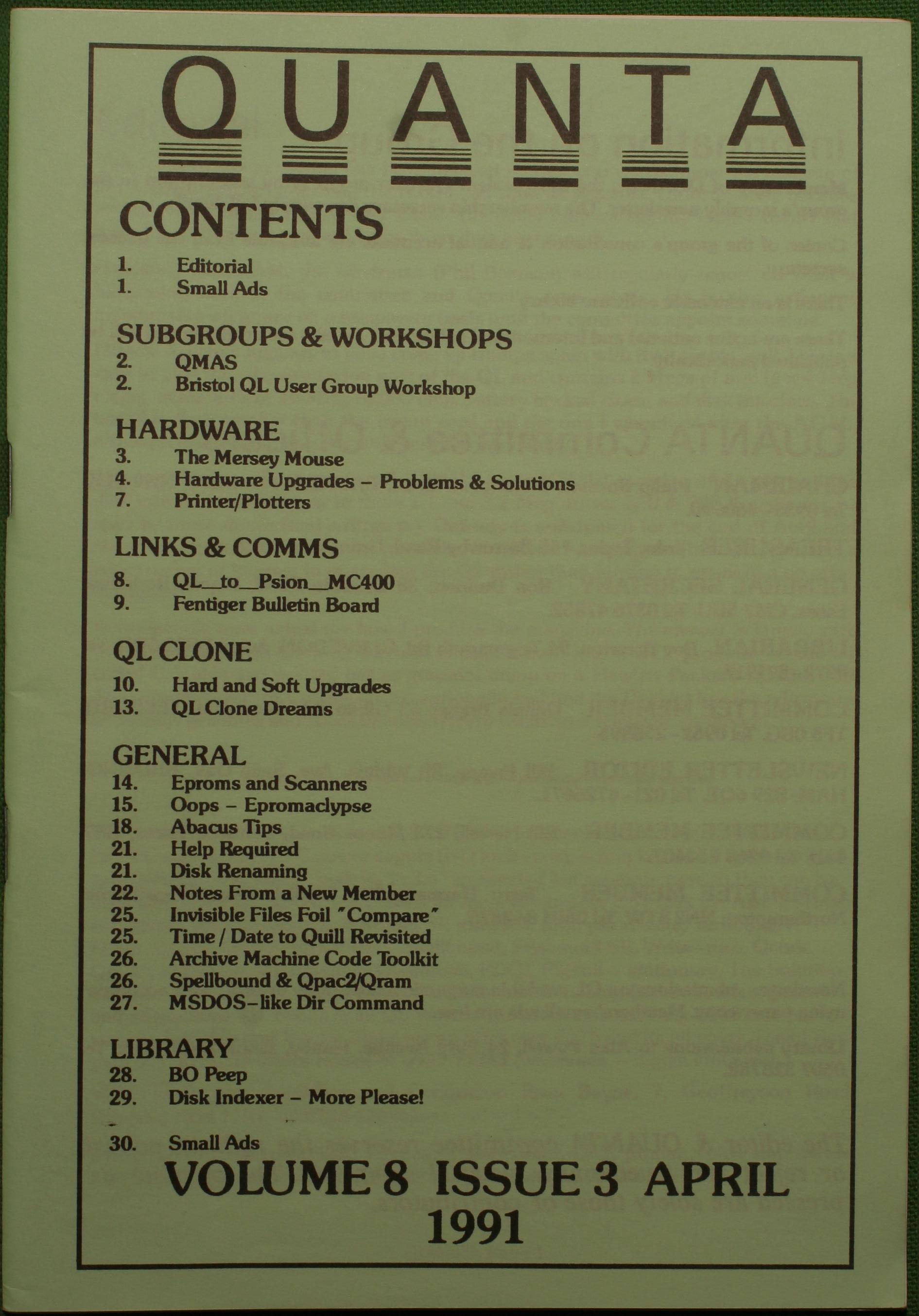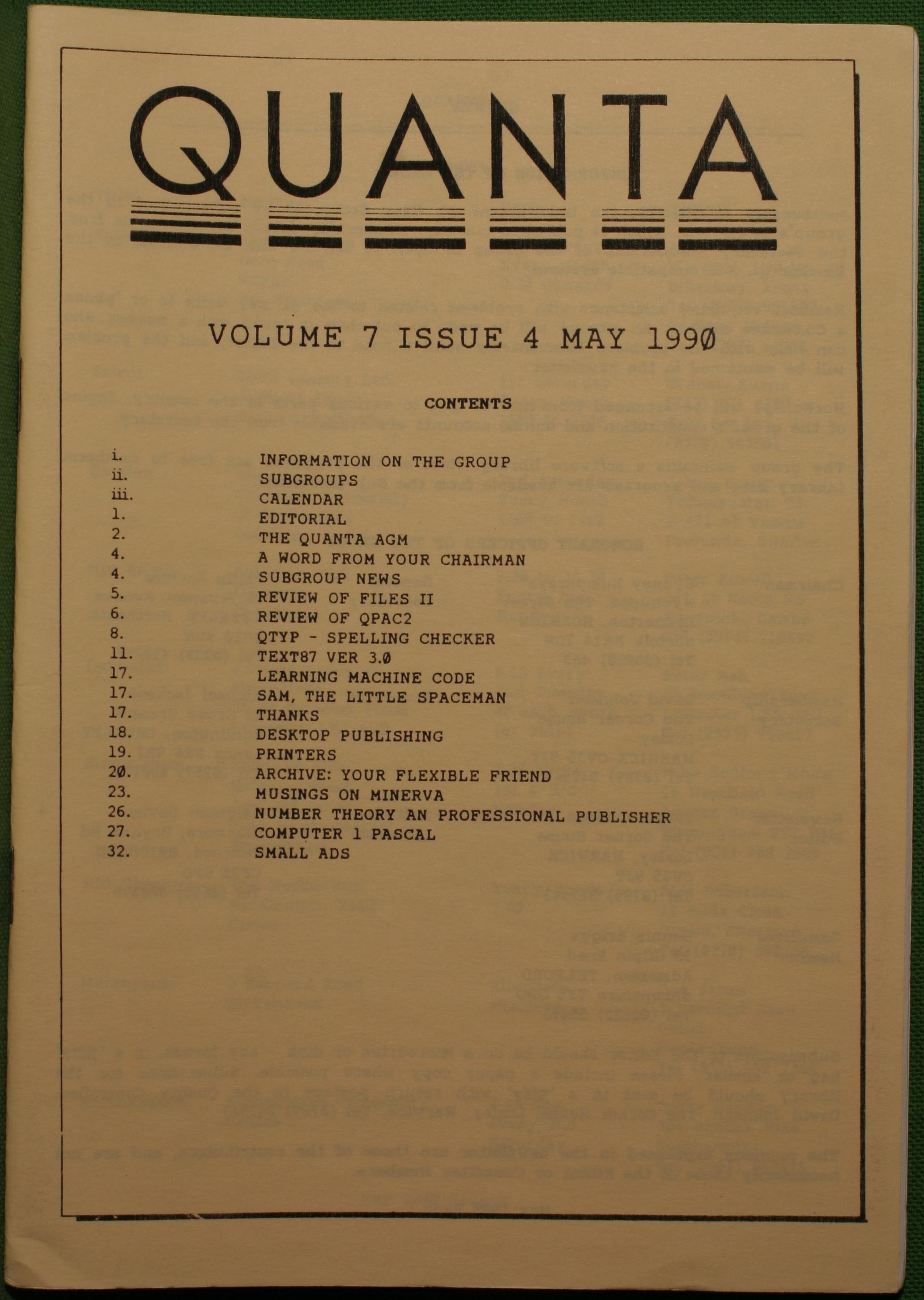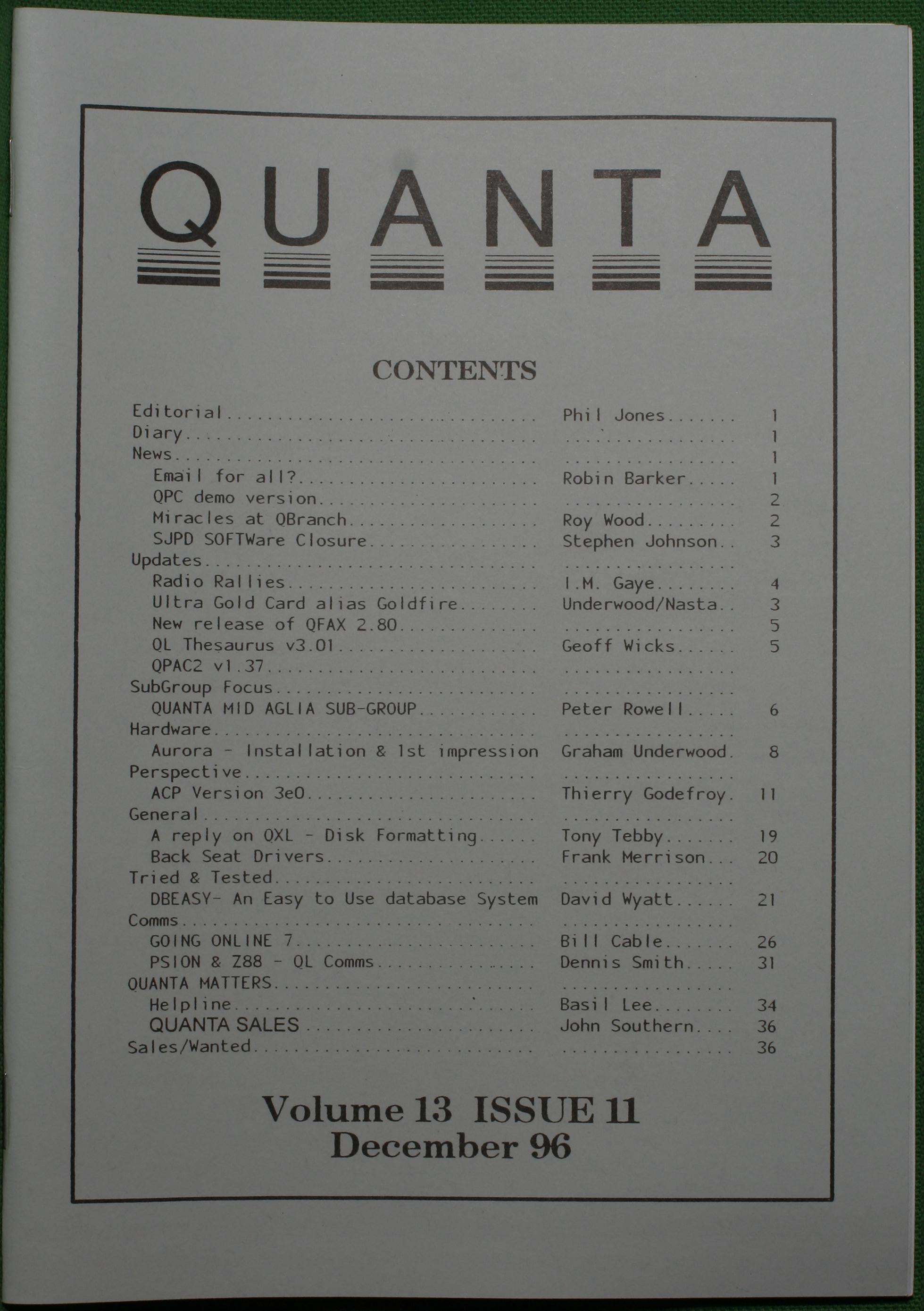 Quanta es el club de usuarios del ordenador Sinclair QL más importante del mundo. Se fundó más o menos al mismo tiempo que se comercializaba el ordenador. Tardé varios años en dicidirme en hacerme socio, pero cuando lo hice pedí todos los números atrasados de la revista. Dejé de ser socio cuando vi que mis pricipales intereses informáticos ya se habían desplazado hacia otros derroteros.