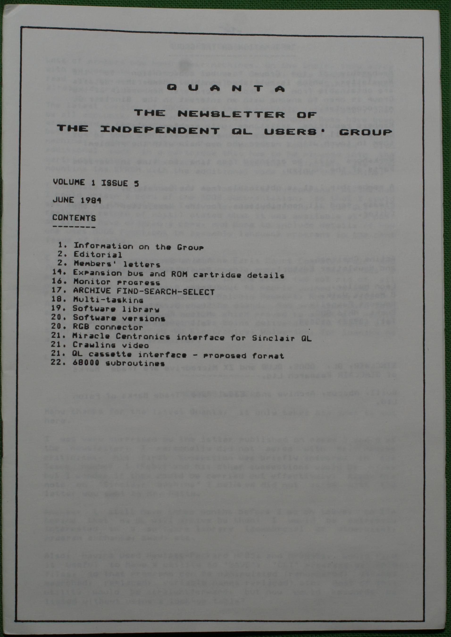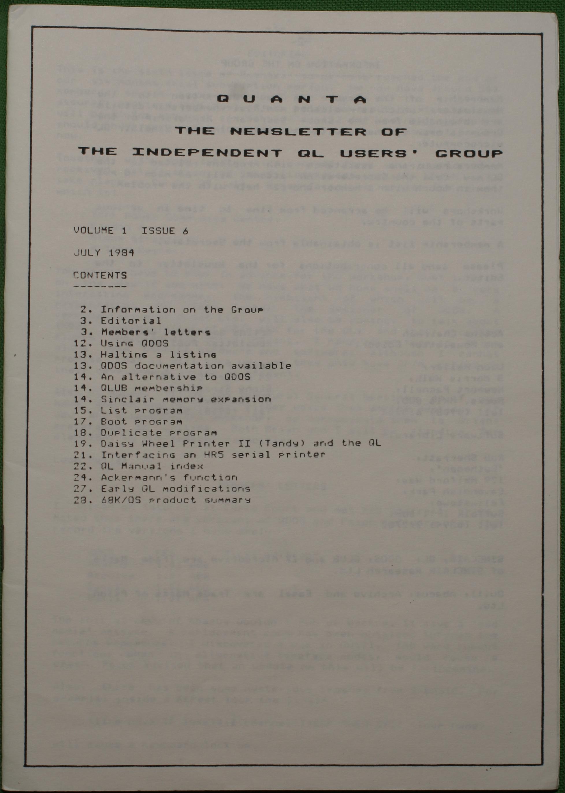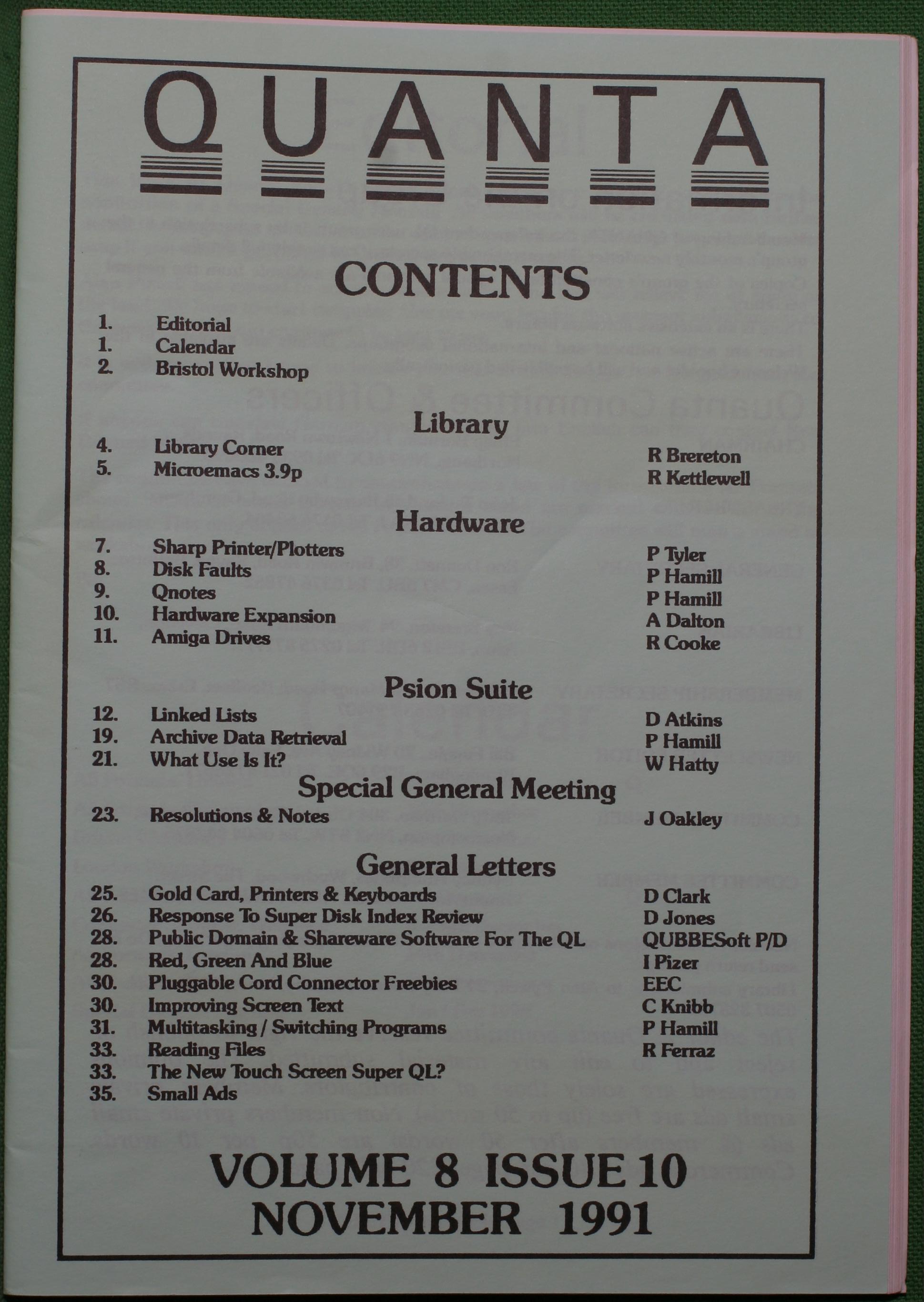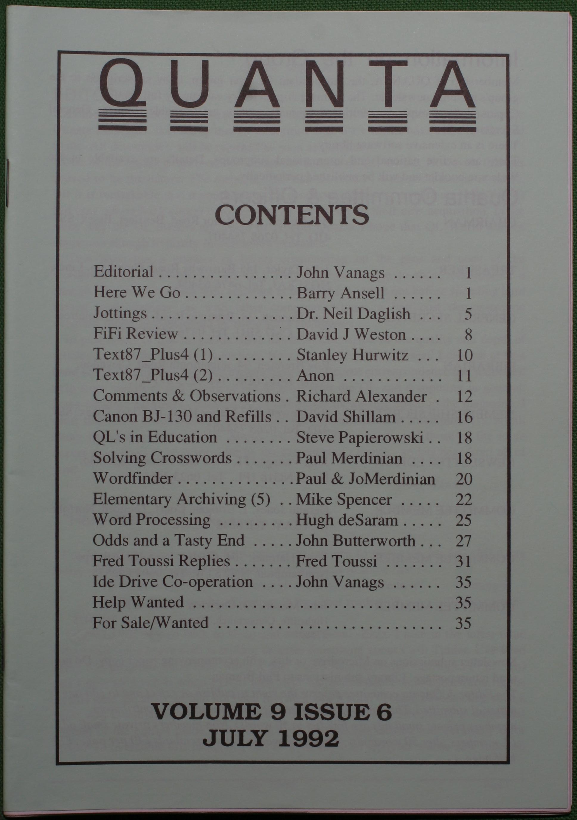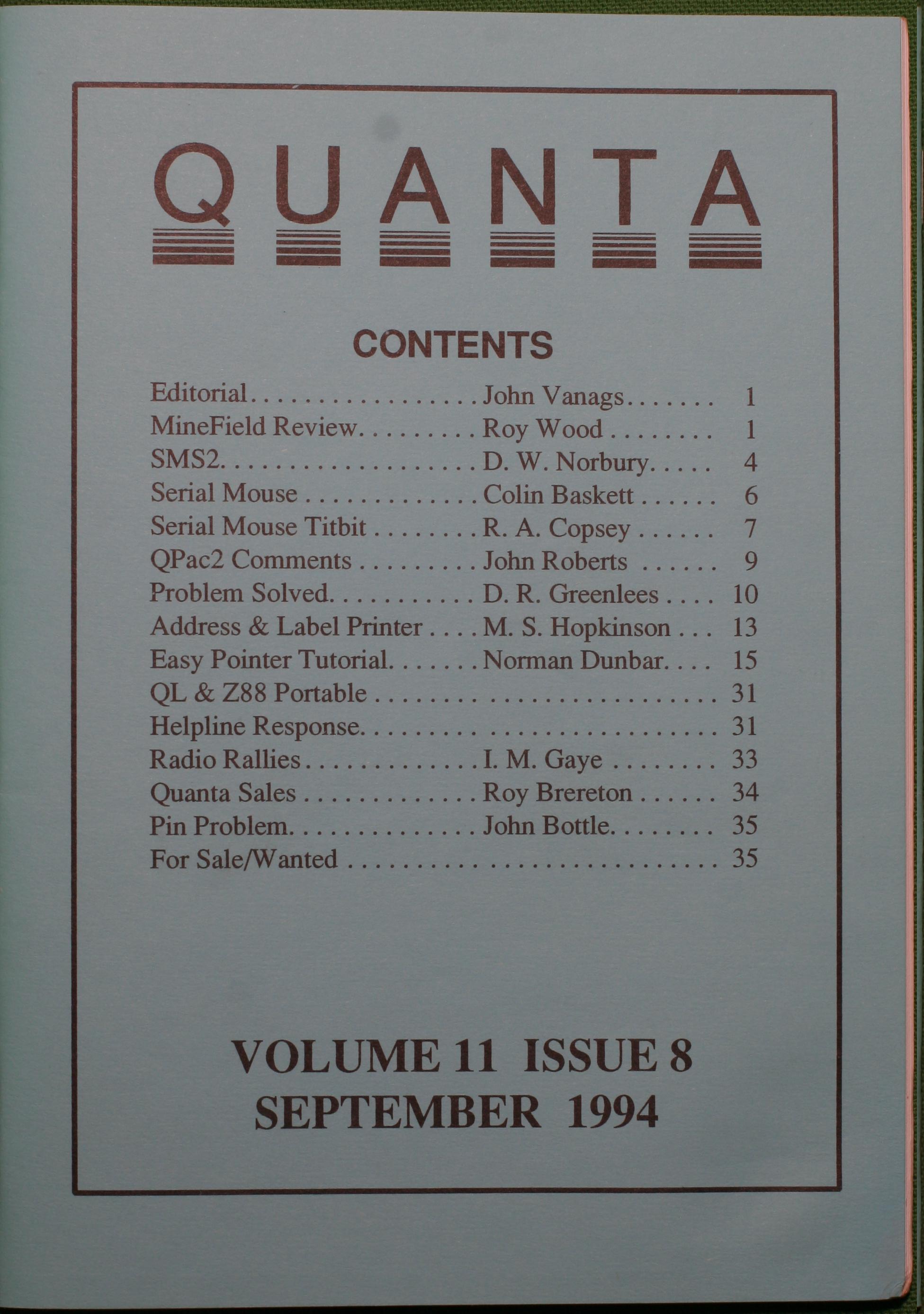 Quanta es el club de usuarios del ordenador Sinclair QL más importante del mundo. Se fundó más o menos al mismo tiempo que se comercializaba el ordenador. Tardé varios años en dicidirme en hacerme socio, pero cuando lo hice pedí todos los números atrasados de la revista. Dejé de ser socio cuando vi que mis pricipales intereses informáticos ya se habían desplazado hacia otros derroteros.