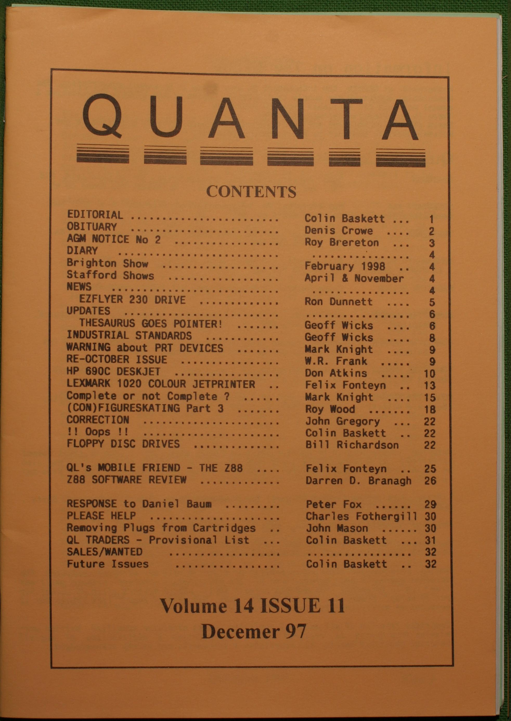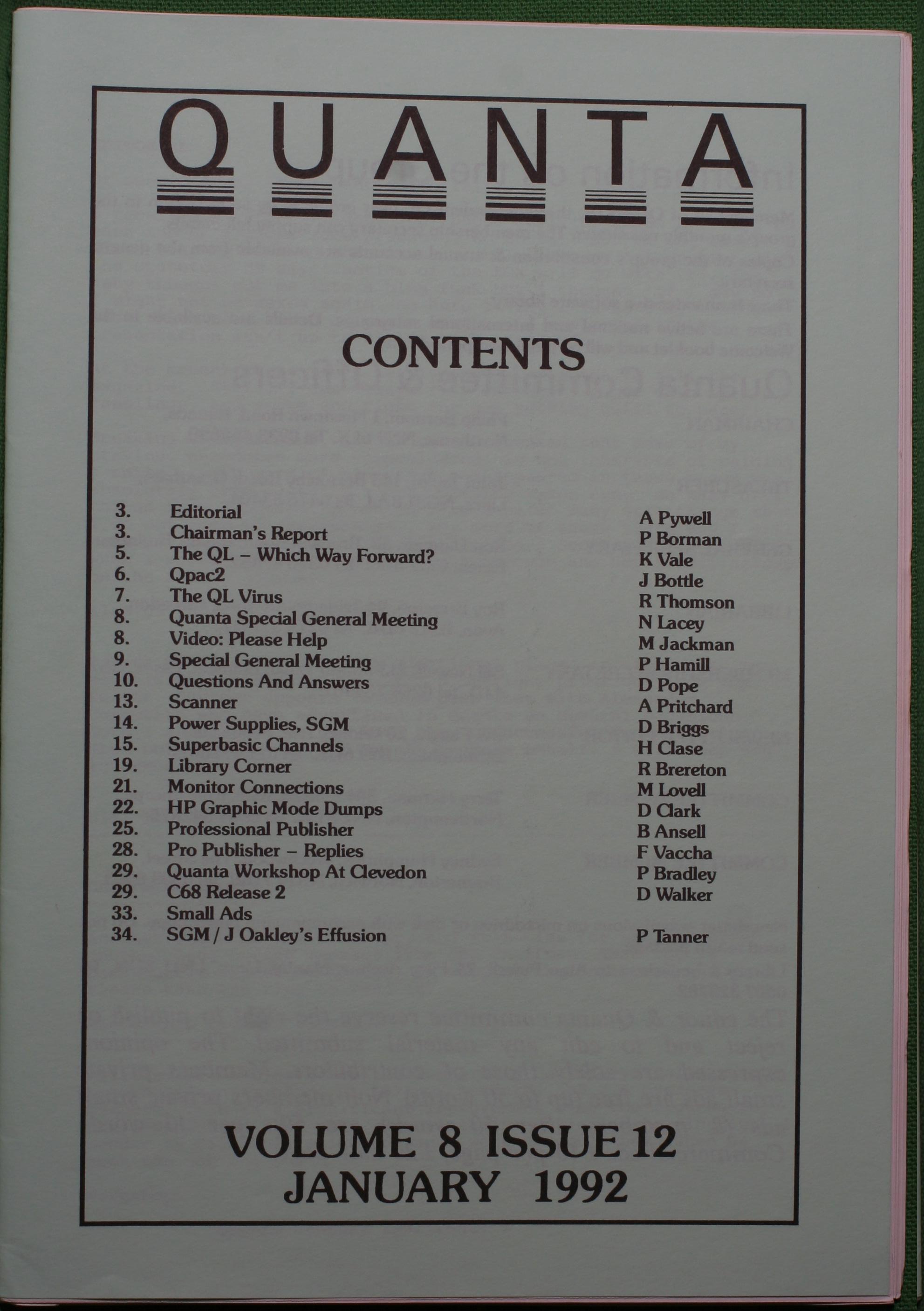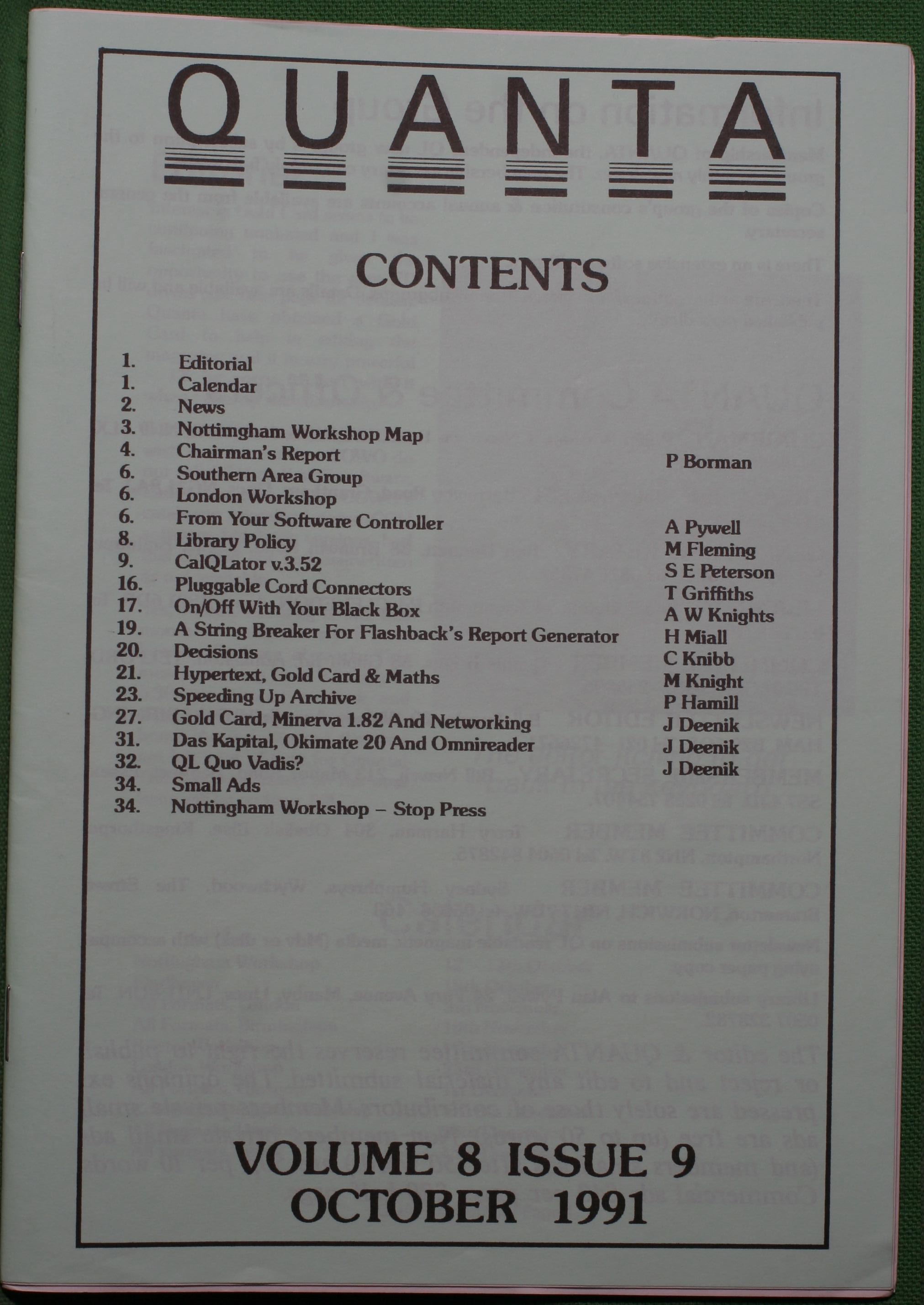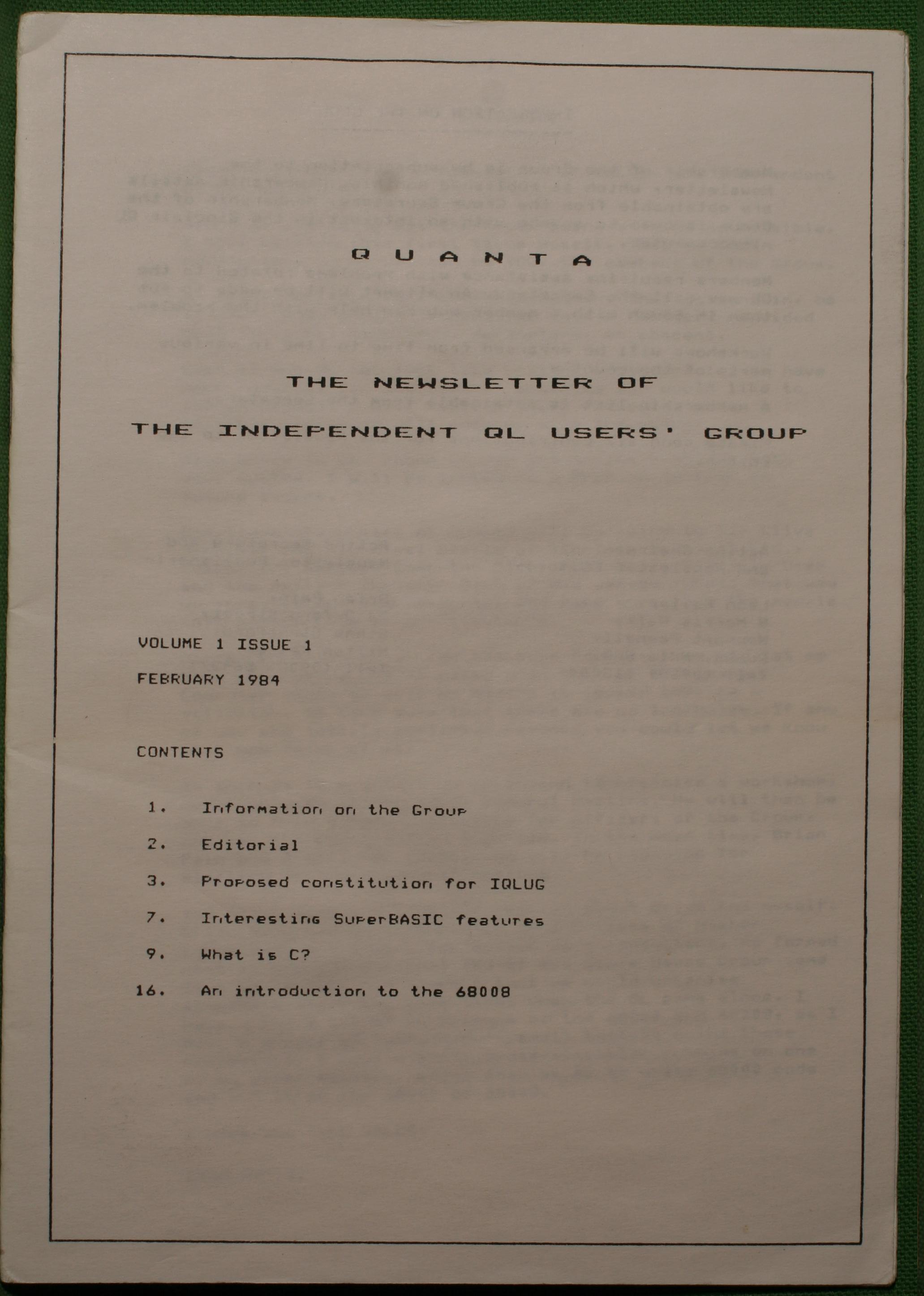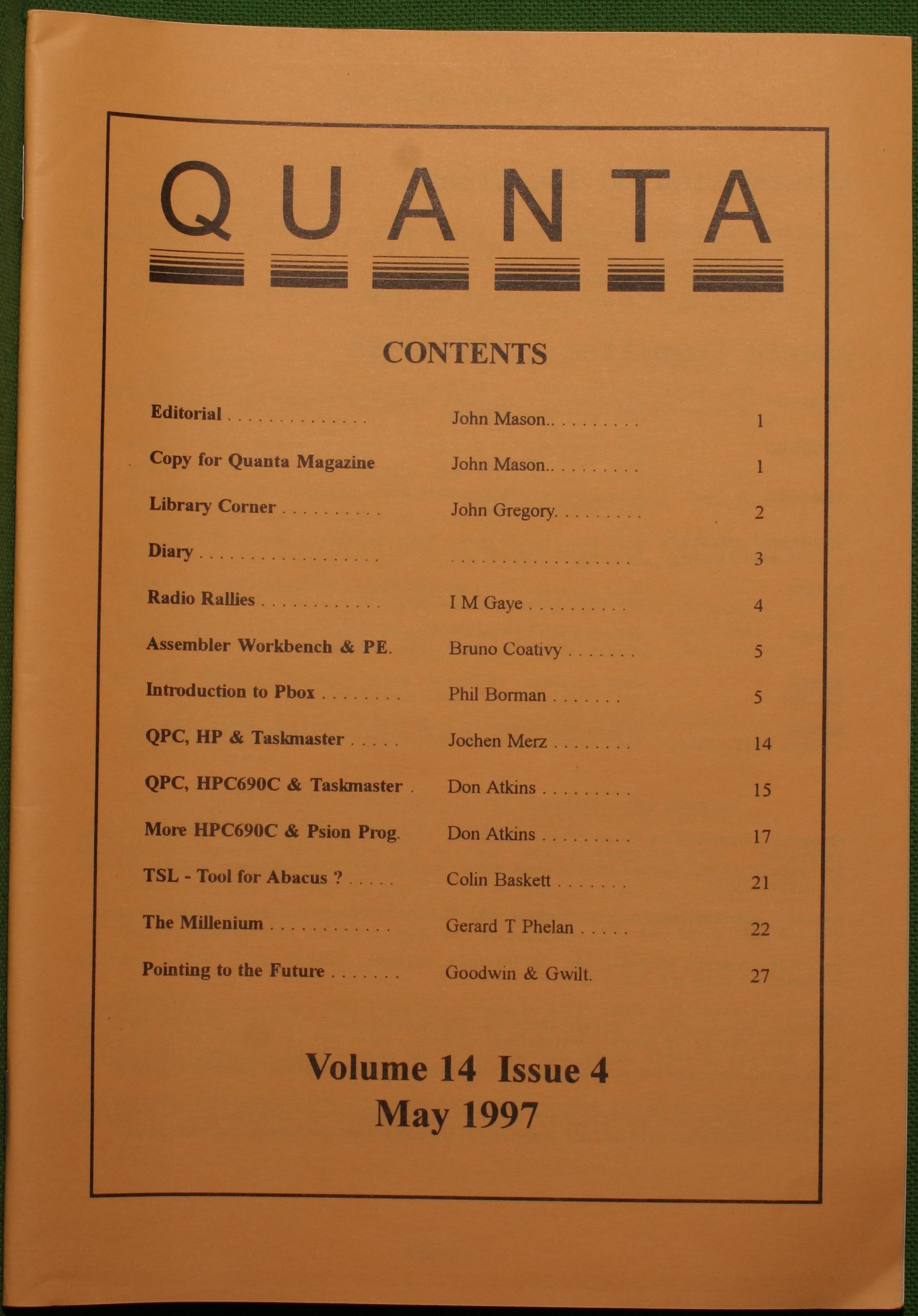 Quanta es el club de usuarios del ordenador Sinclair QL más importante del mundo. Se fundó más o menos al mismo tiempo que se comercializaba el ordenador. Tardé varios años en dicidirme en hacerme socio, pero cuando lo hice pedí todos los números atrasados de la revista. Dejé de ser socio cuando vi que mis pricipales intereses informáticos ya se habían desplazado hacia otros derroteros.