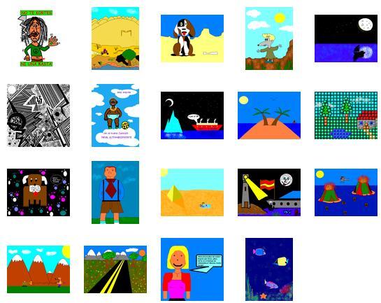 Si te sitúas sobre una miniatura, verás el nombre del autor (dependiendo del navegador que uses), y si pulsas sobre ella, verás la imagen en su tamaño real; luego, pulsa el botón "Anterior" del navegador.